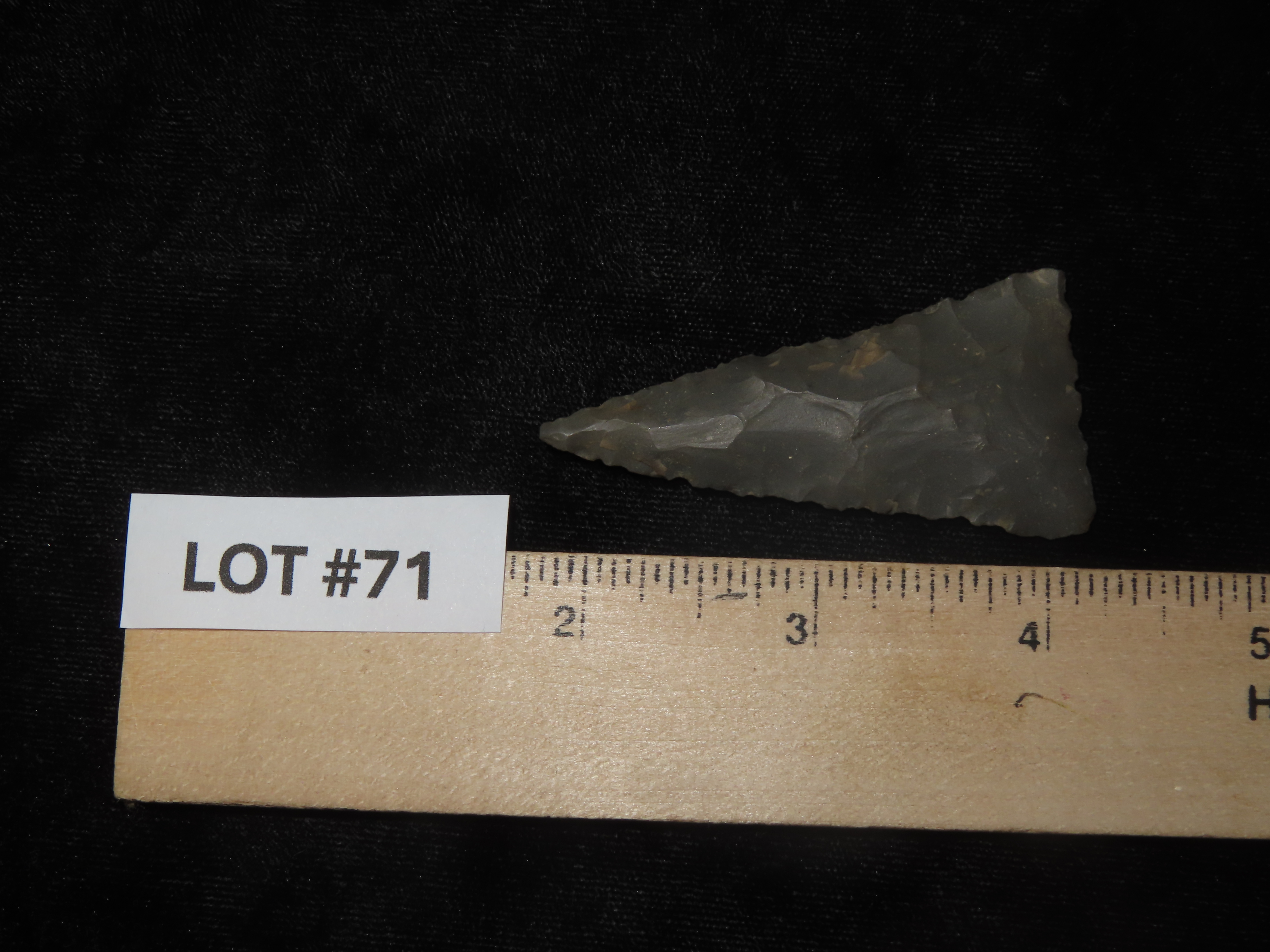 Incredible 2 7/16" Triangle, Hardin Co. Kentucky. Very Nice & Very Large Example, Well Flaked with Great patina. Mississippian, Madison, Fort Ancient, War Point