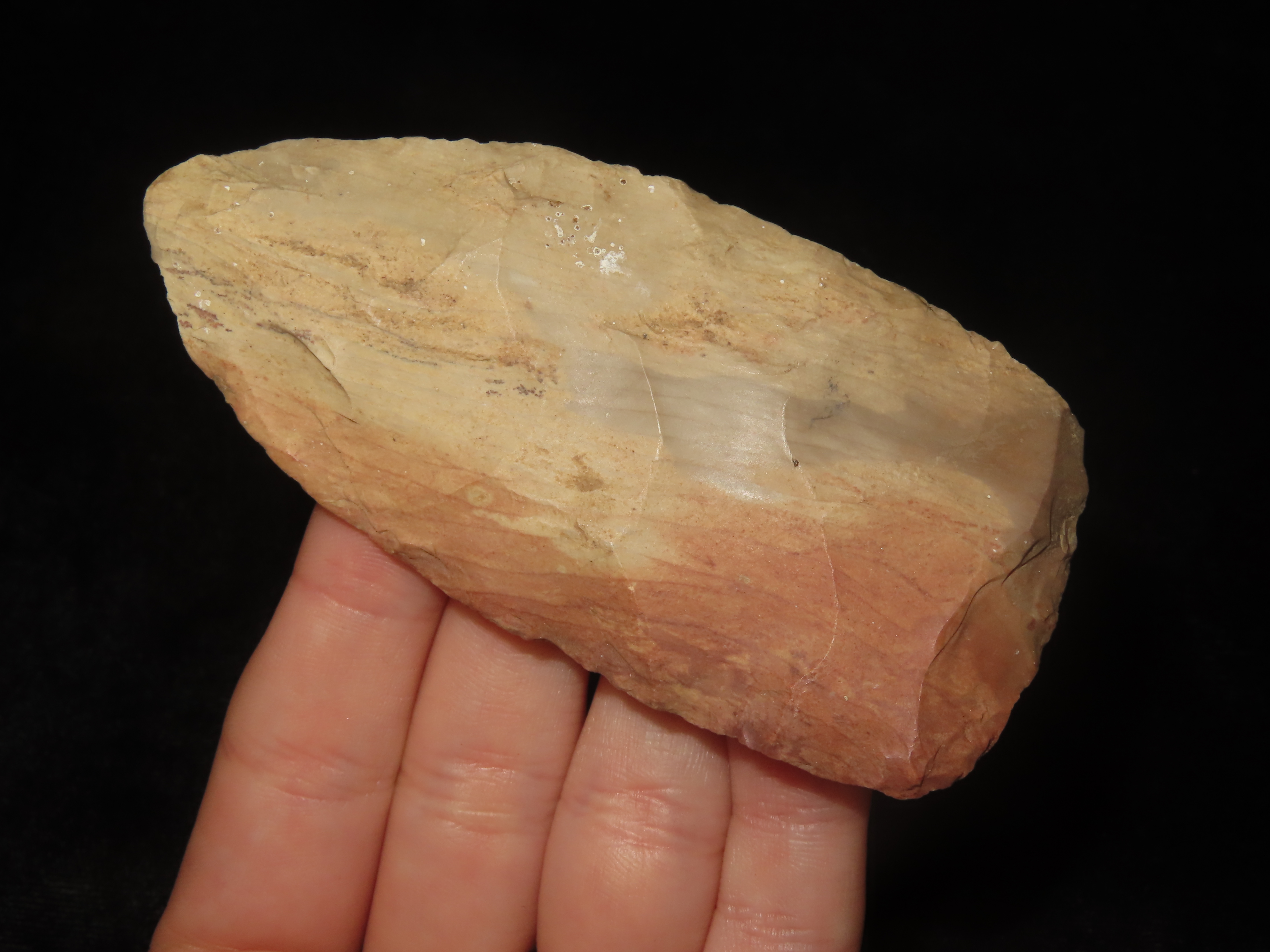 Colorful 3 1/2″ Early Stanfield Knife, Dunklin Co. Missouri. Amazing Color, Nice Early Flaking. Indian Arrowhead, Artifact, Blade, Spear.