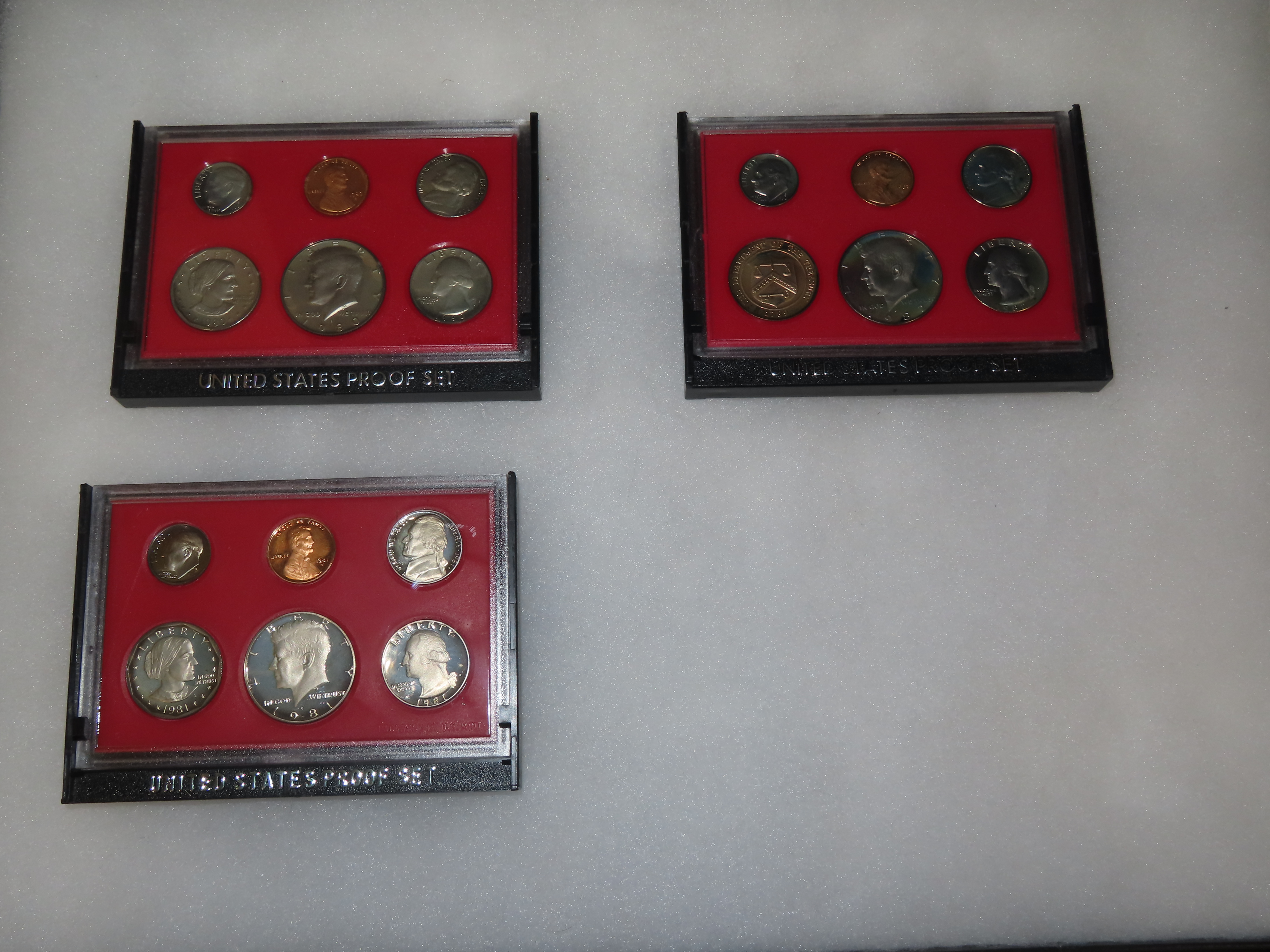Lot of 3 U.S. Proof Sets, 1980, 1981, 1982. 15 Total Coins all in original Sealed Housings by the United States Mint, With Original Boxes too.