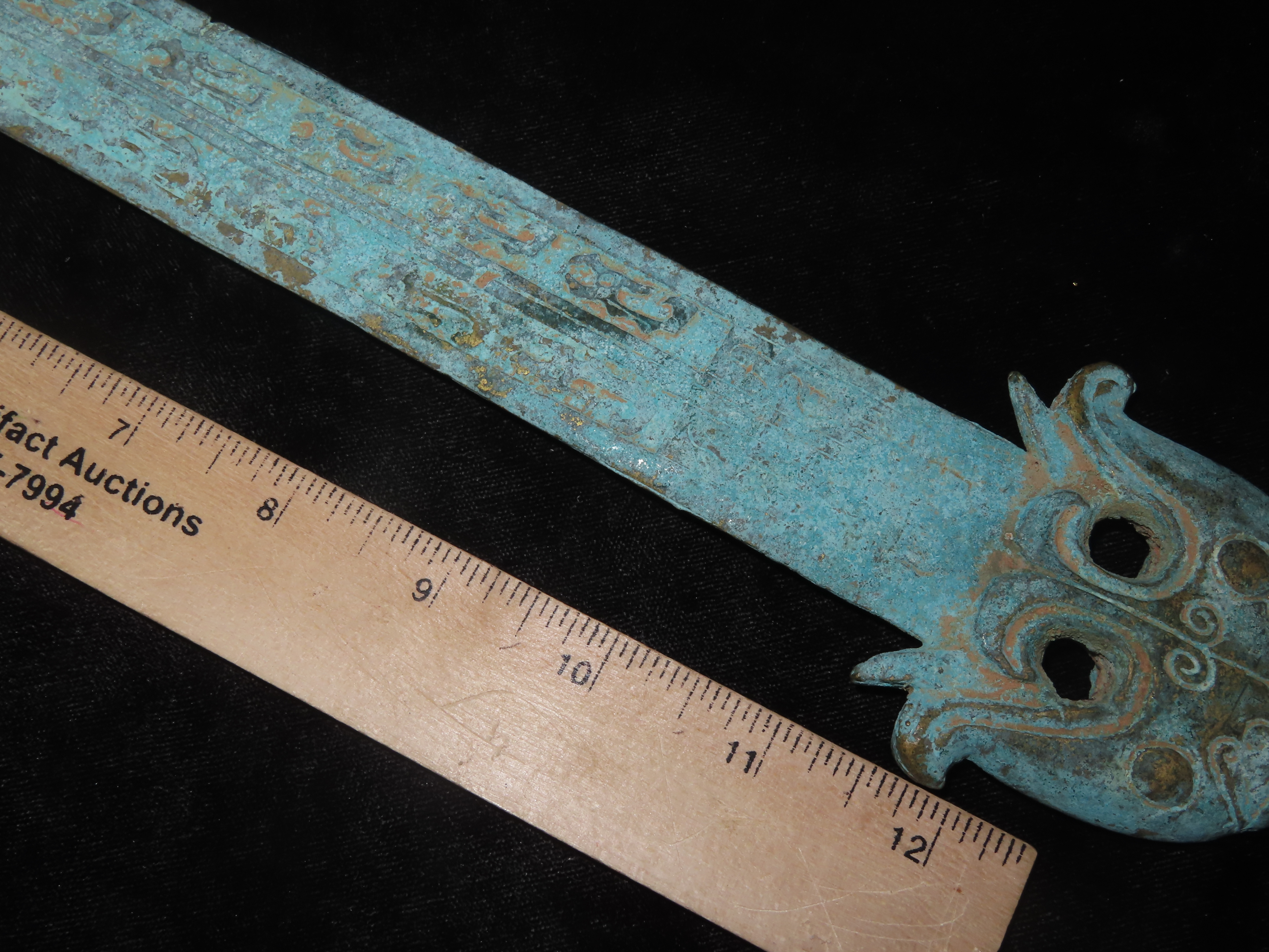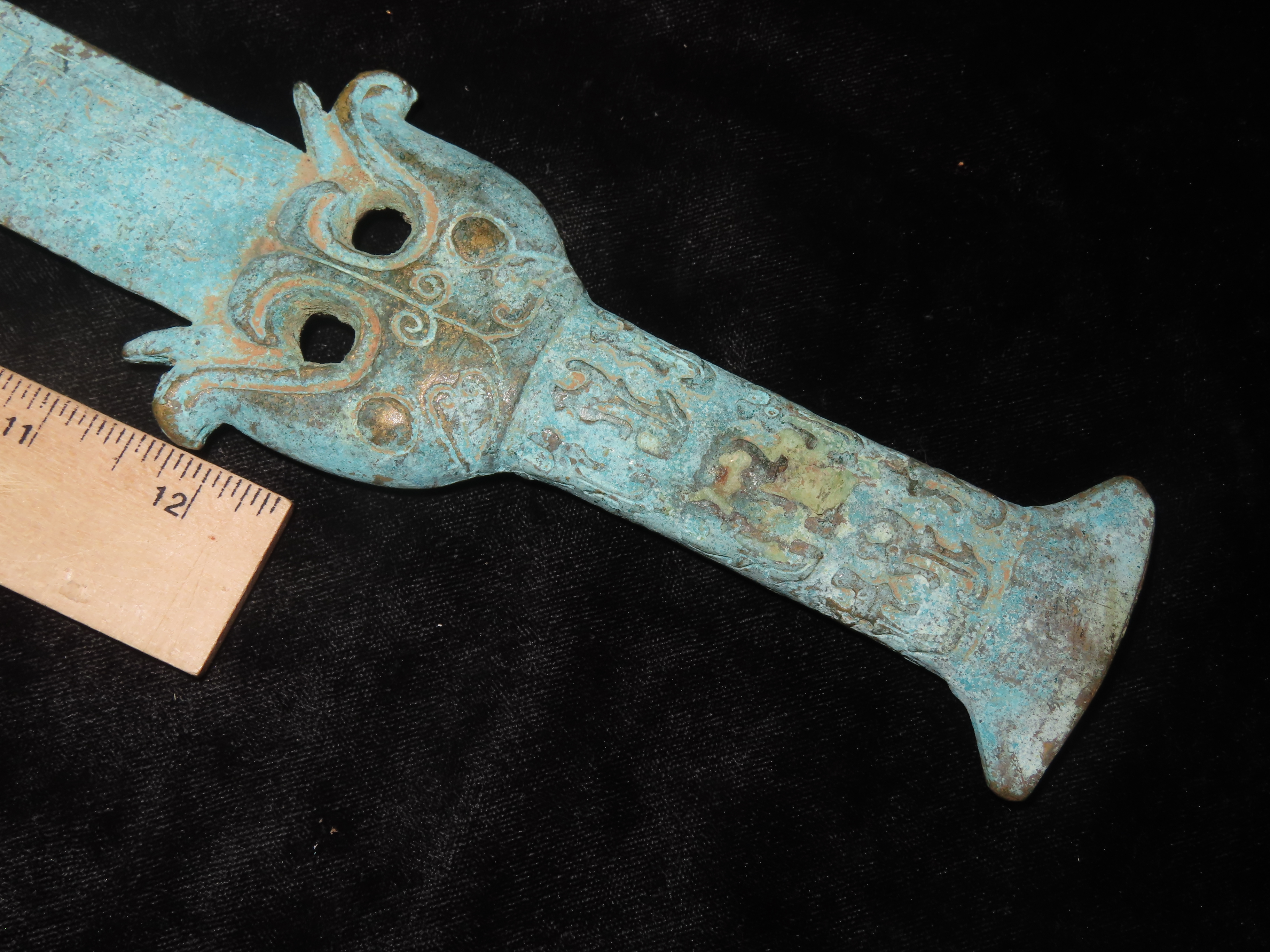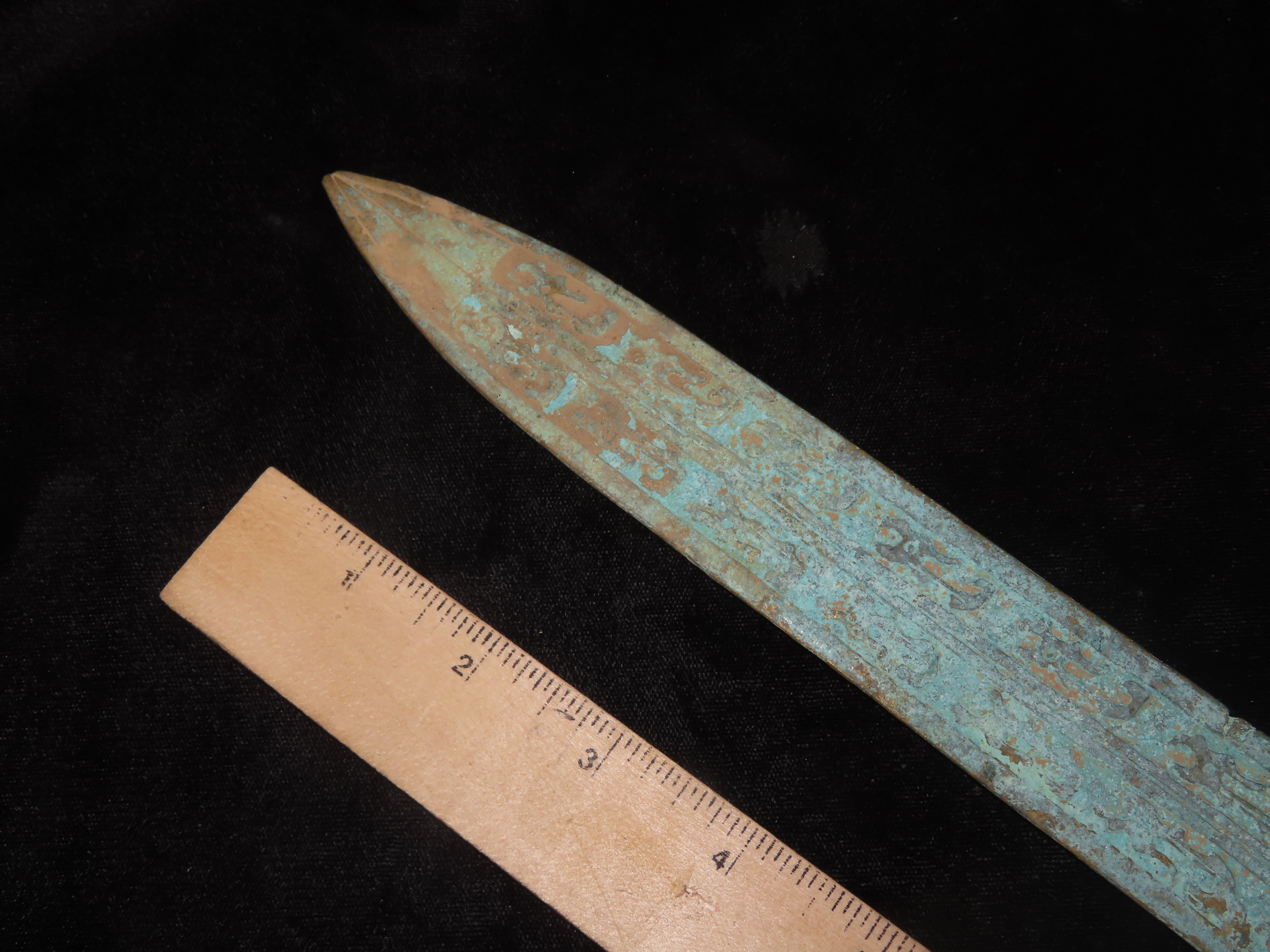 18 1/2" Bronze Dagger / Sword from China, Nice Antique Example with Detailed Engravings
