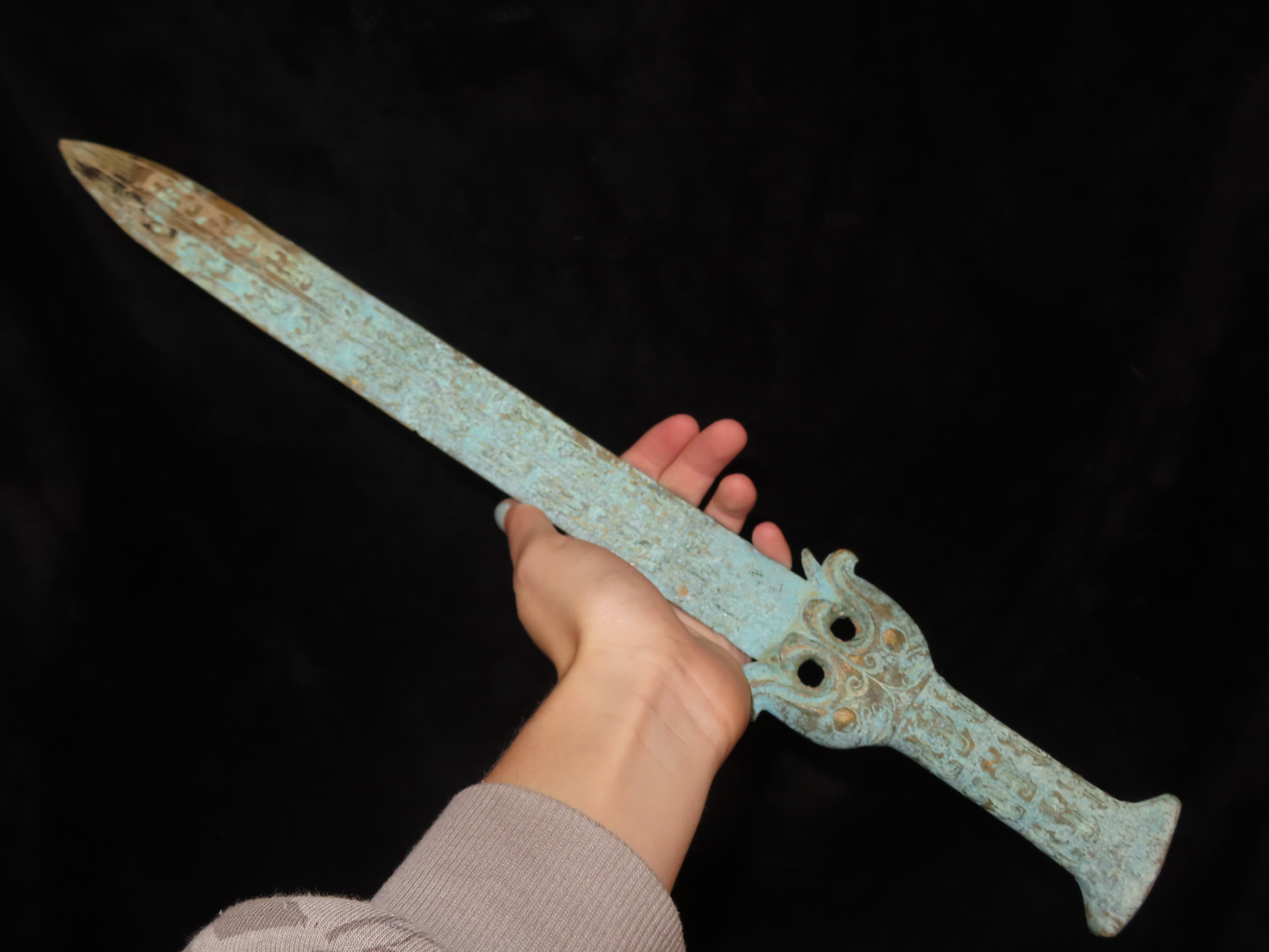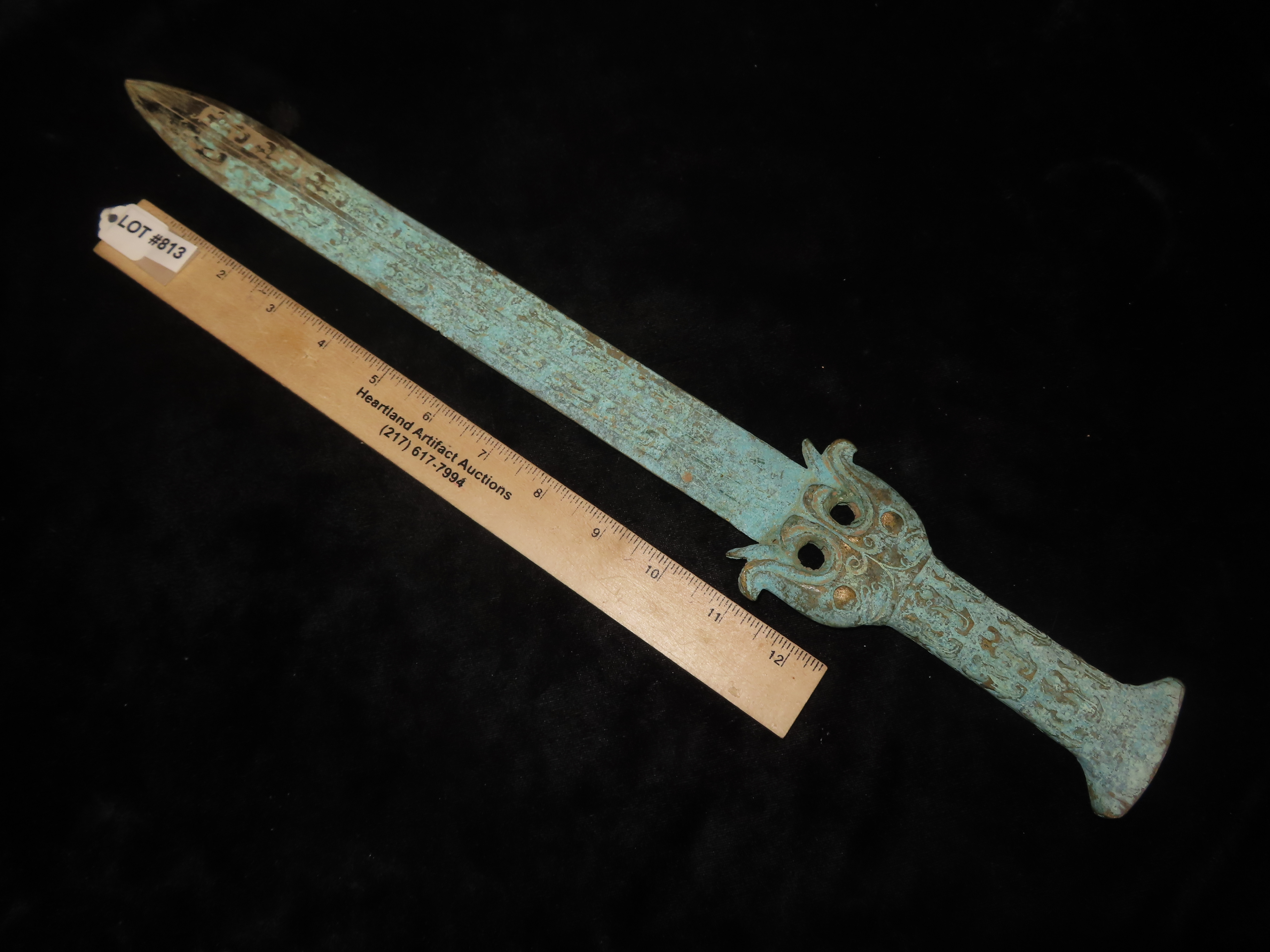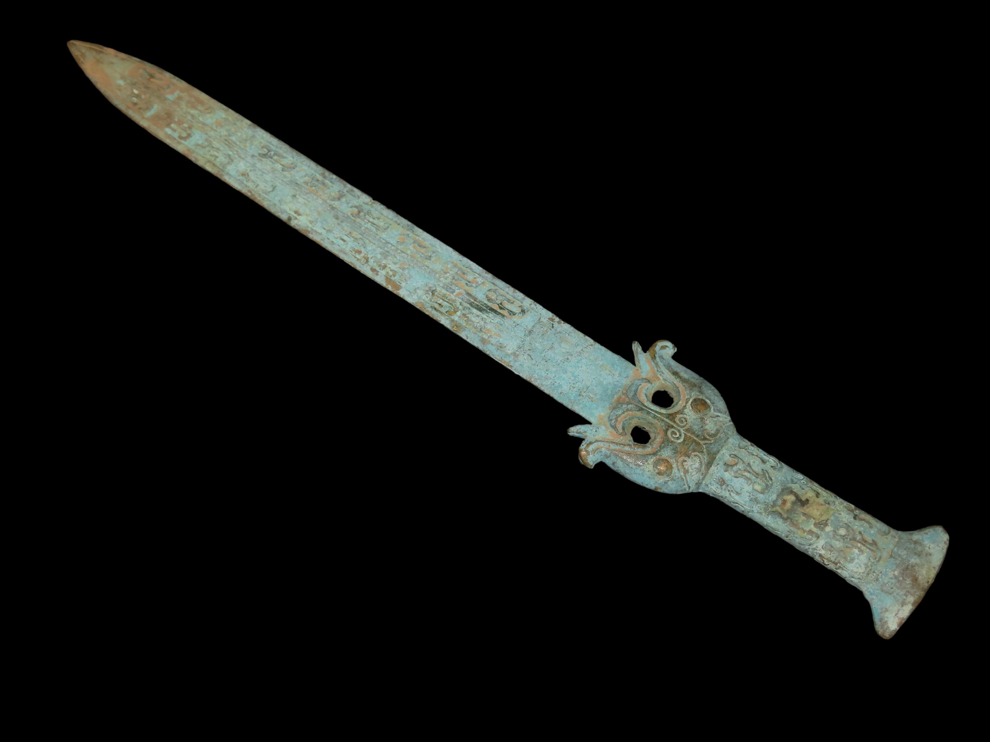 18 1/2" Bronze Dagger / Sword from China, Nice Antique Example with Detailed Engravings