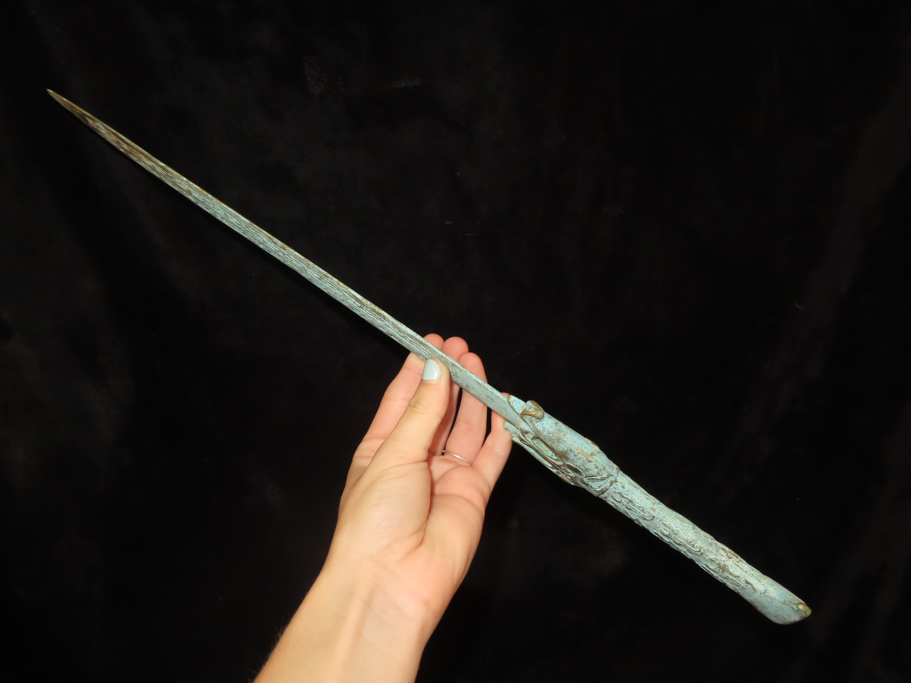 18 1/2″ Bronze Dagger / Sword from China, Nice Antique Example with Detailed Engravings