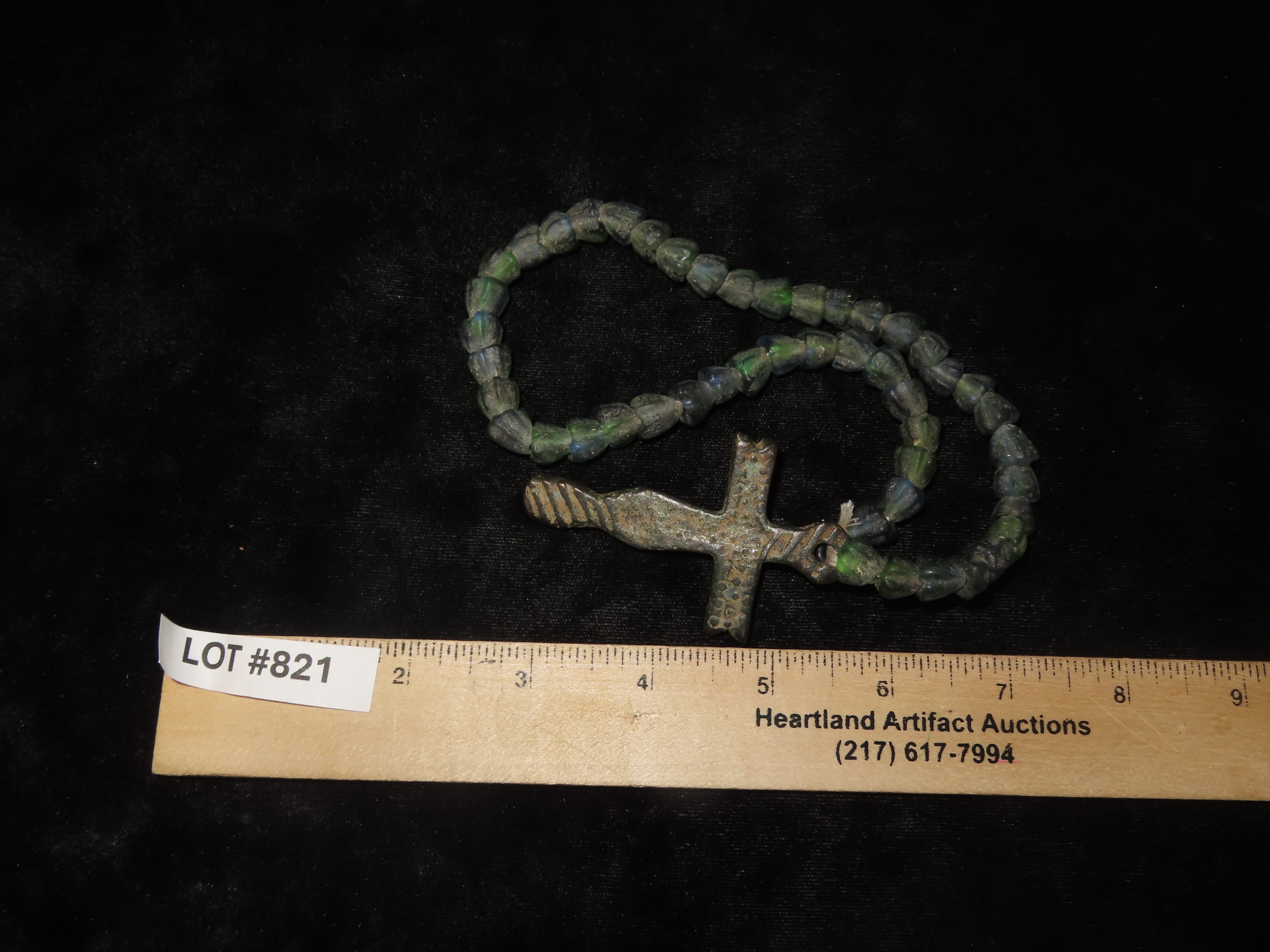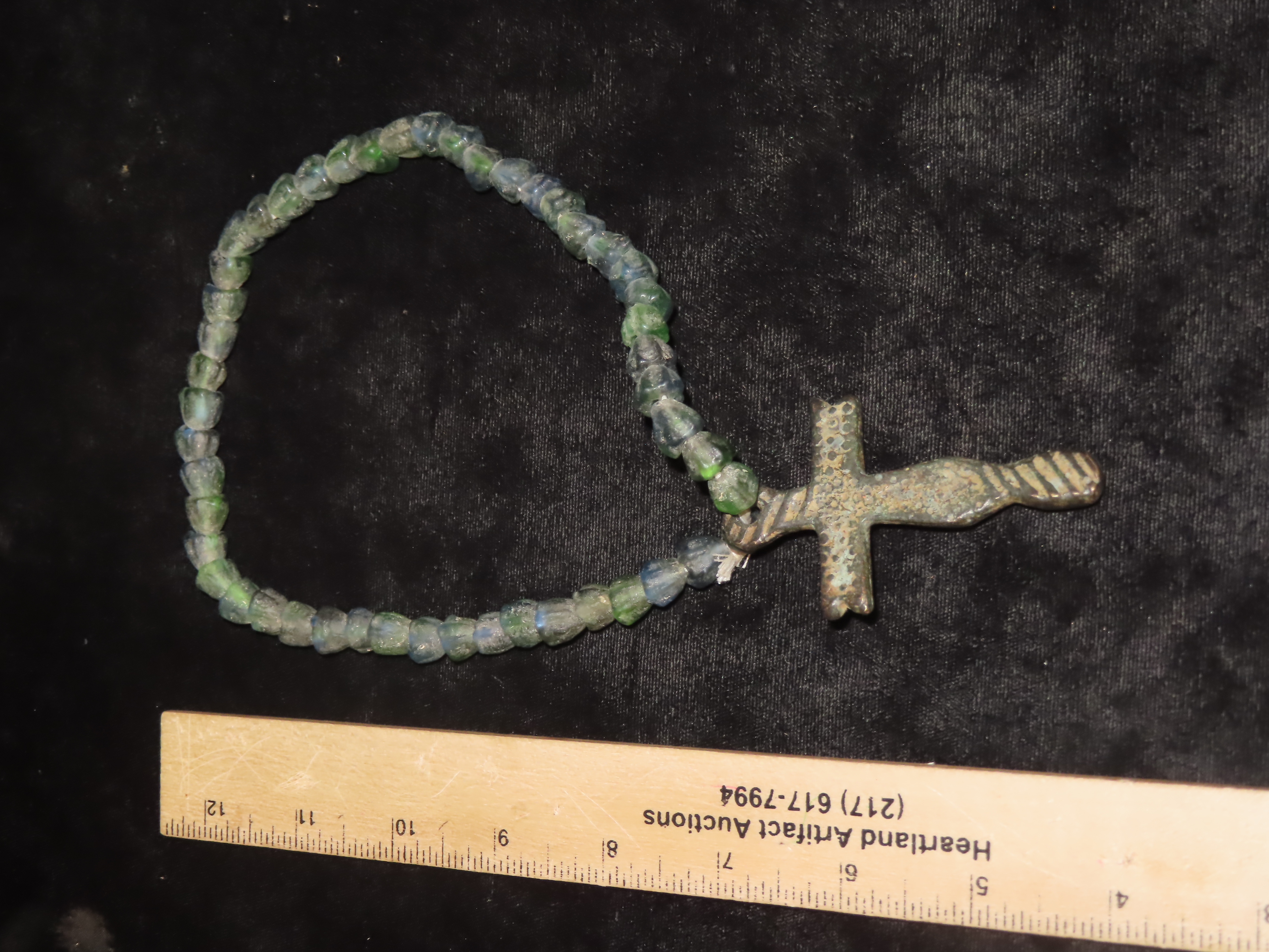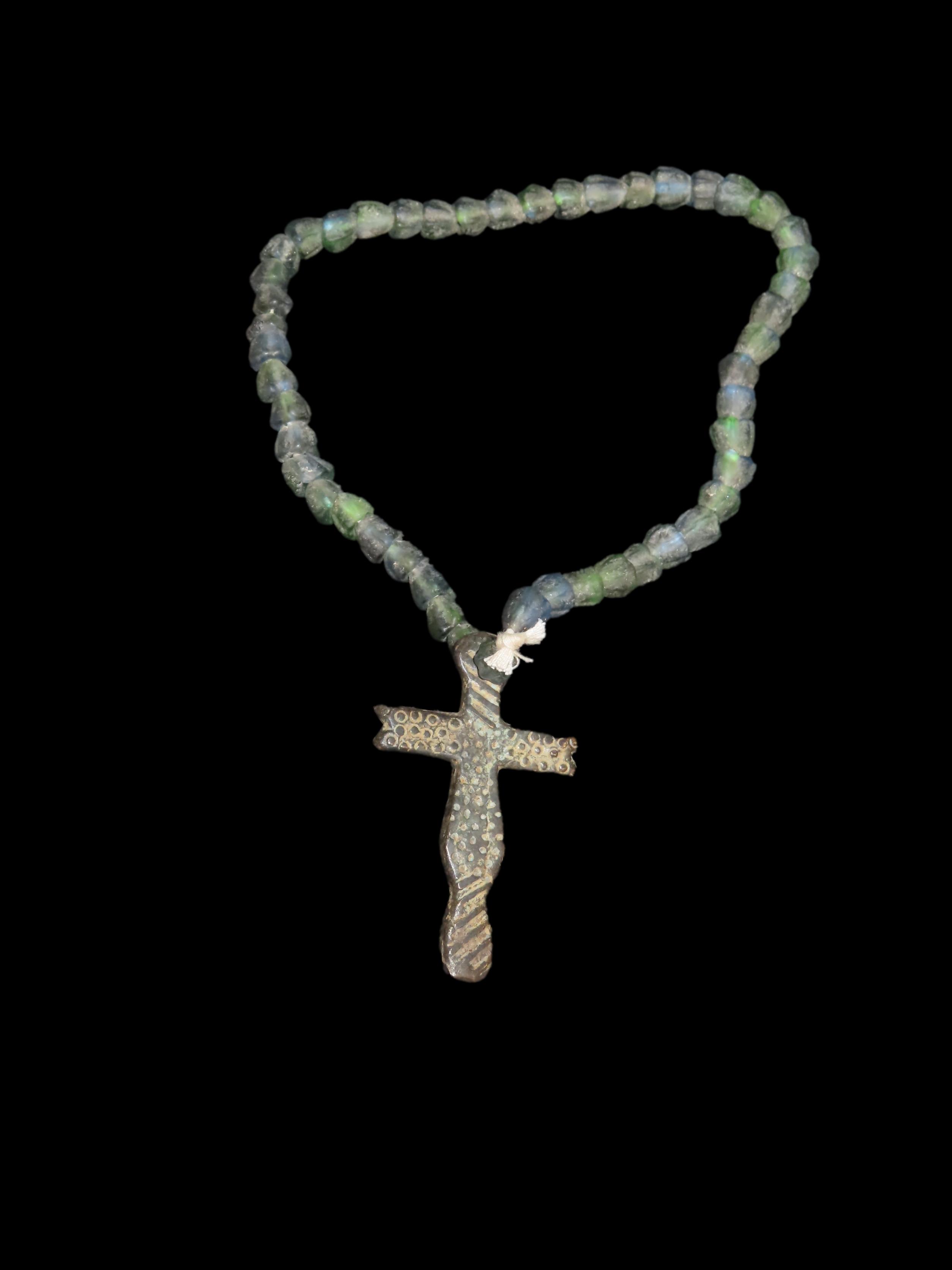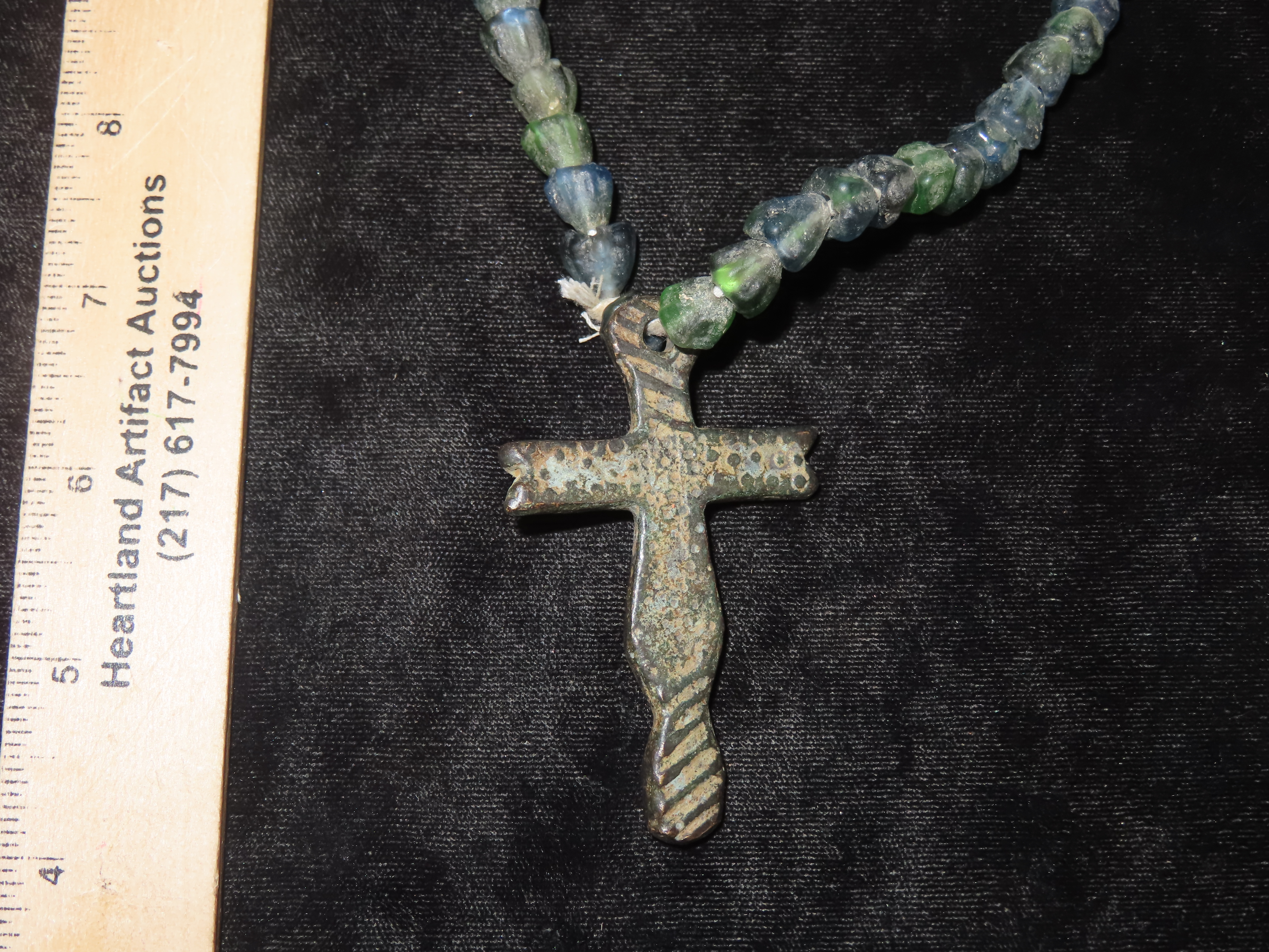 Roman Bronze Cross & Glass Bead Necklace, Great Old Example with Nice Patina
