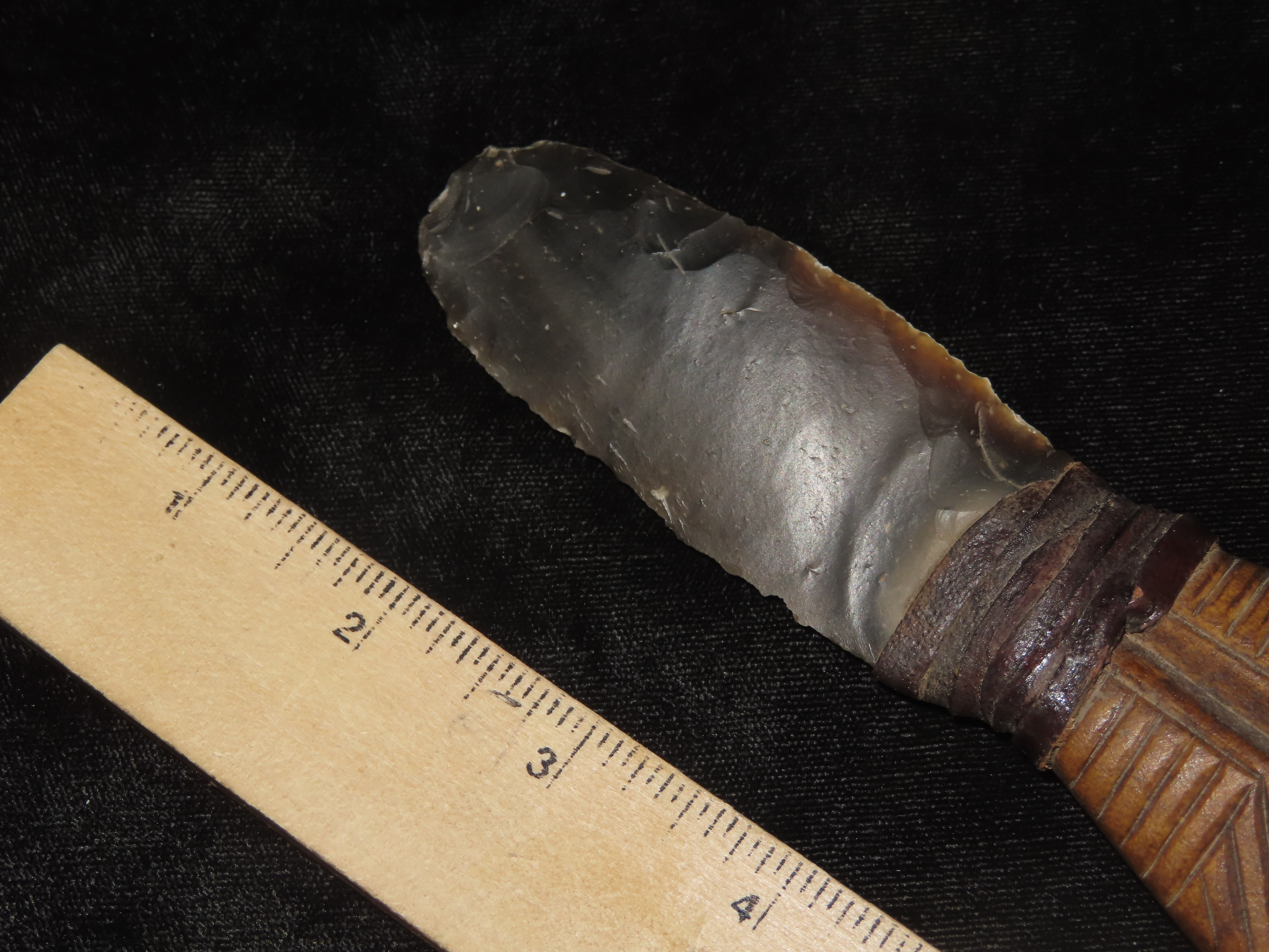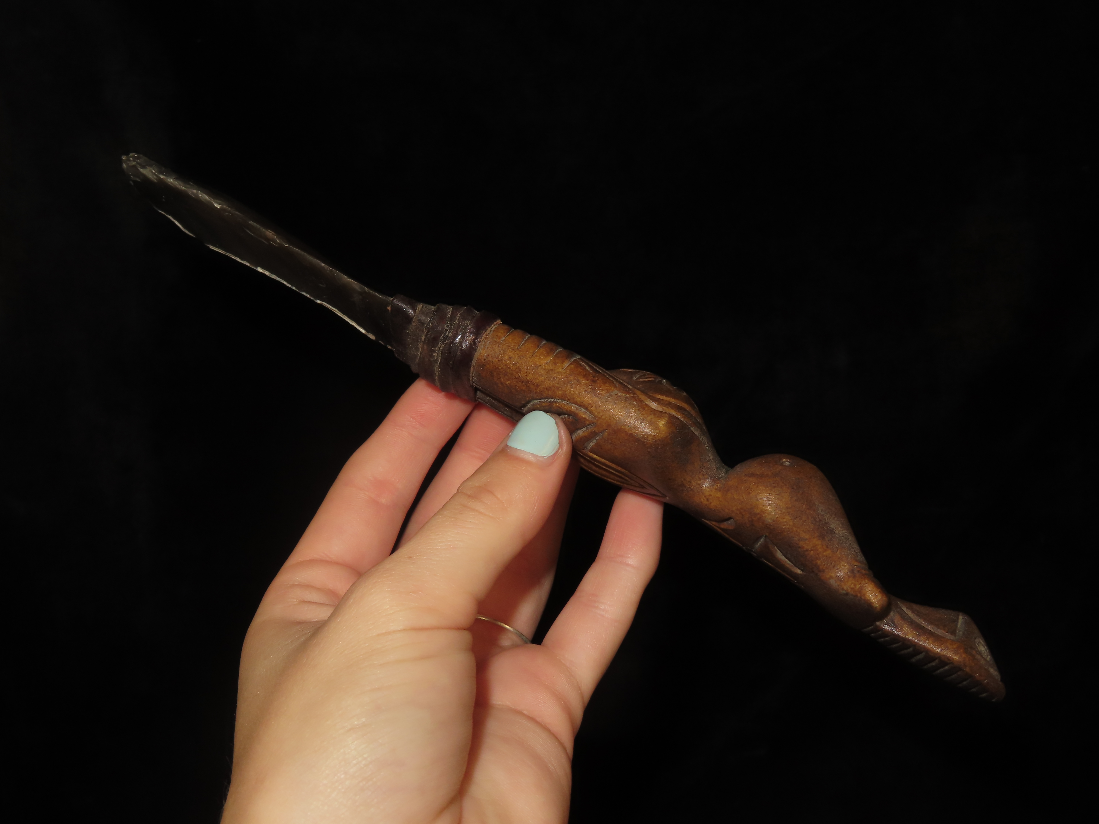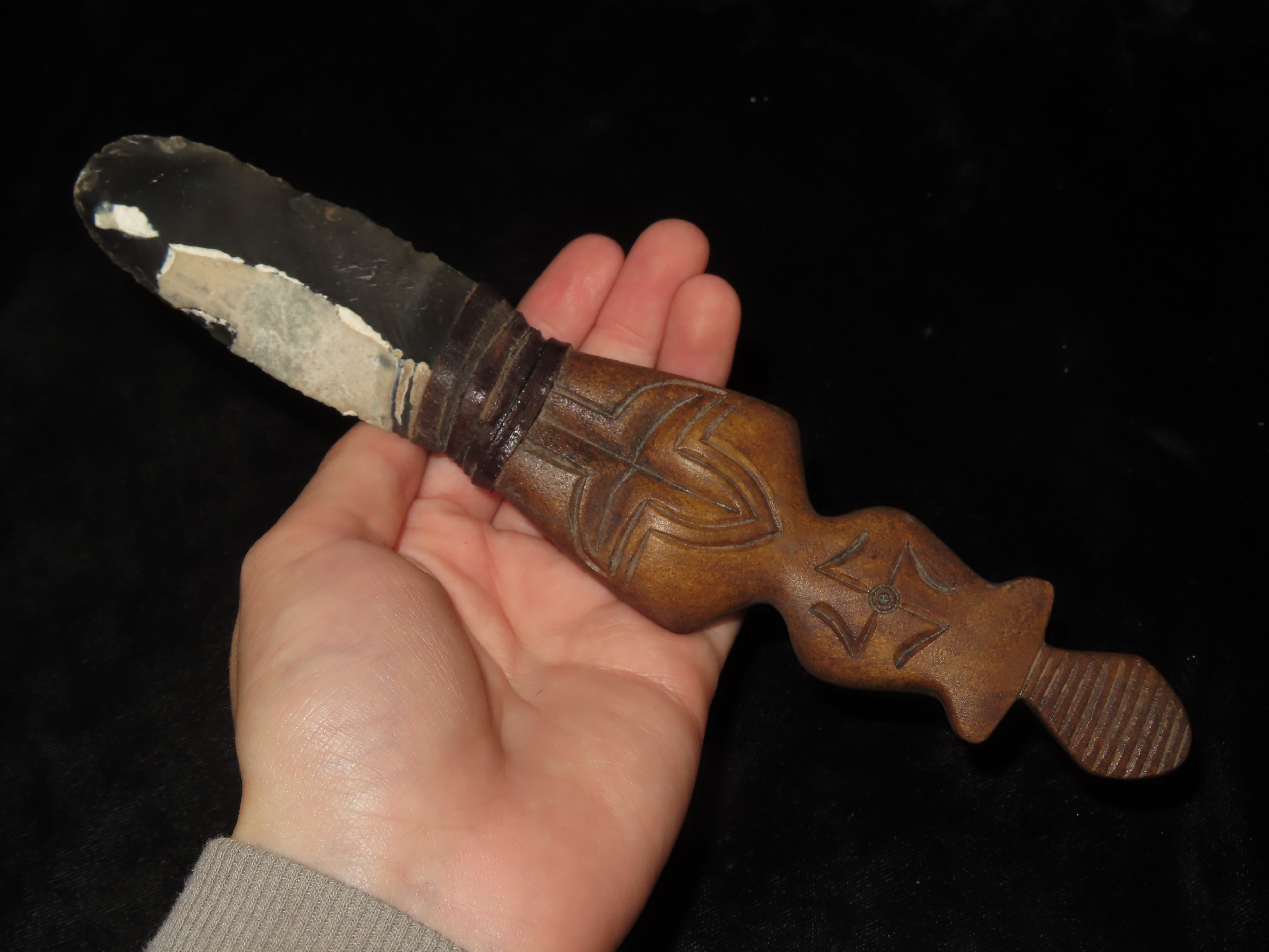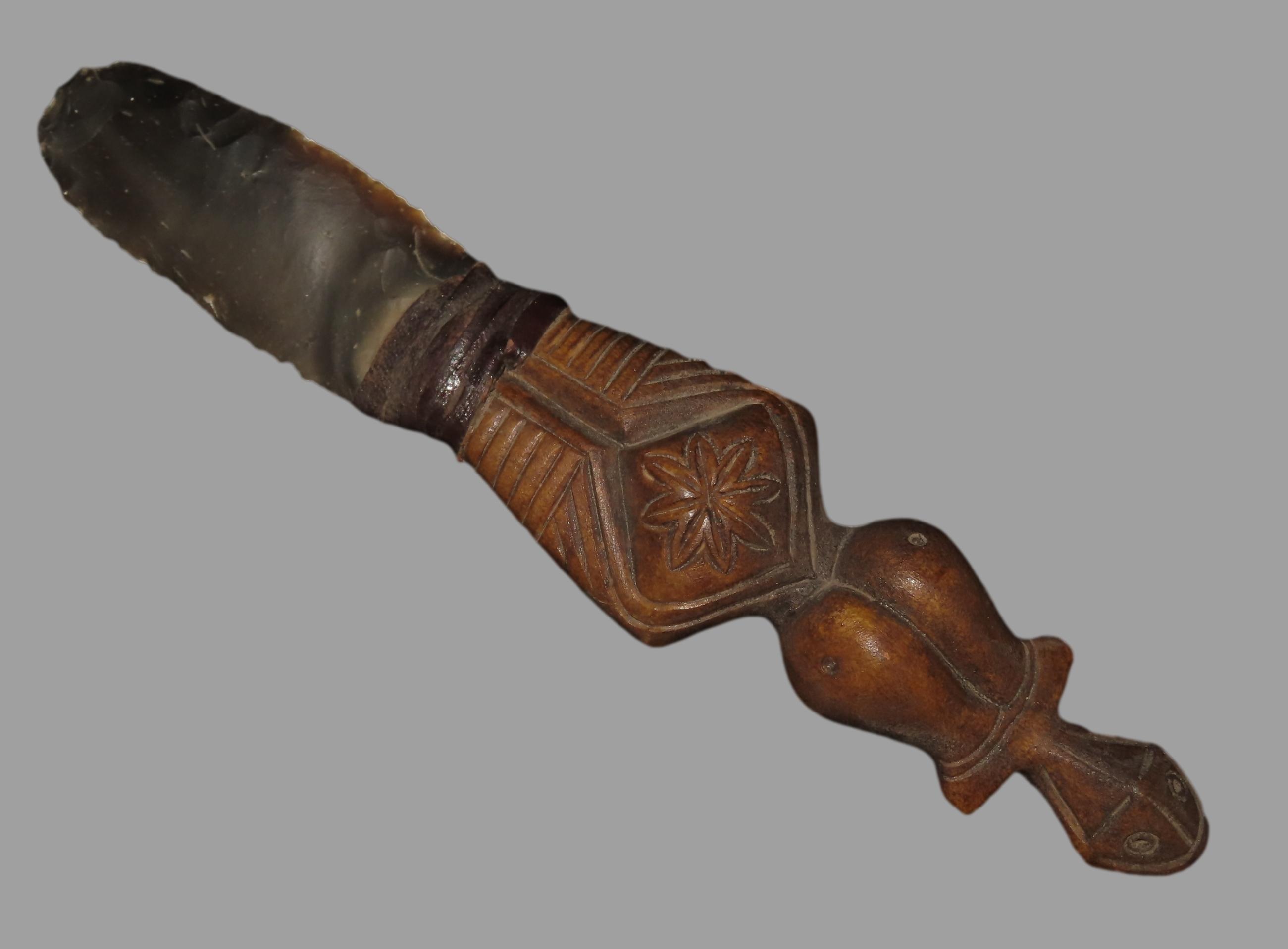 Rare Egyptian Knife, Old Flint Blade & Human Effigy Carved Bone Handle. Very Nice Example