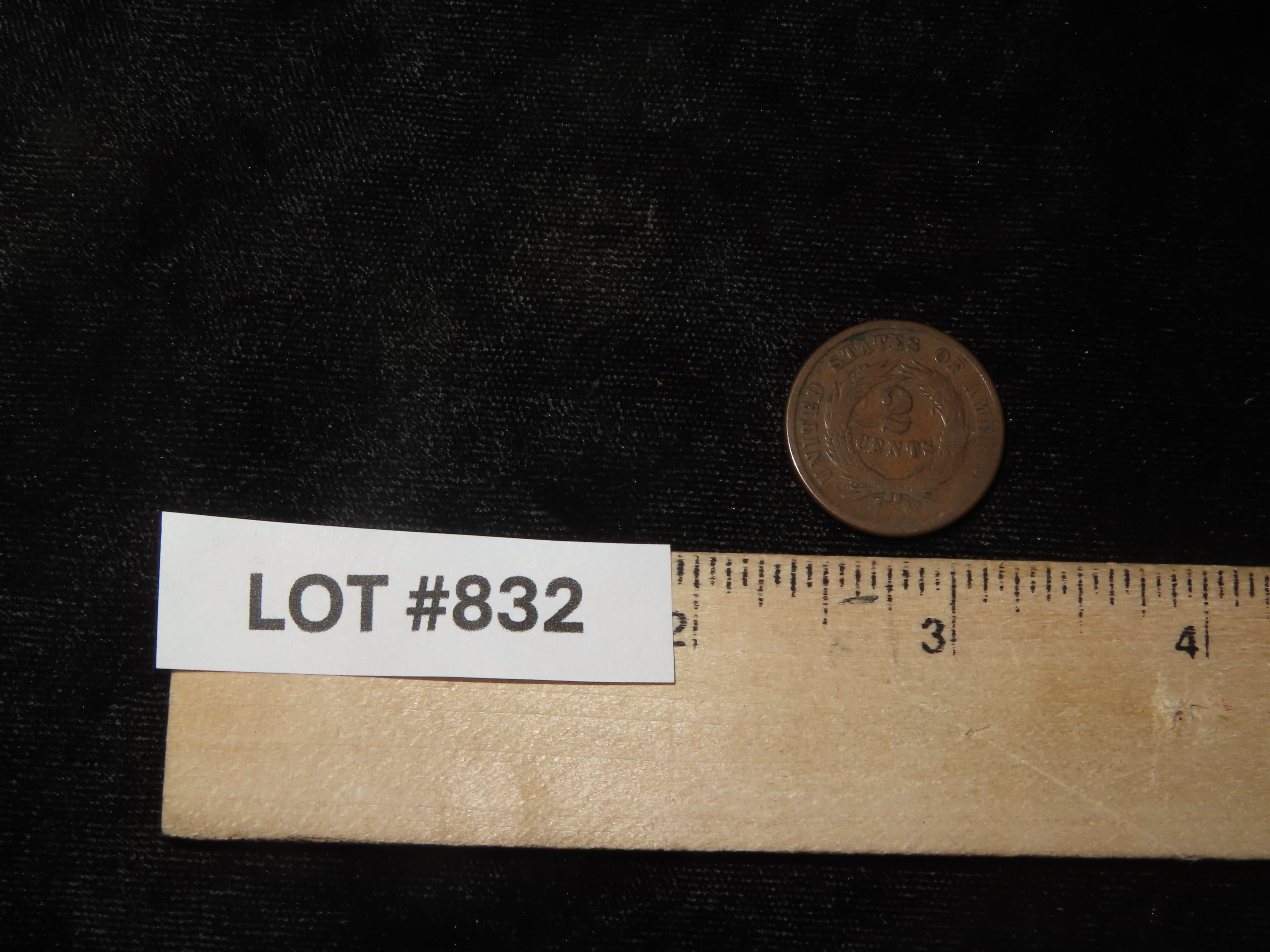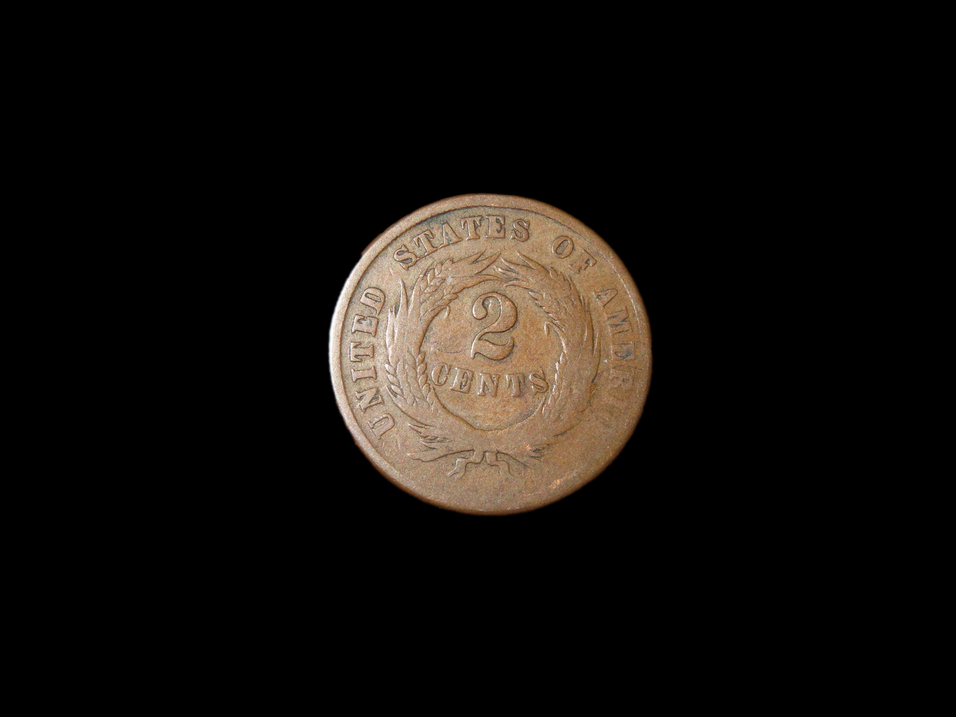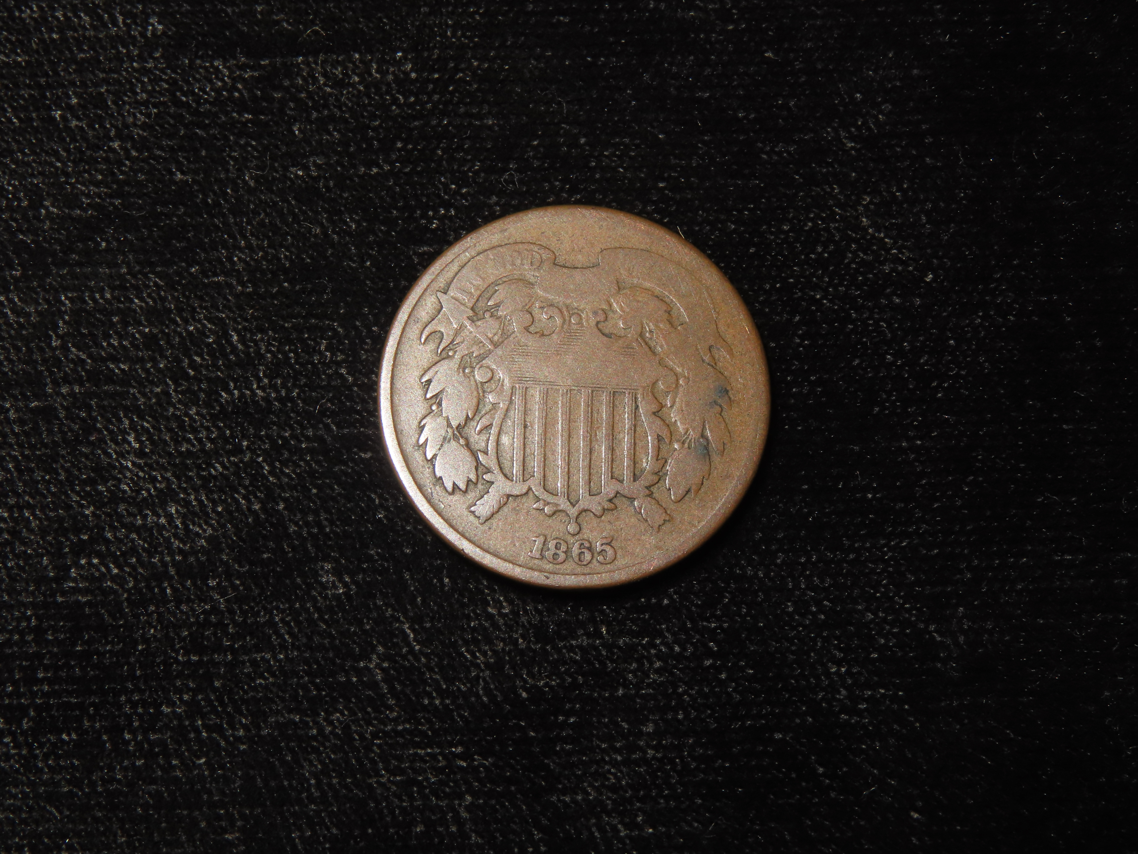 1865 Civil War era Two Cent Coin, Great Condition, 2 Cents Obsolete U.S. Coins, United States Currency