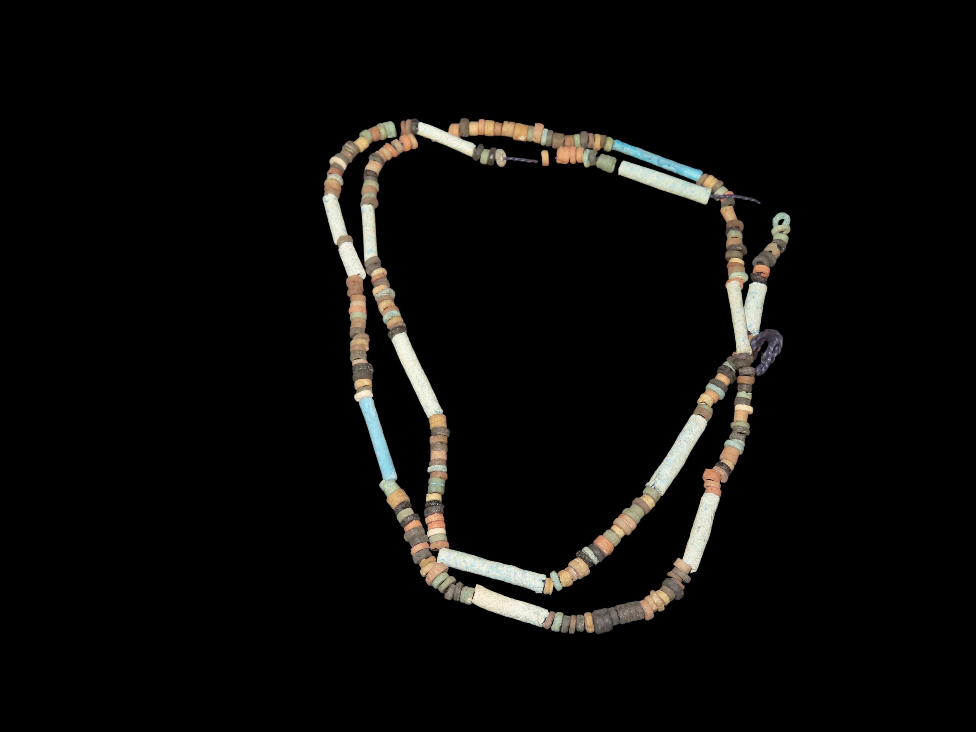 30″ Long Egyptian Mummy Beads, Stone & Faience Bead Necklace, Egypt