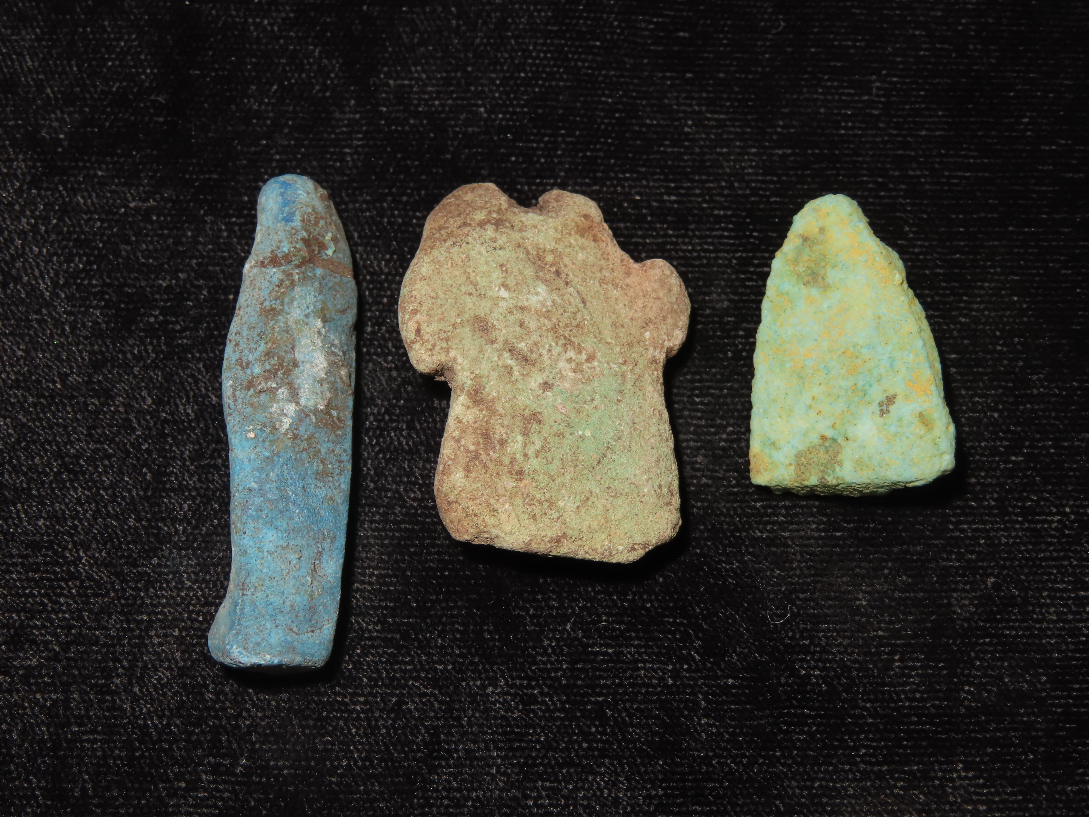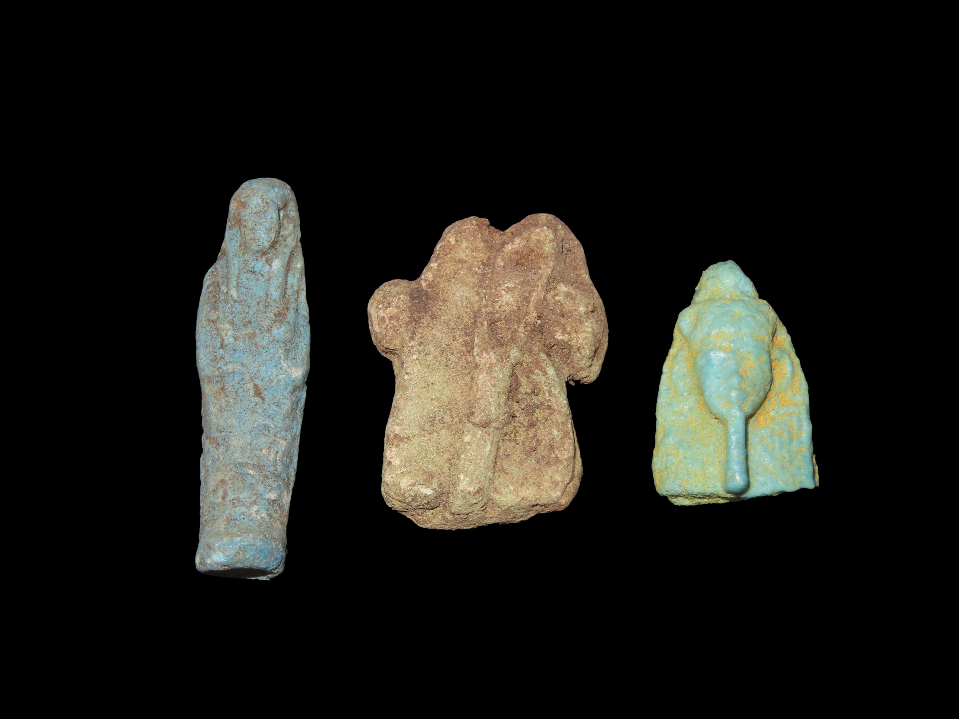 Lot of 3 Egyptian Amulets / Ushabti, 1085-730 BC, Faience, Nice Examples with Great Patina