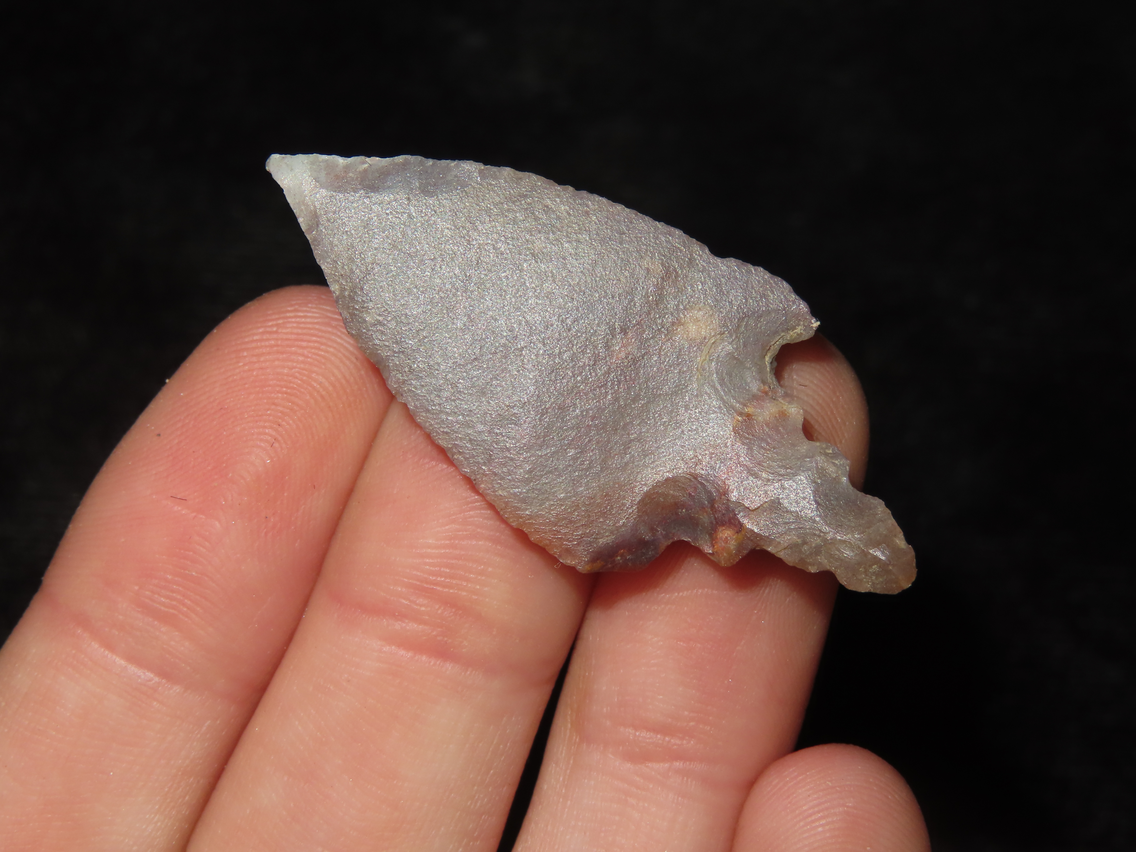 Amazing African Neolithic Stemmed Eccentric Arrowhead, Great Flaking, Super Color, and Heavy Patina, Nice Uniface example