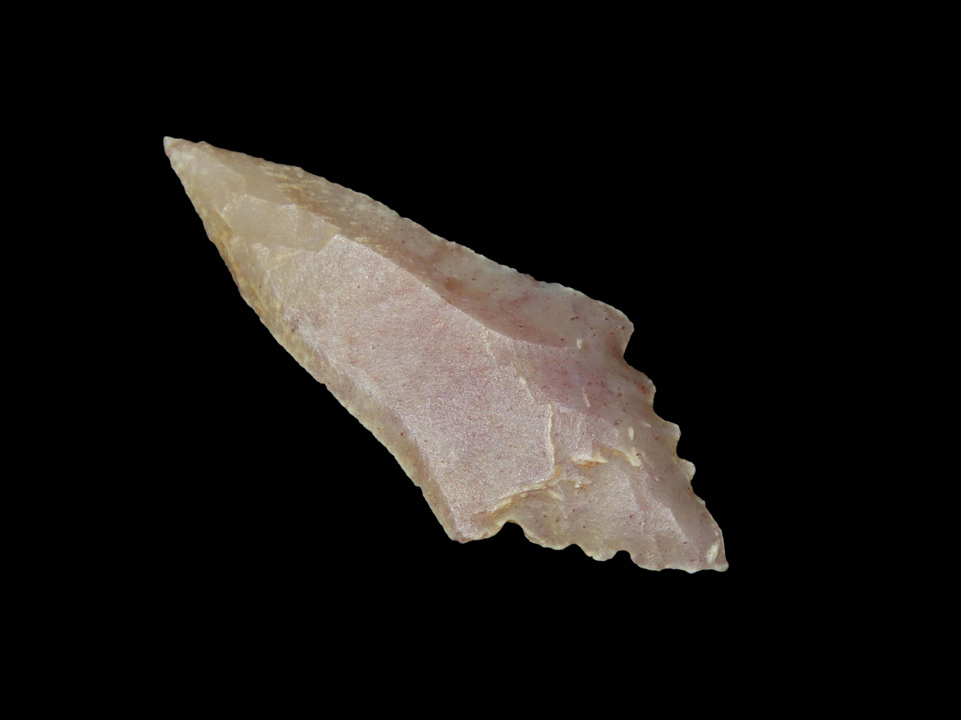 Incredible HIGH GRADE African Neolithic Stemmed Eccentric Arrowhead, Needle Tip, Great Flaking, and Heavy Patina, Nice Uniface example