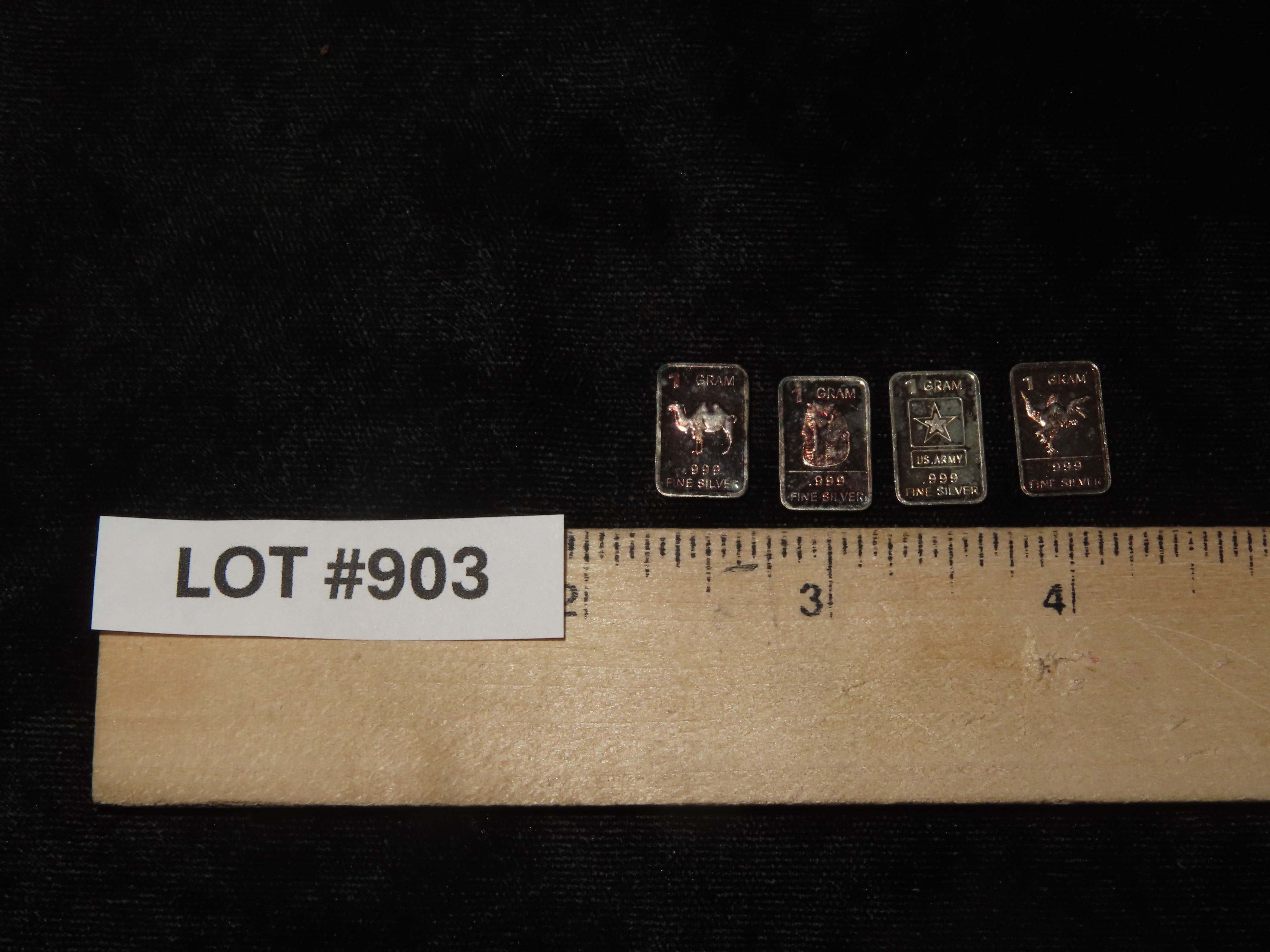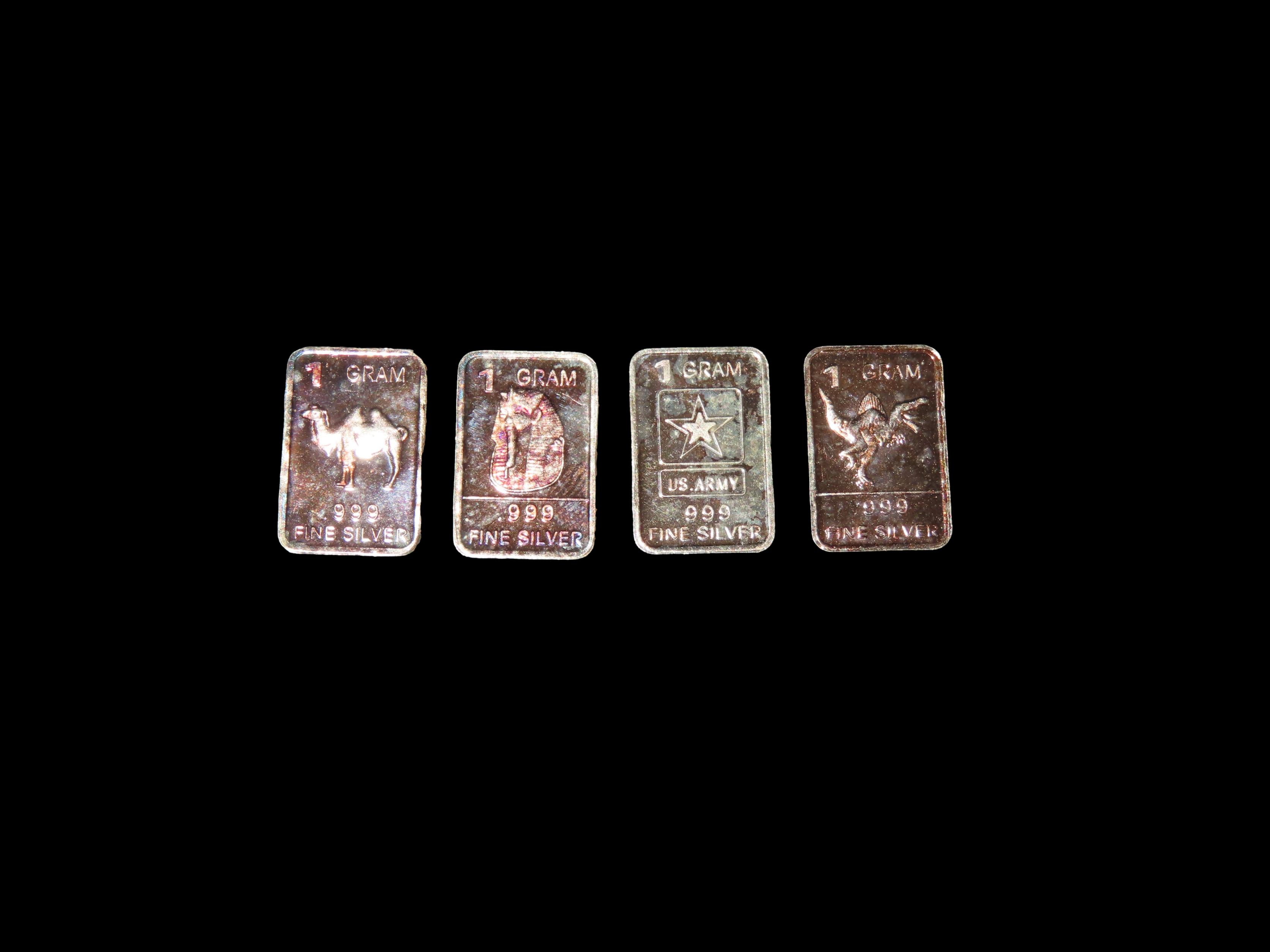 Lot of 4 Mini Solid Silver Bars, 1 Gram Each, Silver Bullion