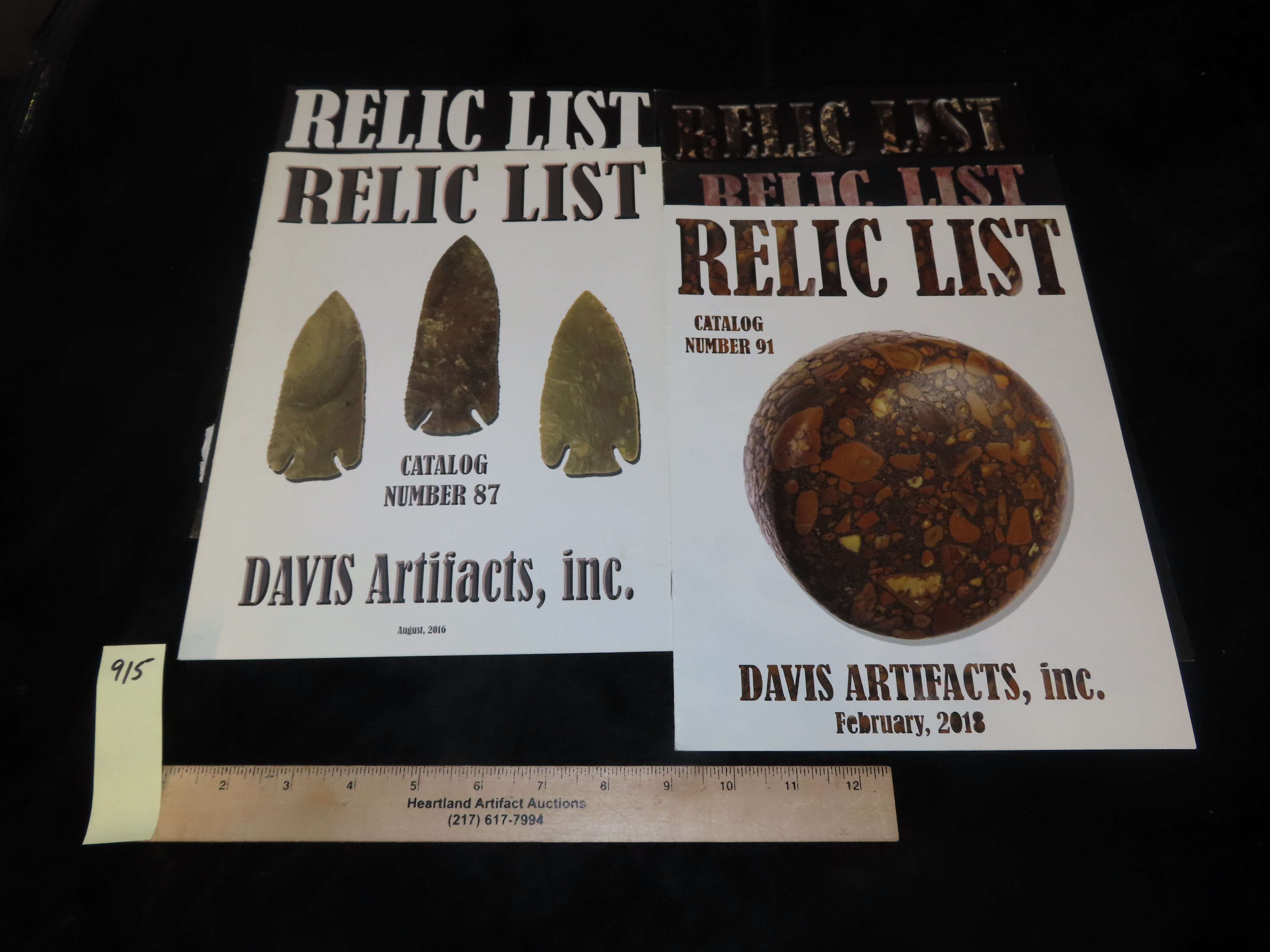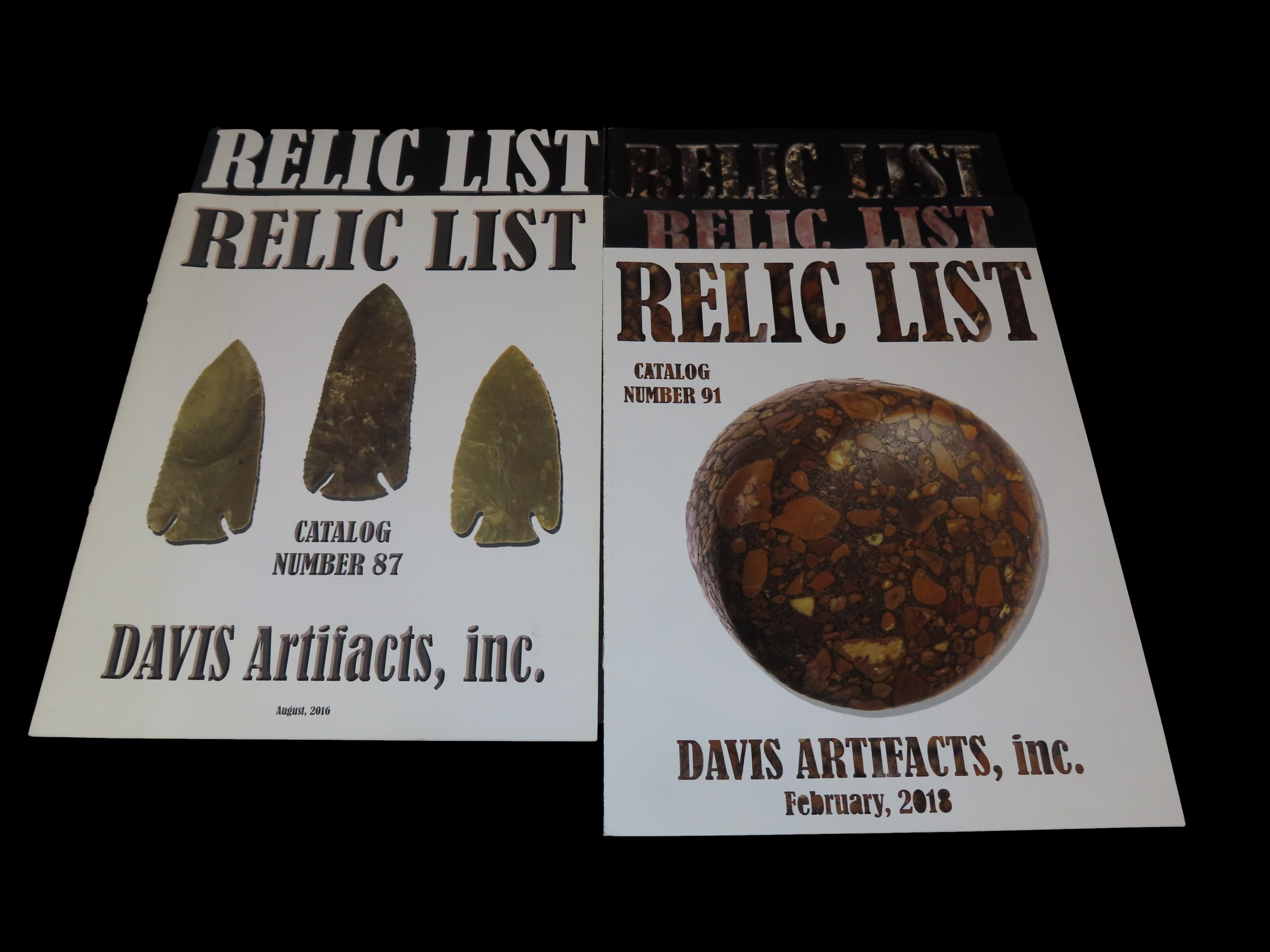 LOT OF RELIC LIST CATALOGS FROM THE 2000’S, INCLUDING THE FAMOUS “BIG RED” CUMBERLAND, TOM DAVIS NATIVE AMERICAN INDIAN ARTIFACTS SALES CATALOGS