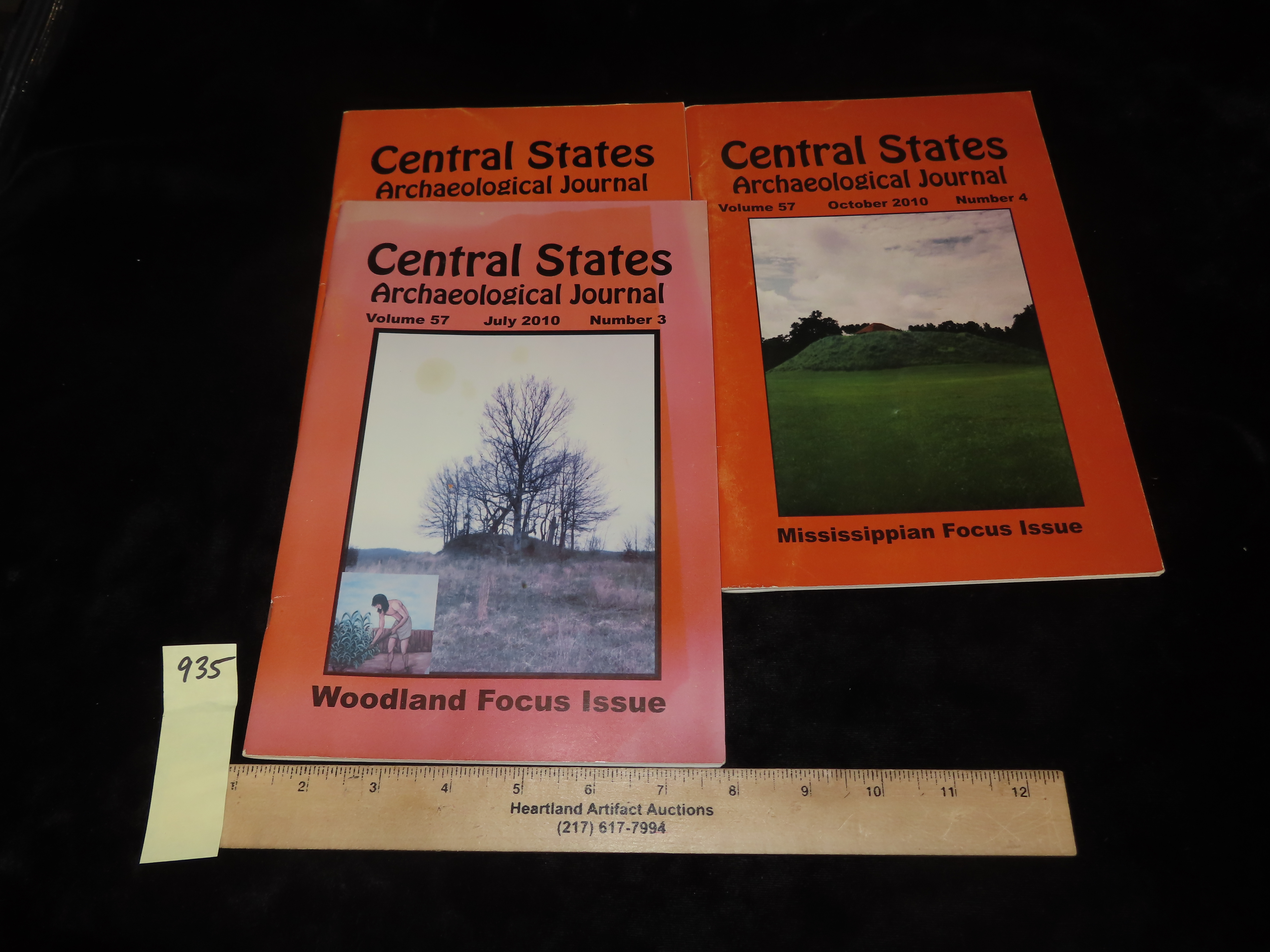 SET OF 3 – 2010 CENTRAL STATES ARCHAEOLOGICAL JOURNALS, INDIAN ARTIFACT, ARROWHEAD, BANNERSTONE, PIPE, BIRDSTONE