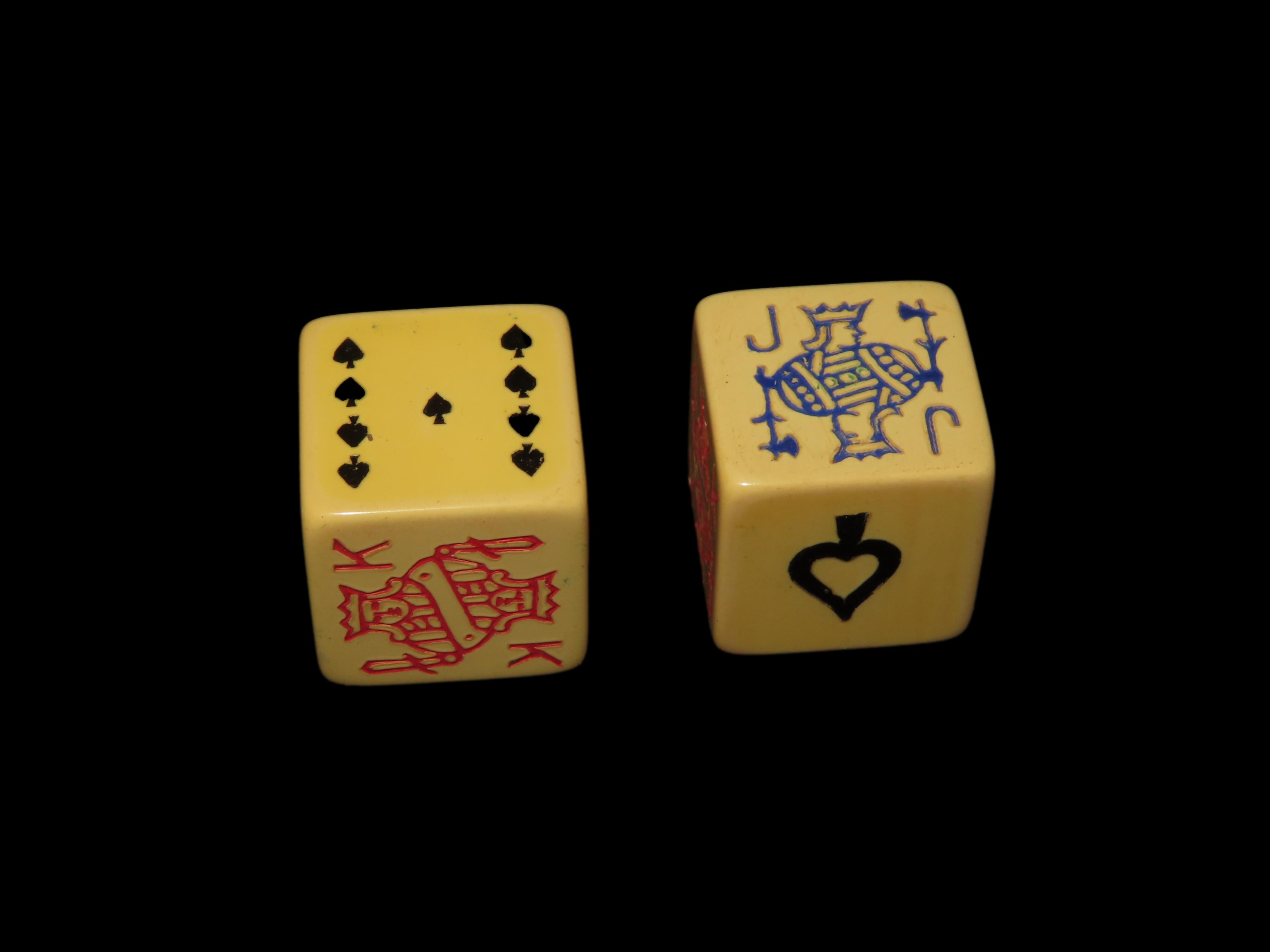 Vintage Pair of Dice, Die, Jack, King, Queen, Poker, Gambling
