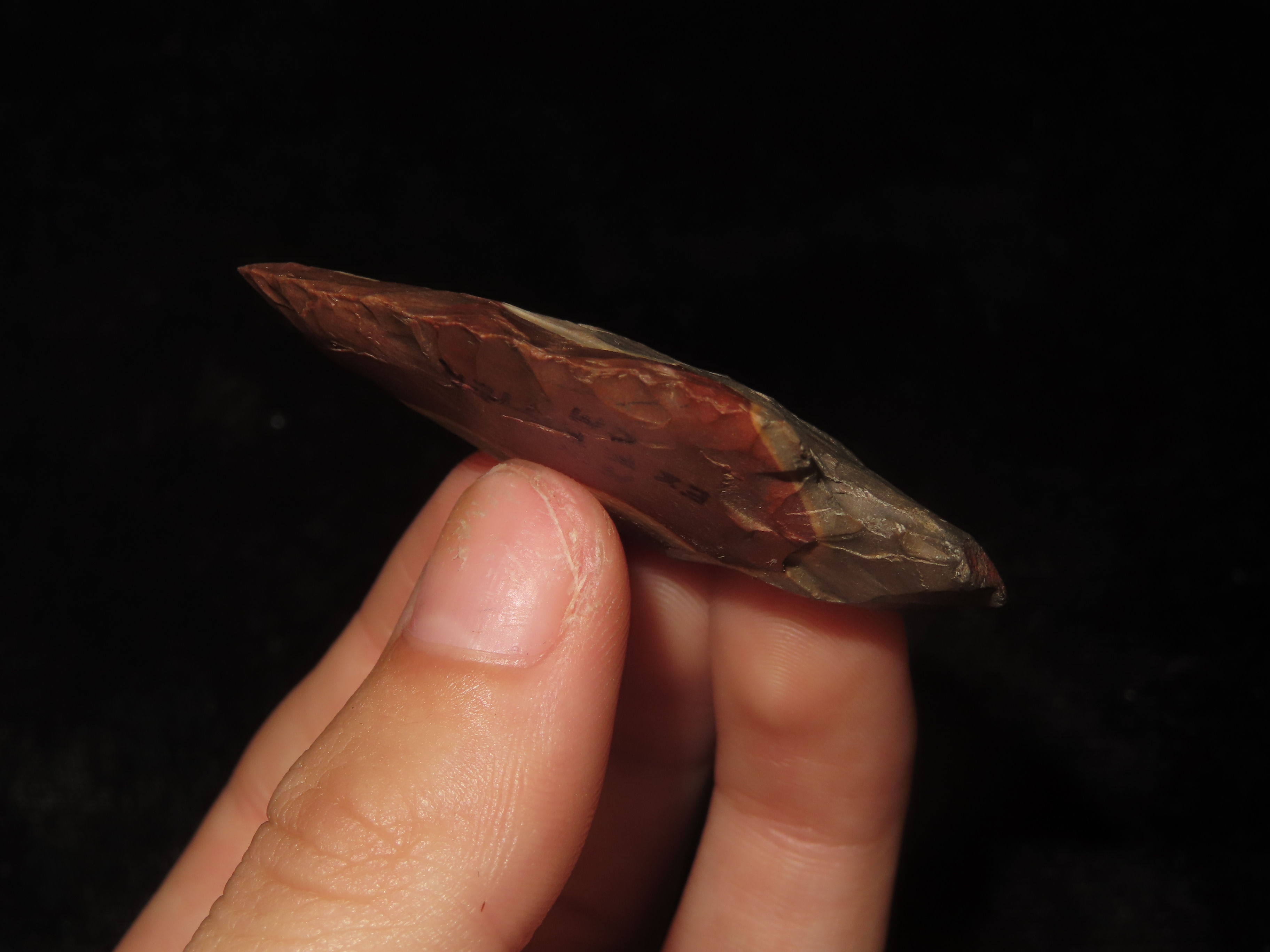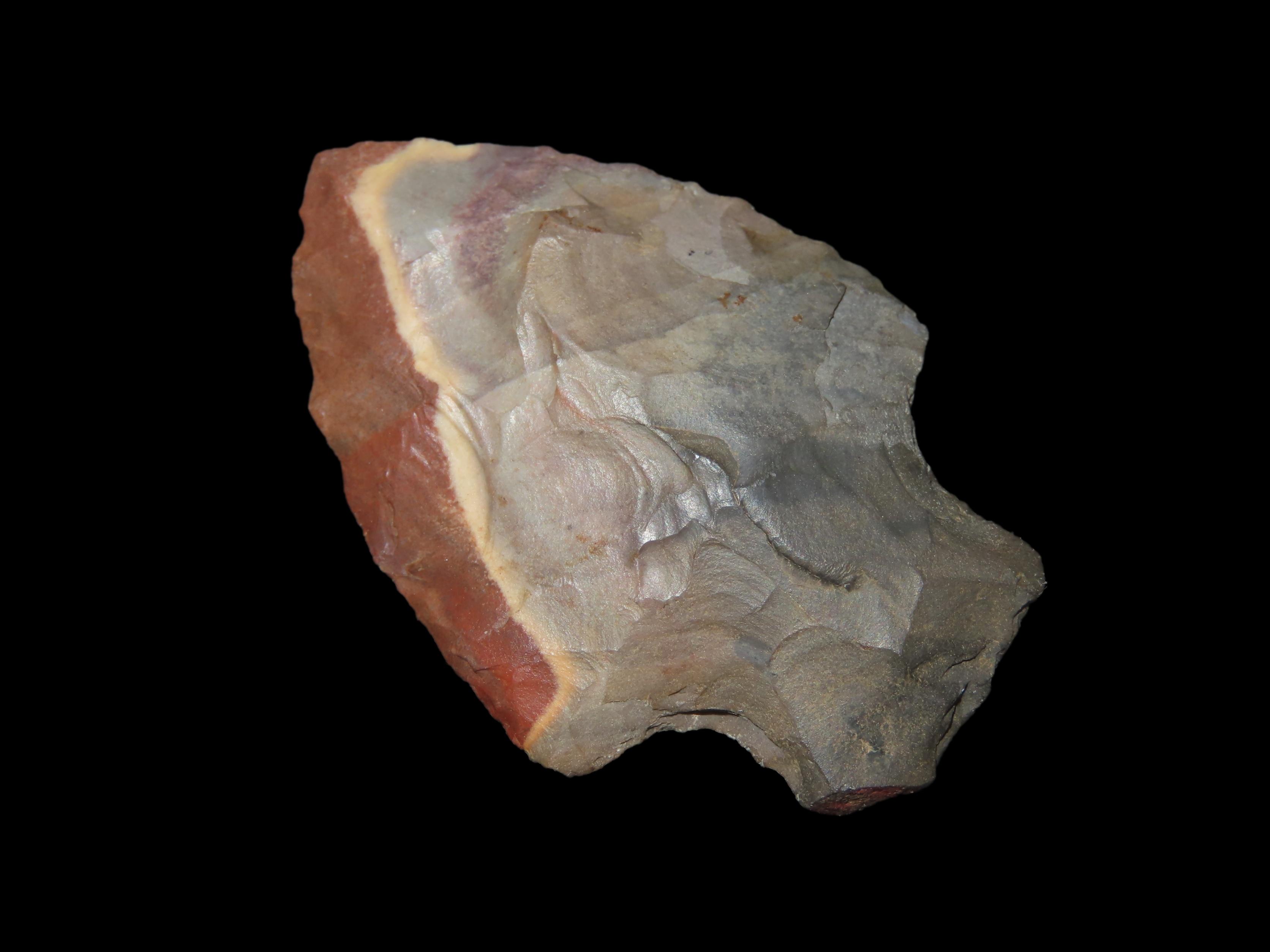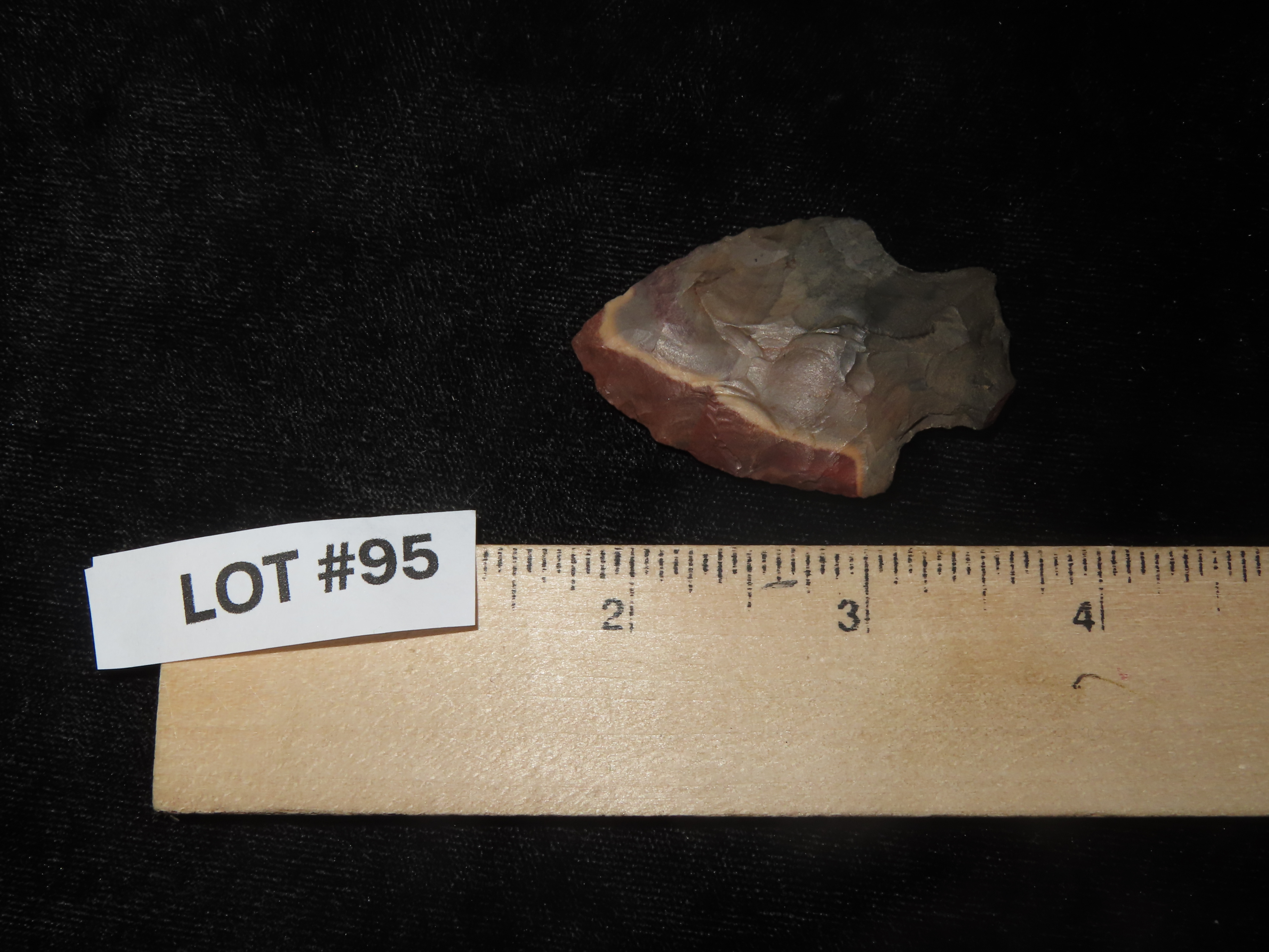 Incredible 2″ Horse Creek Chert Arrowhead, Amazing Tri-Colored Example, Found in Northern Alabama, Ex Charles Moore, Ex Floyd Ritter. Beautiful Example with Great patina