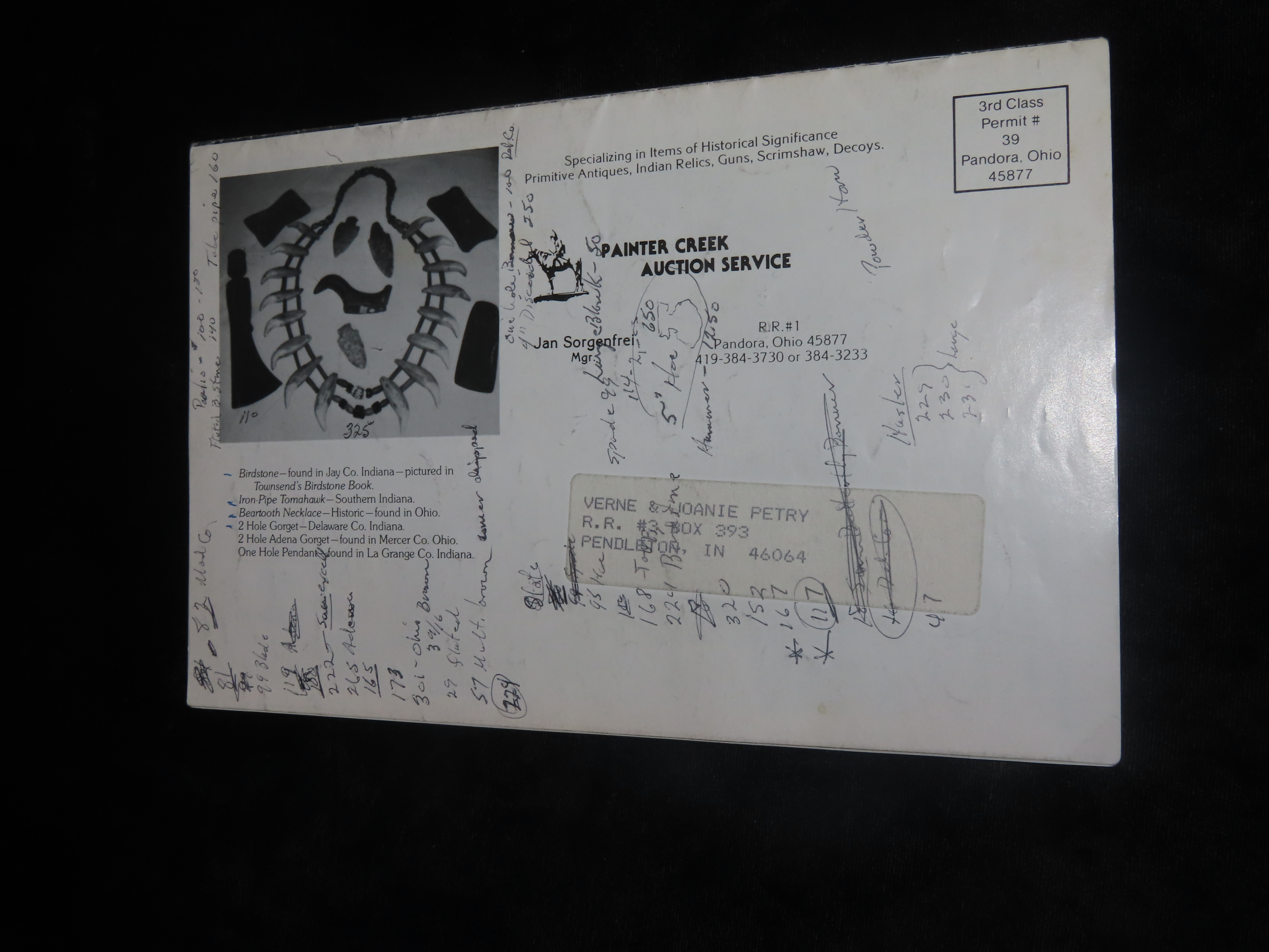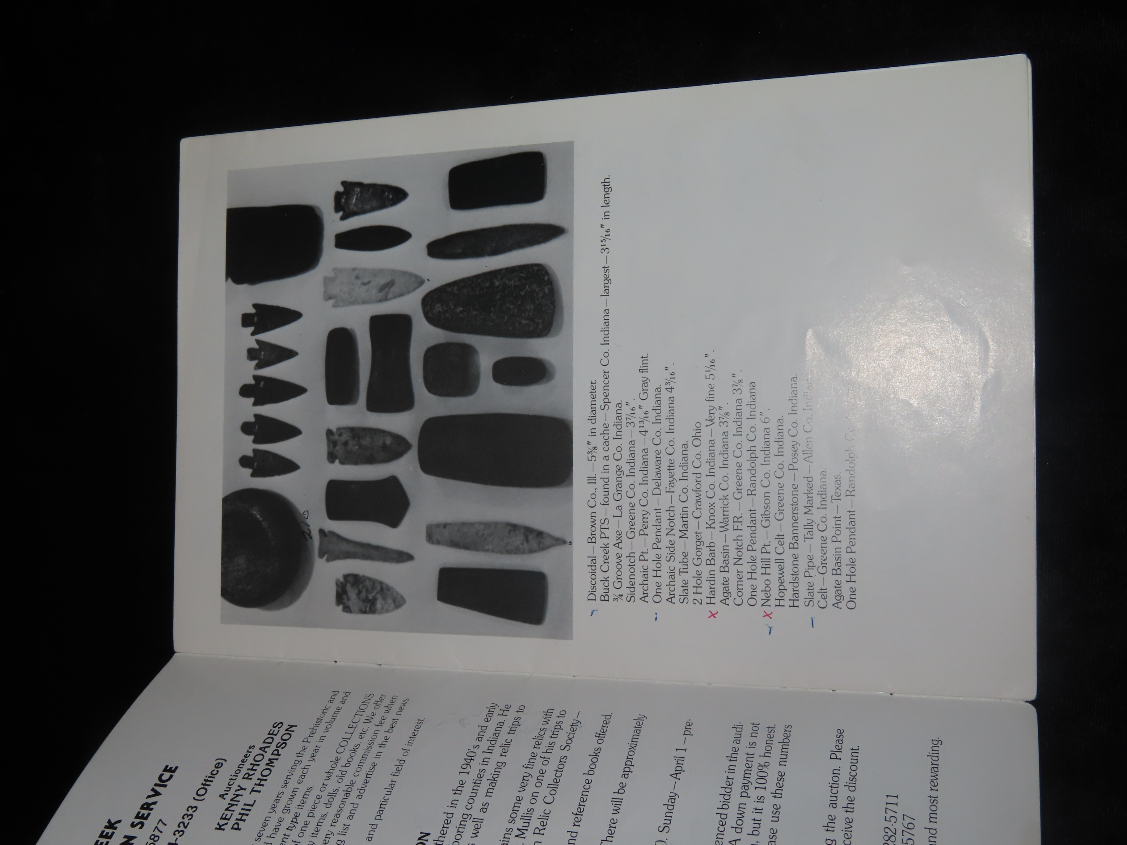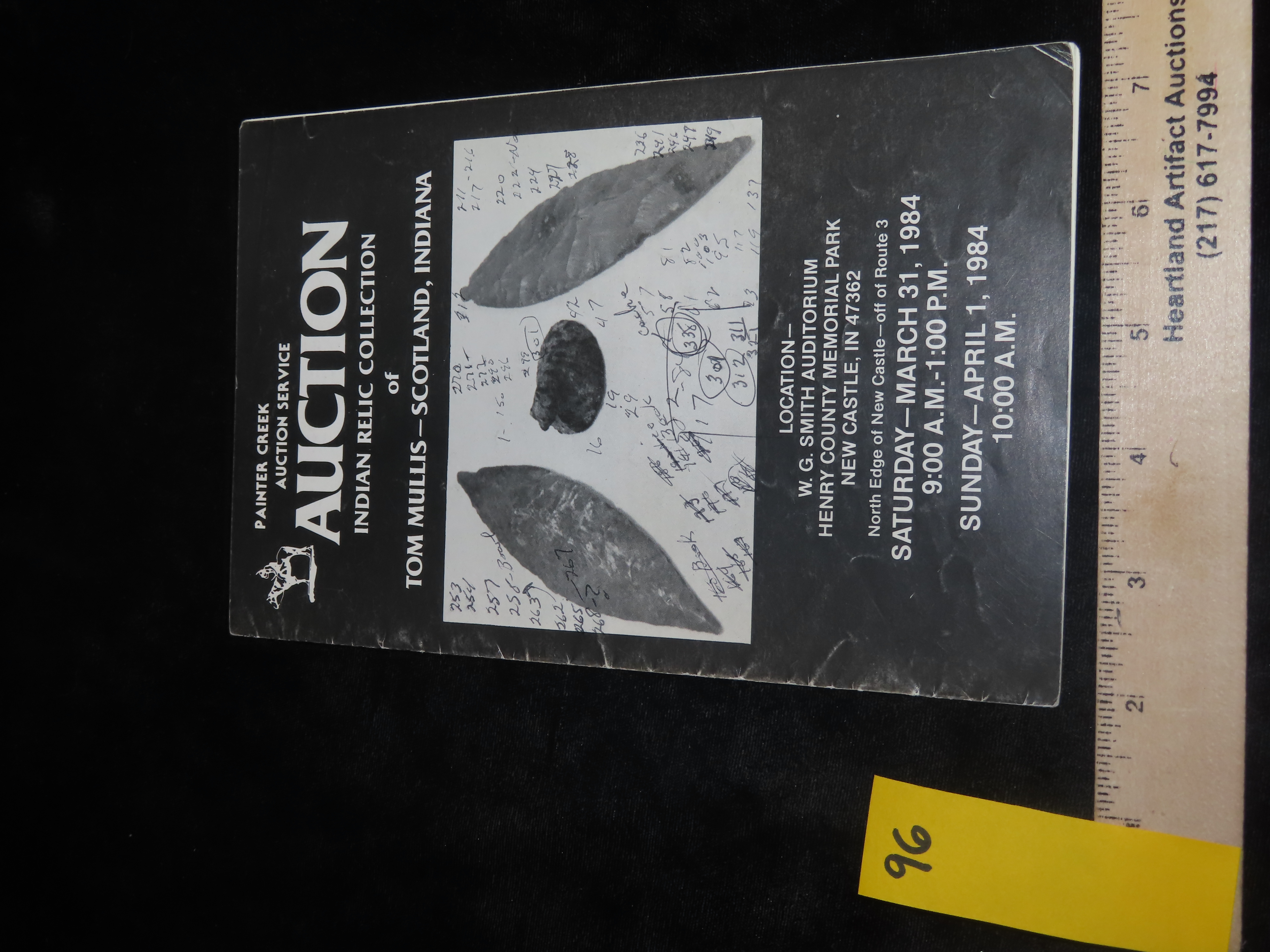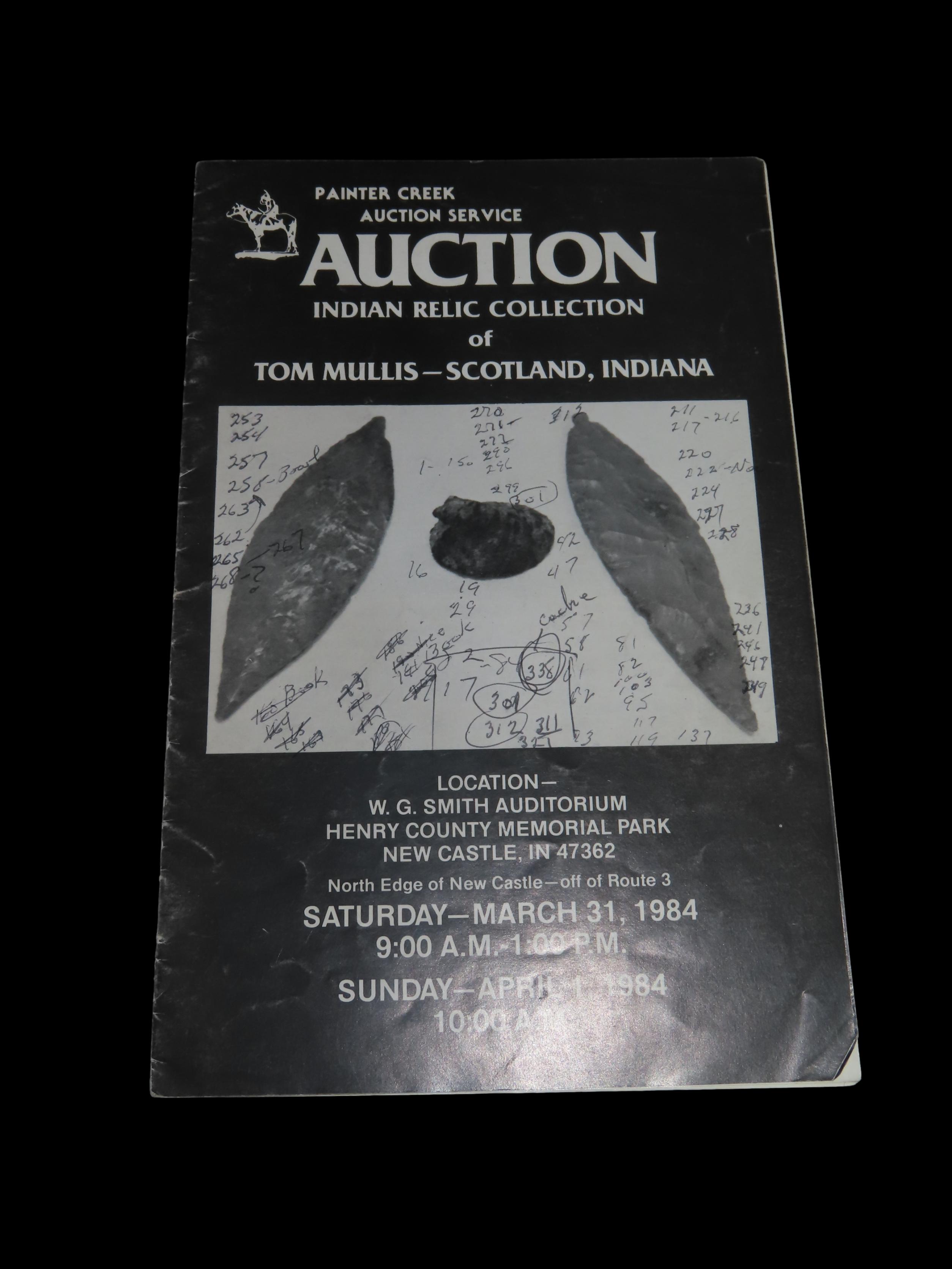 1984 Tom Mullis Indian Artifact Collection Auction Catalog , Painter Creek Auction Service, Turkeytal Cache, Birdstone, Dovetail, Clovis, Axe, etc