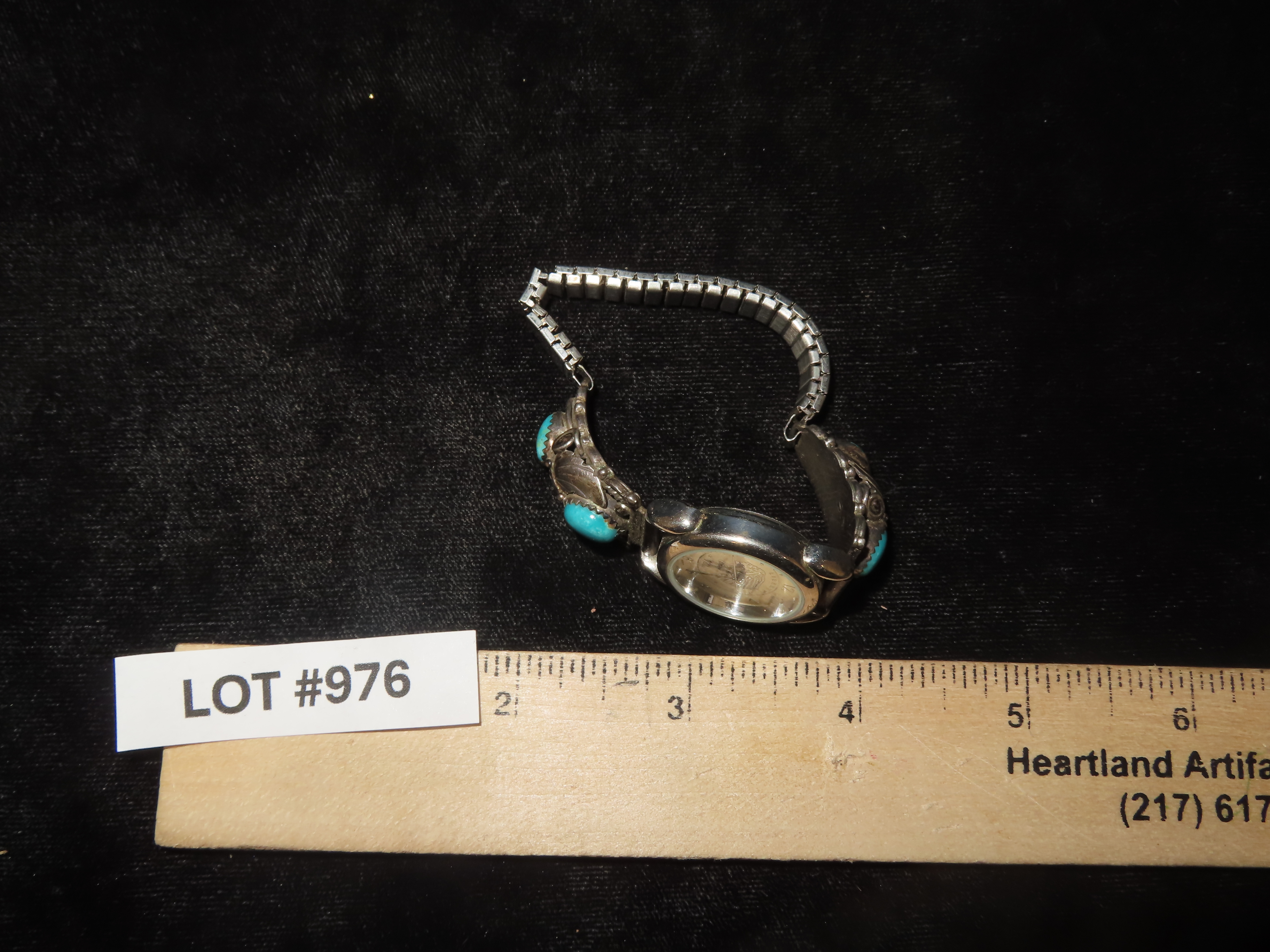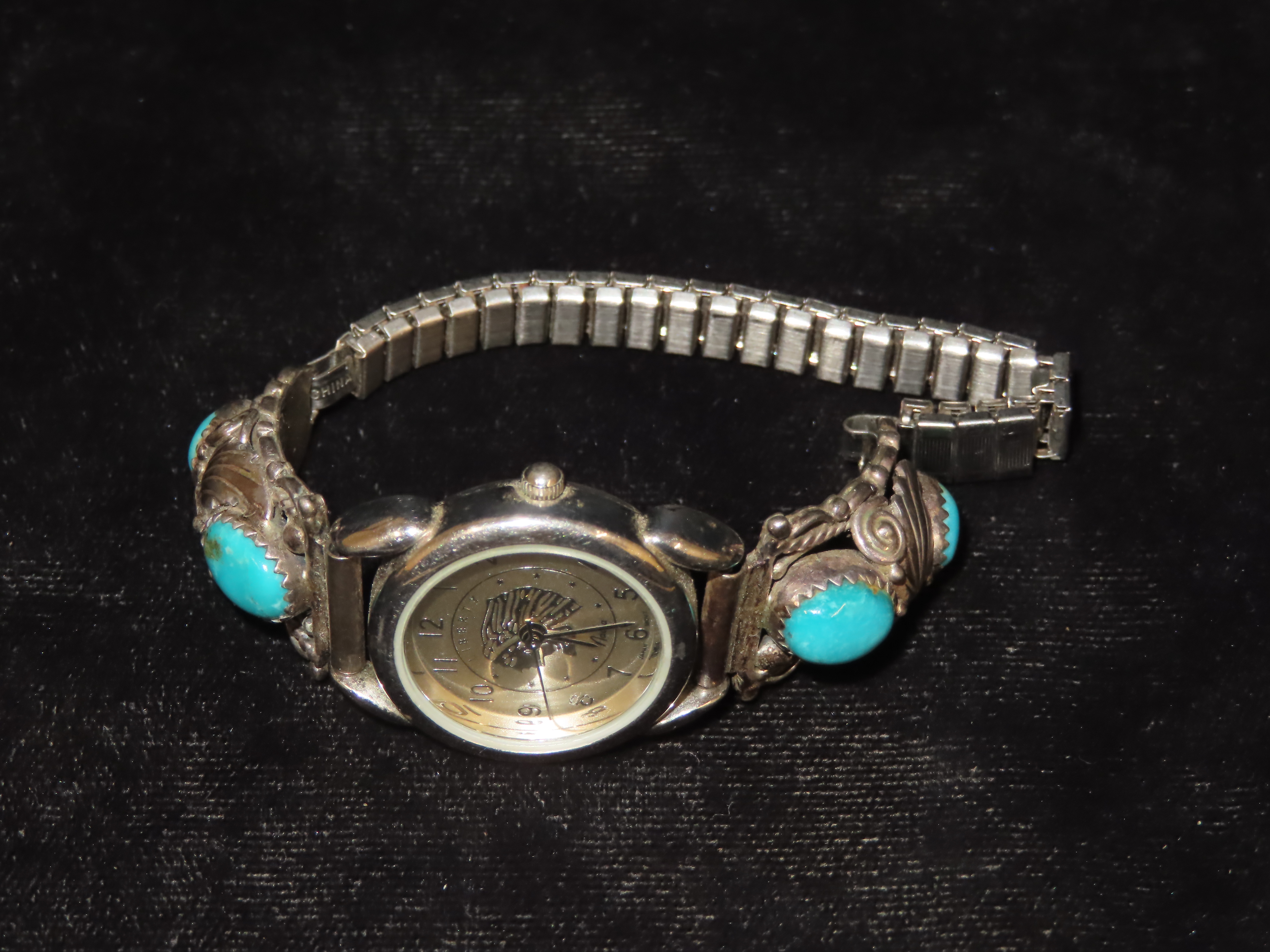 Antique Vintage Turquoise Watch with an Indian in the Background