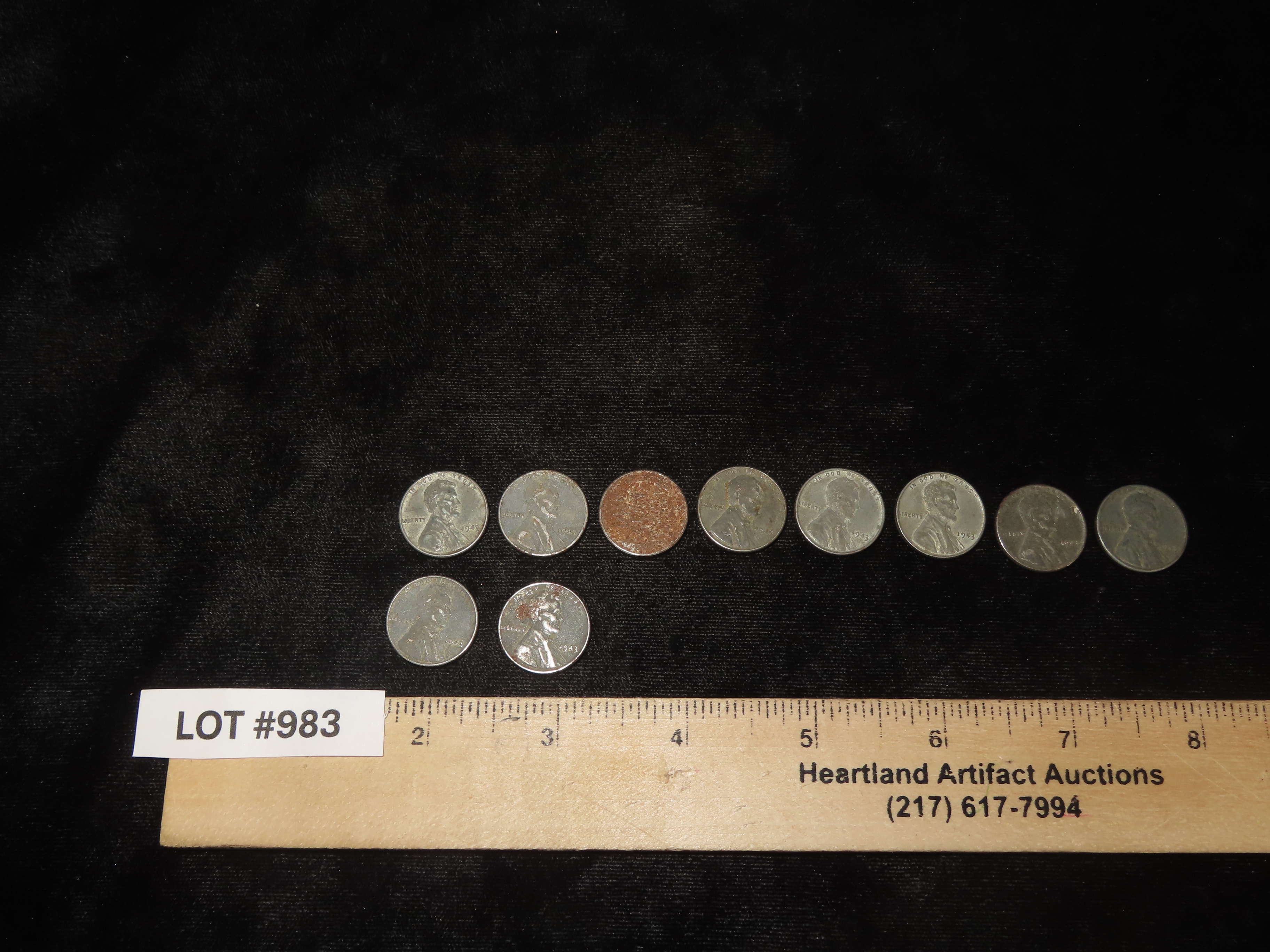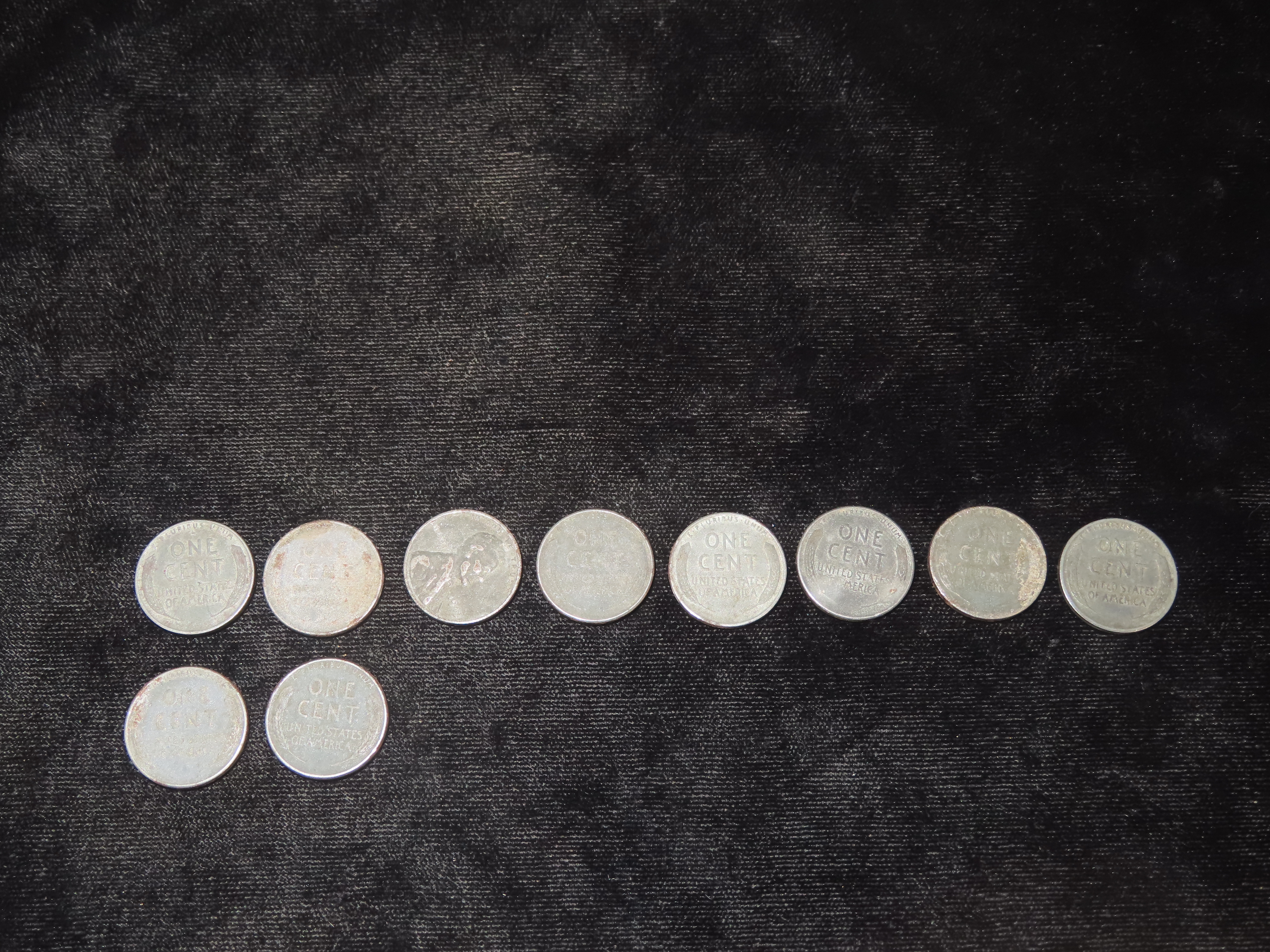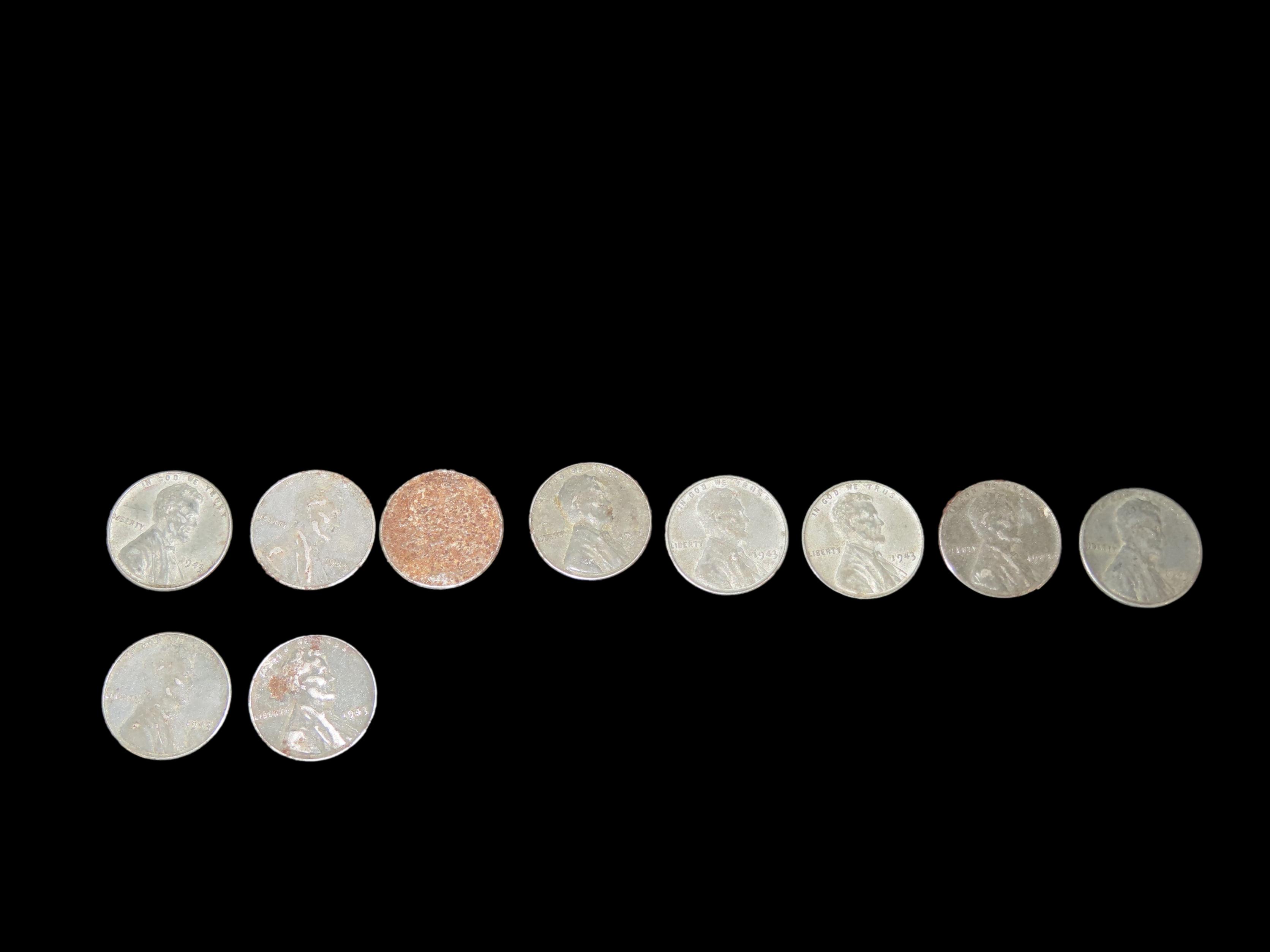 Lot of 10 WW2 Steel Wartime Lincoln Cents from 1943, Wheat Penny, WWII, World War 2 Coins, Only Year Any US Coin was ever made from Steel!