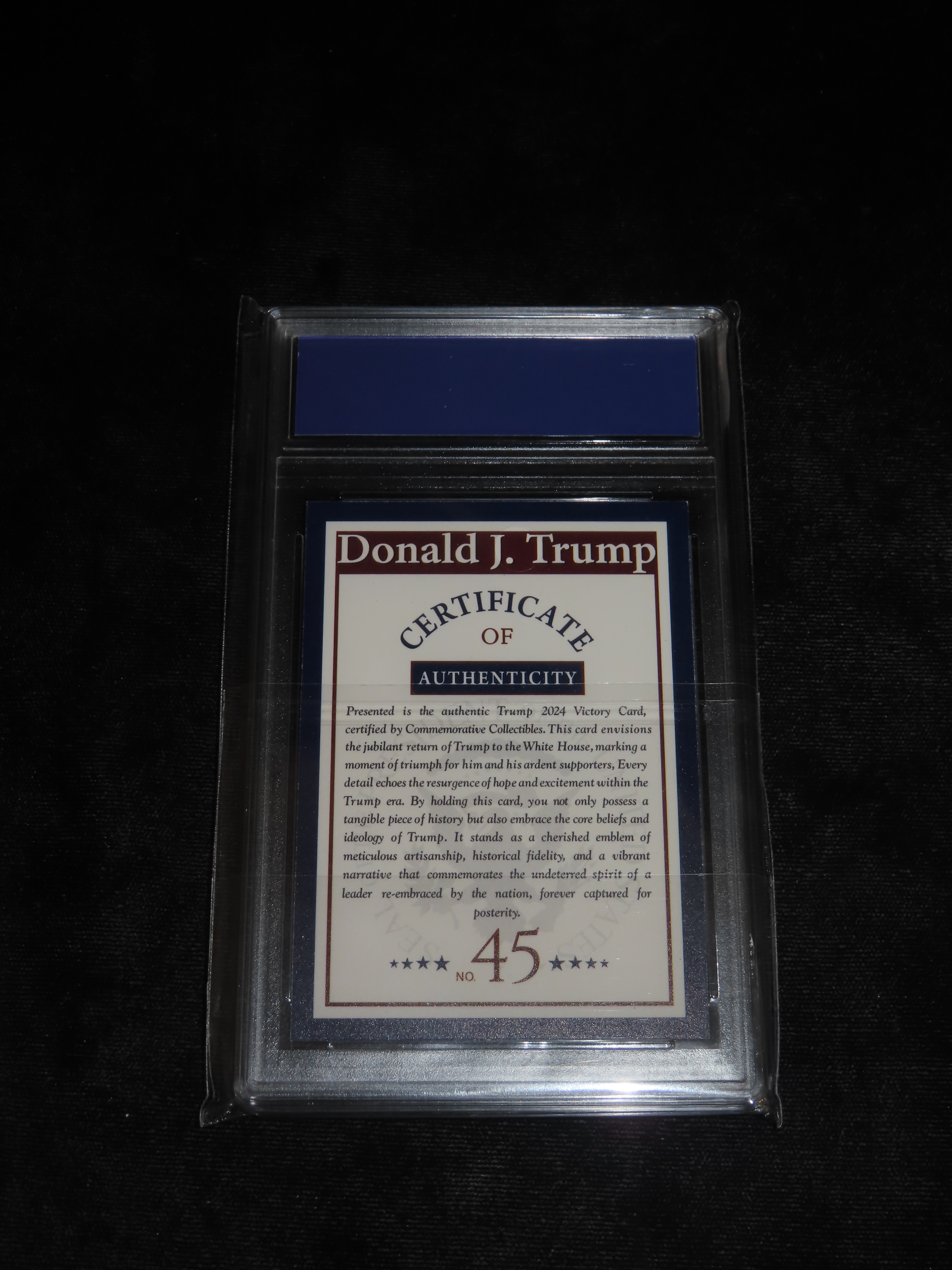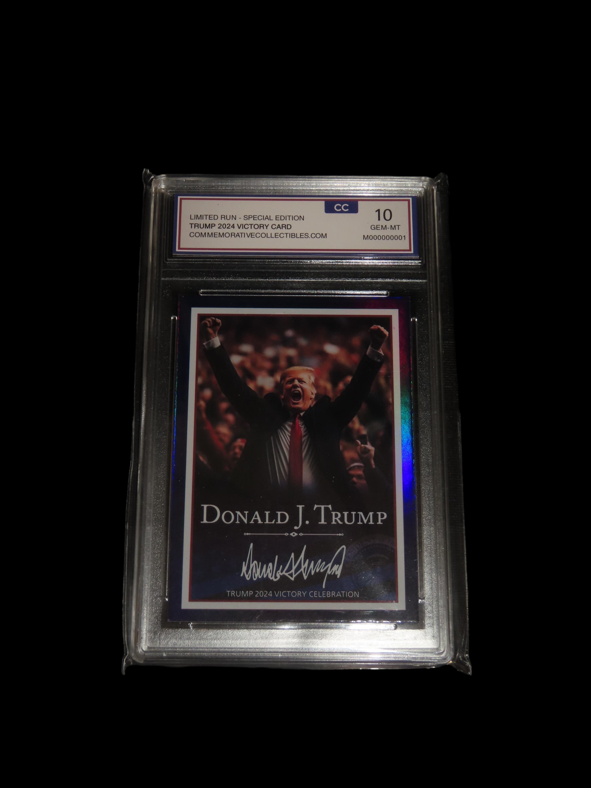 Special Edition President Donald Trump Victory Card, Baseball Card, Graded perfect 10, Slabbed.