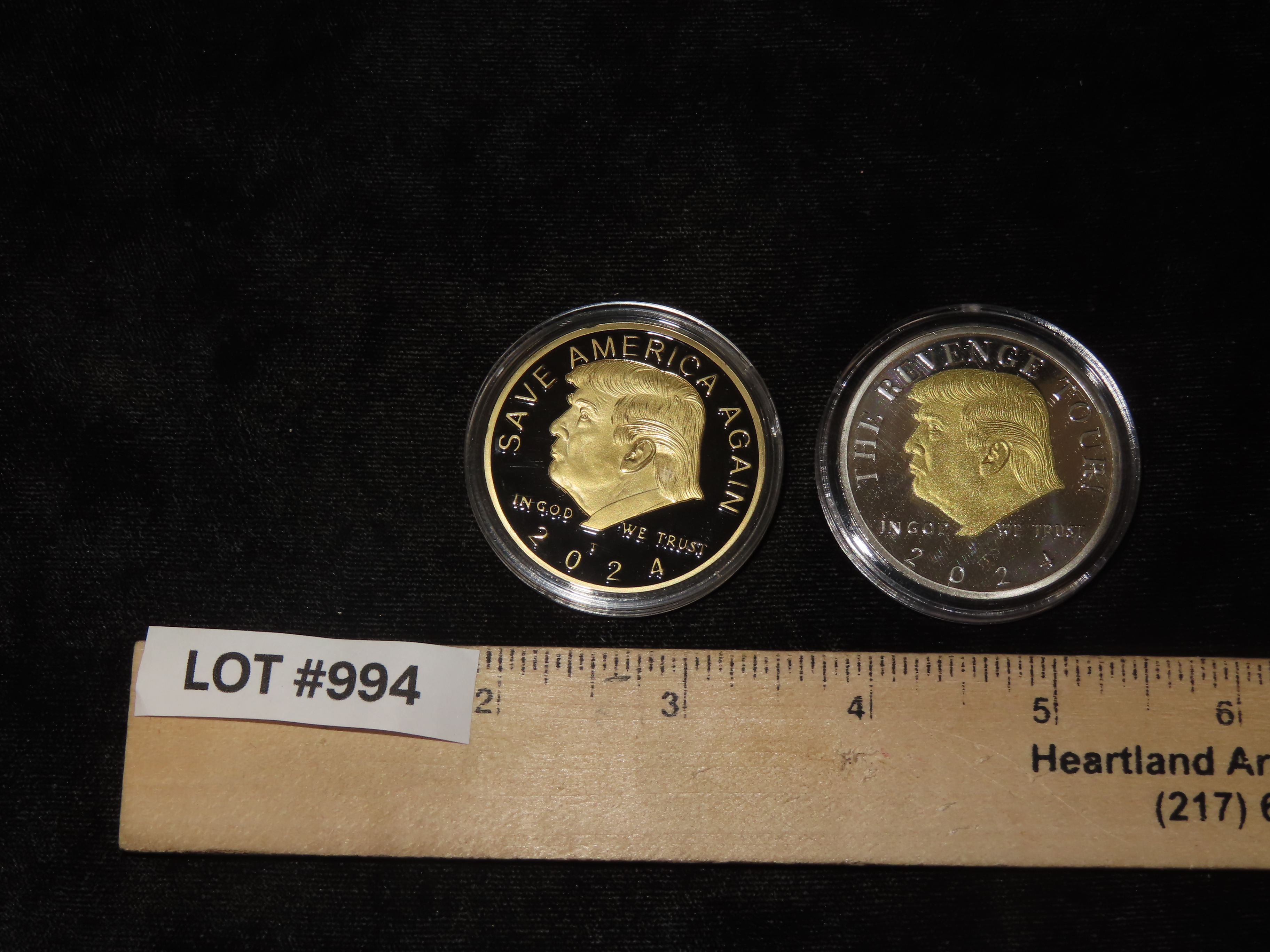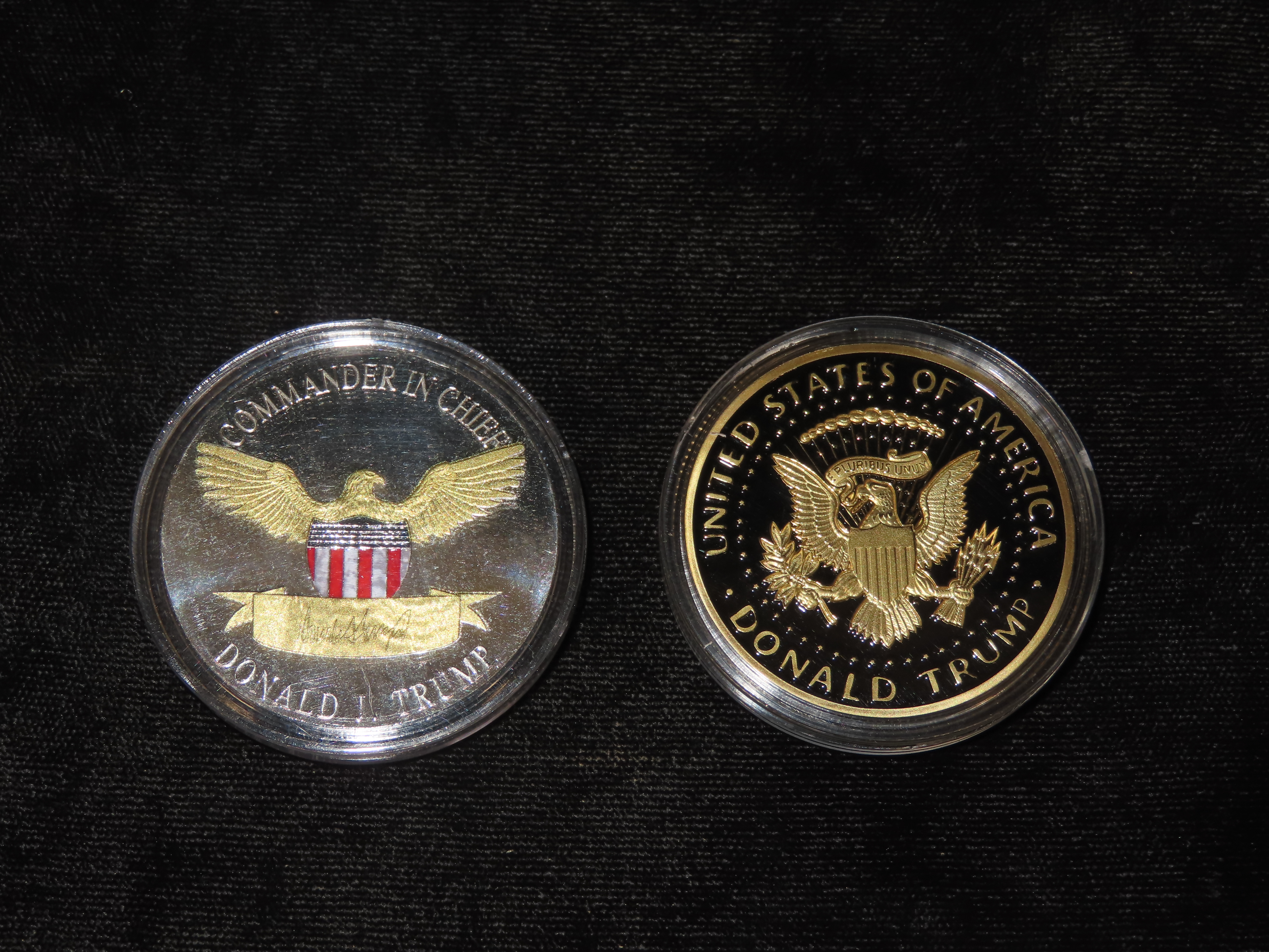 President Trump Coin Collection, Pair of Silver Dollar Sized Coins.