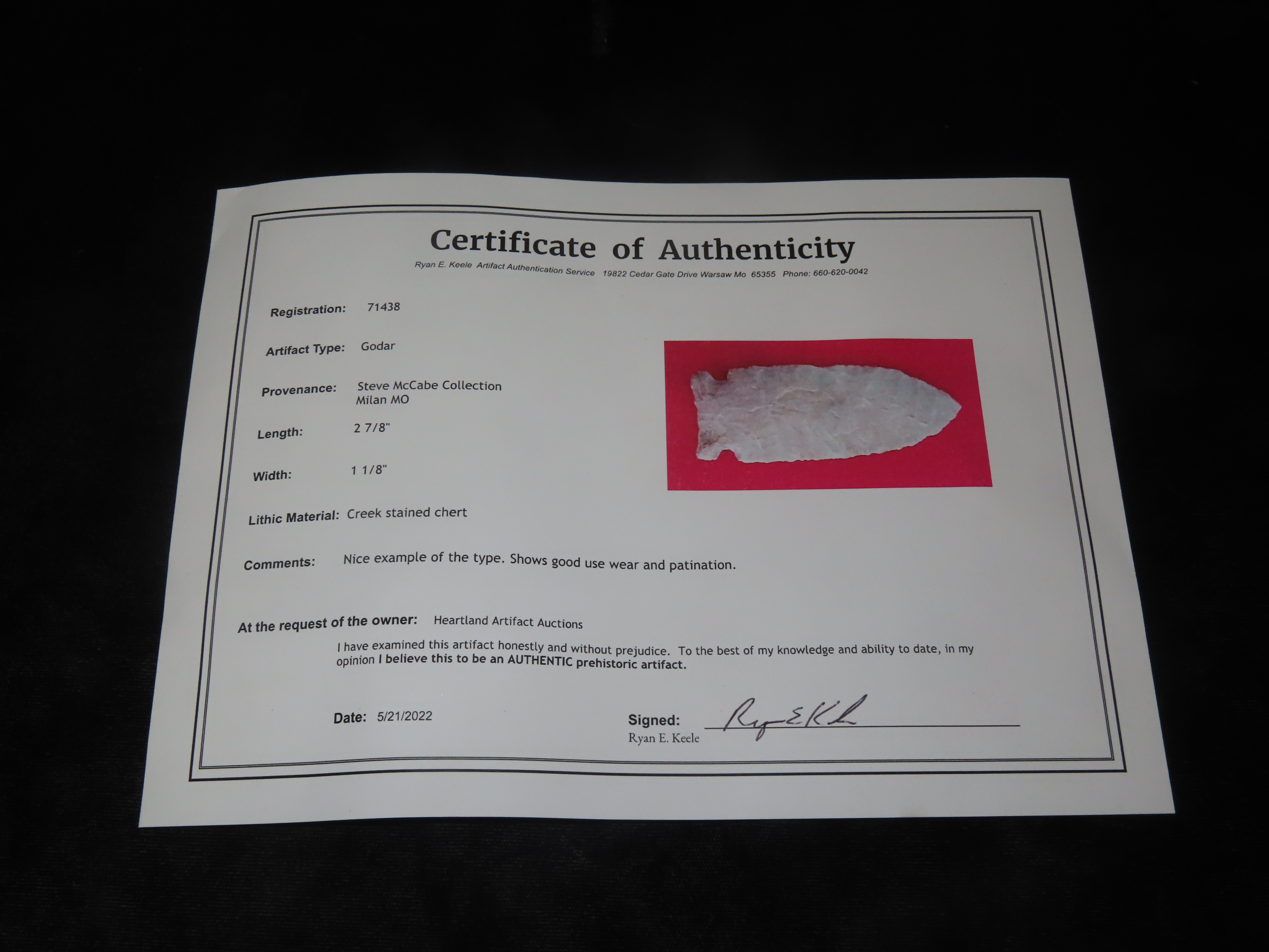 2 7/8” Godar,Keele COA, Found In Sullivan Co., Missouri,EX Steve McCabe Collection