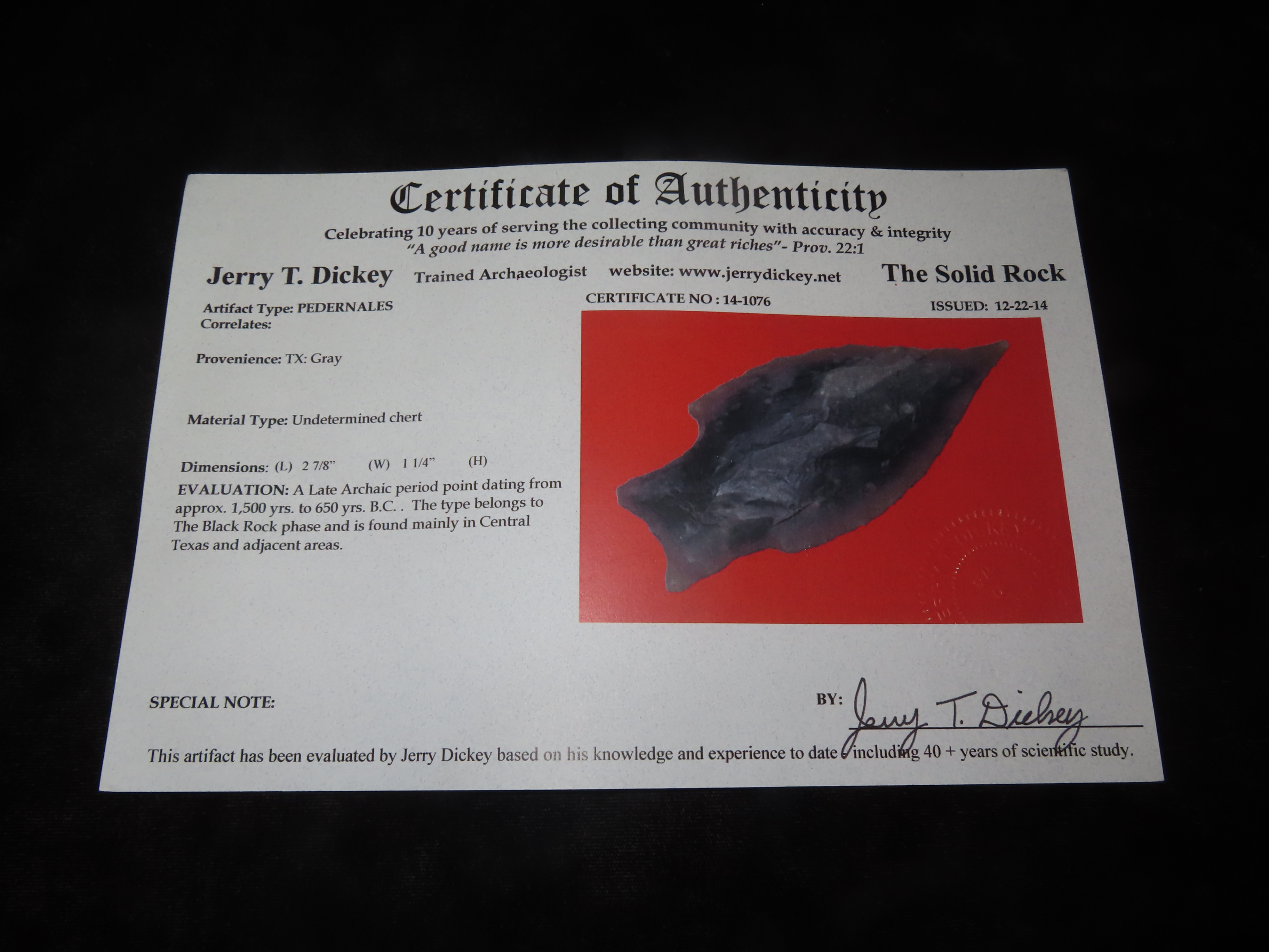 2 7/8” Pedernales,Dickey COA,Found In Gray Co., Texas