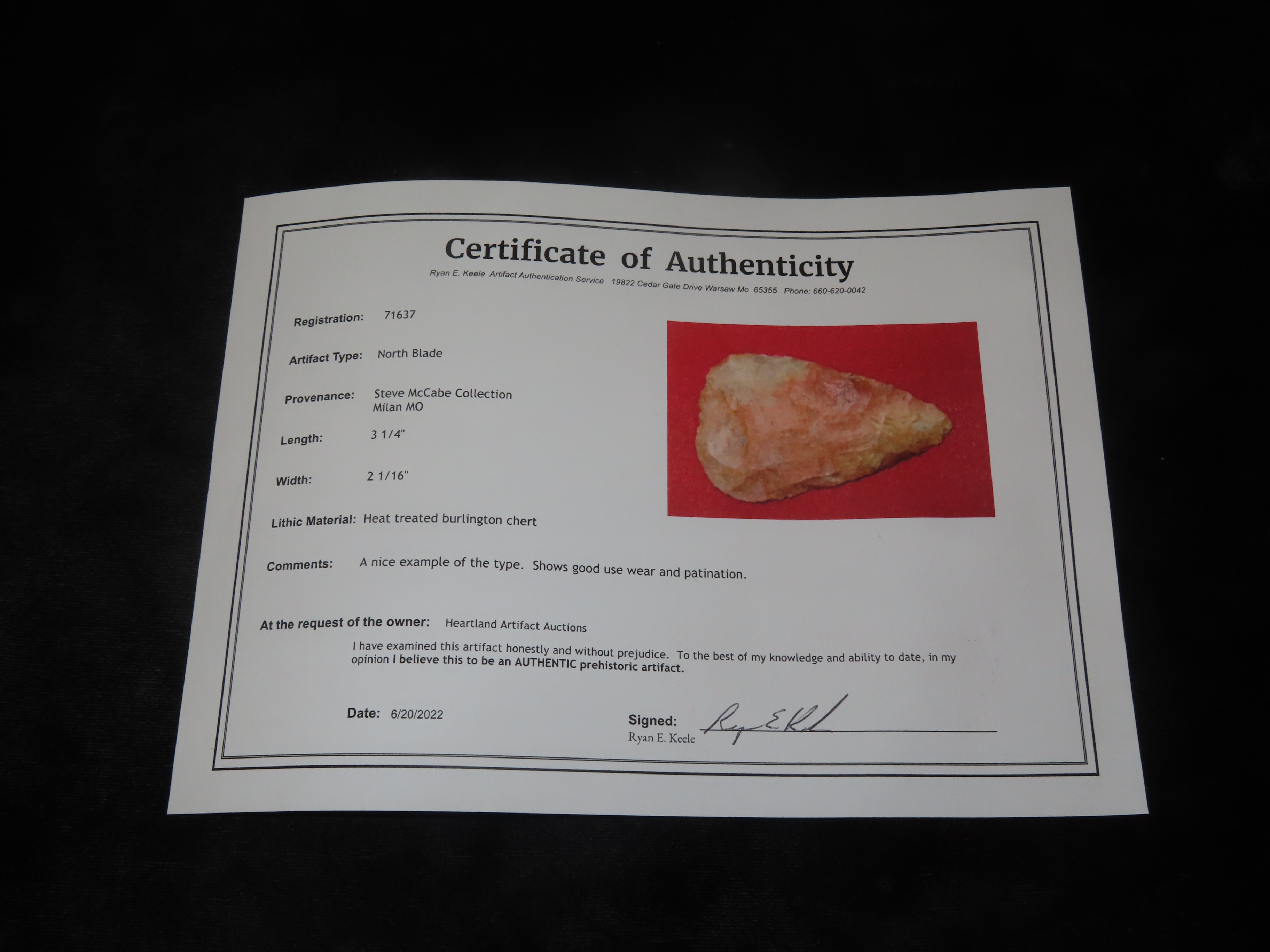 3 1/4” North Blade, Keele COA,Found In Sullivan Co., Missouri, Ex Steve McCabe Collection