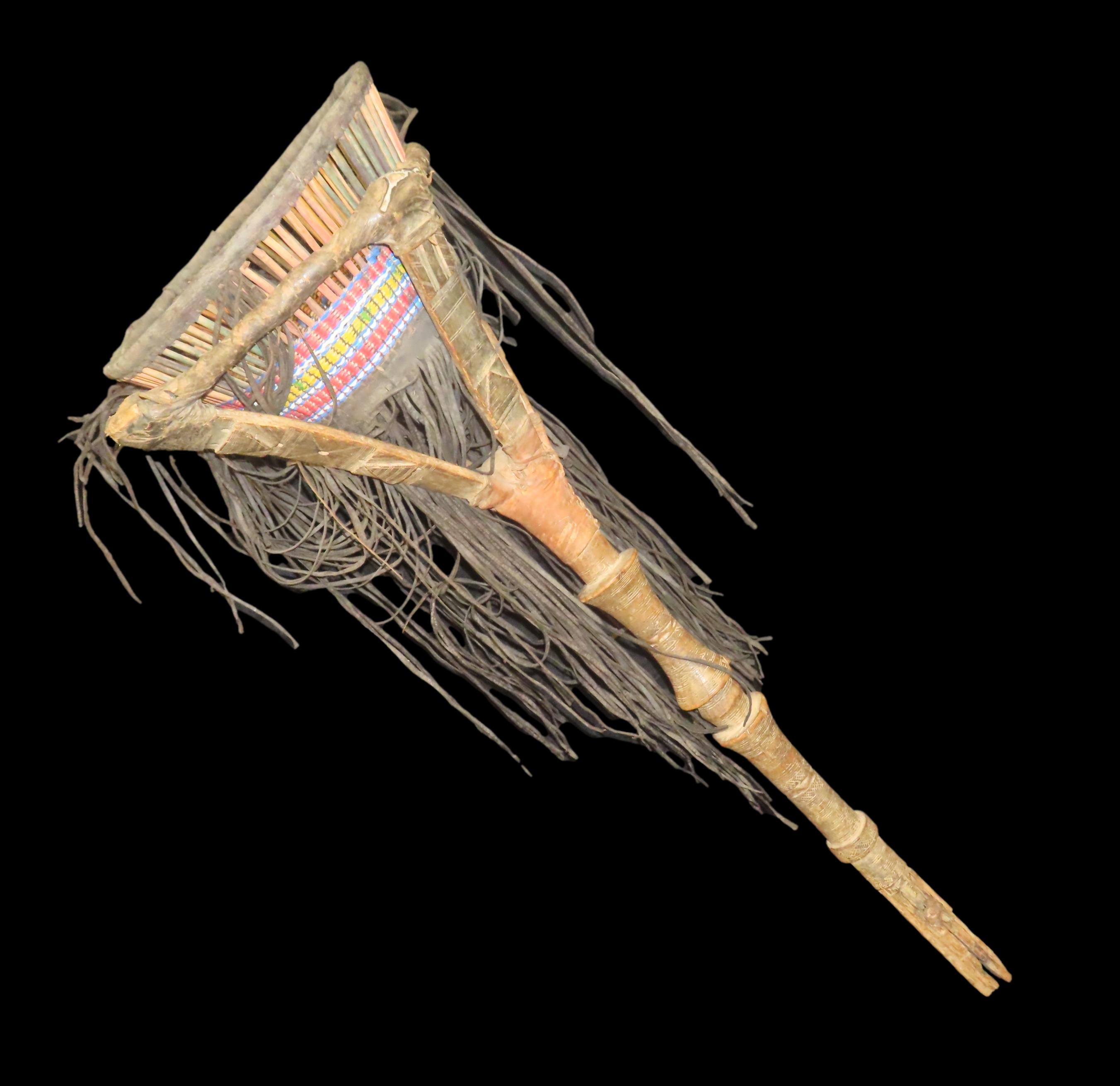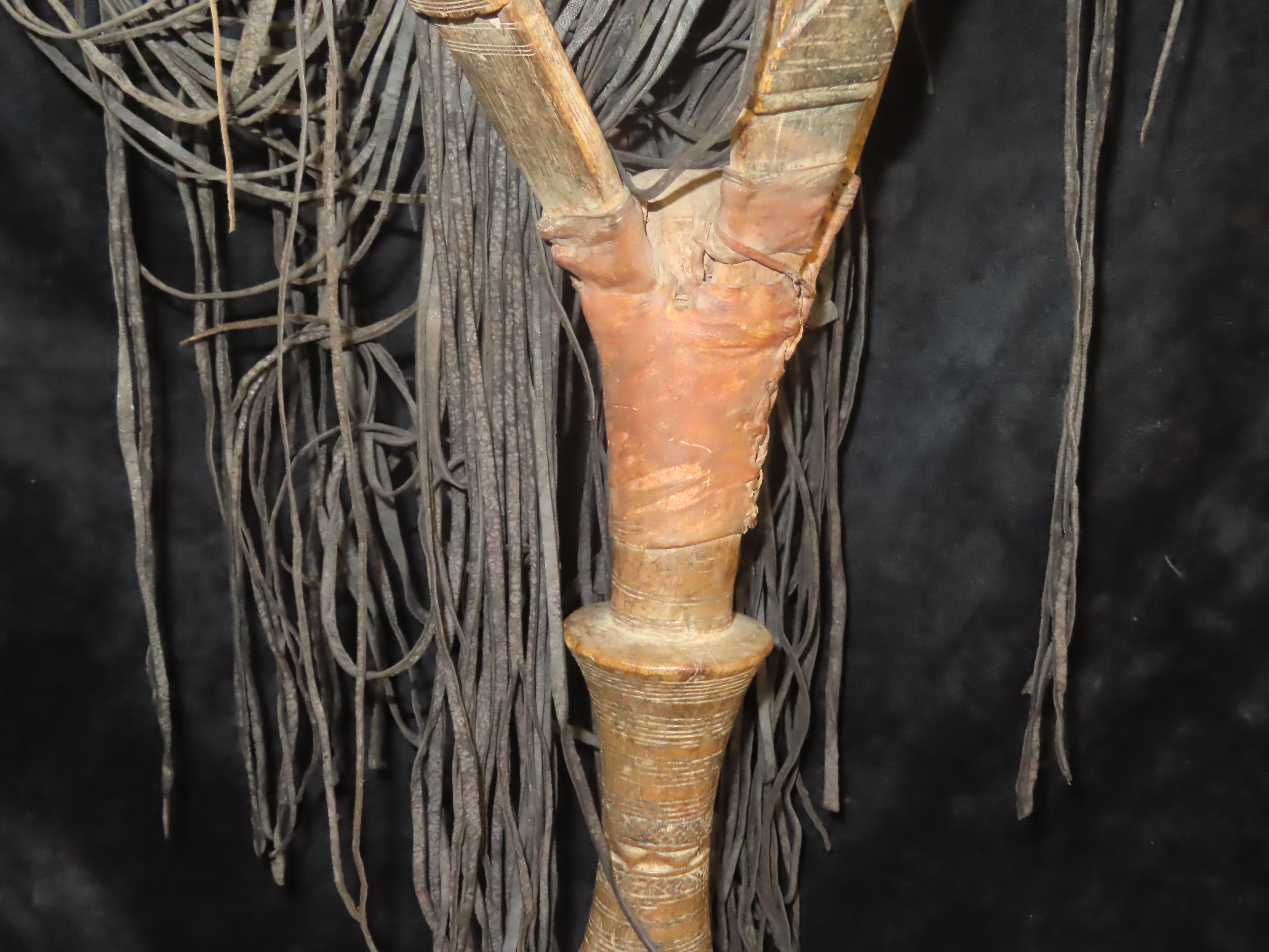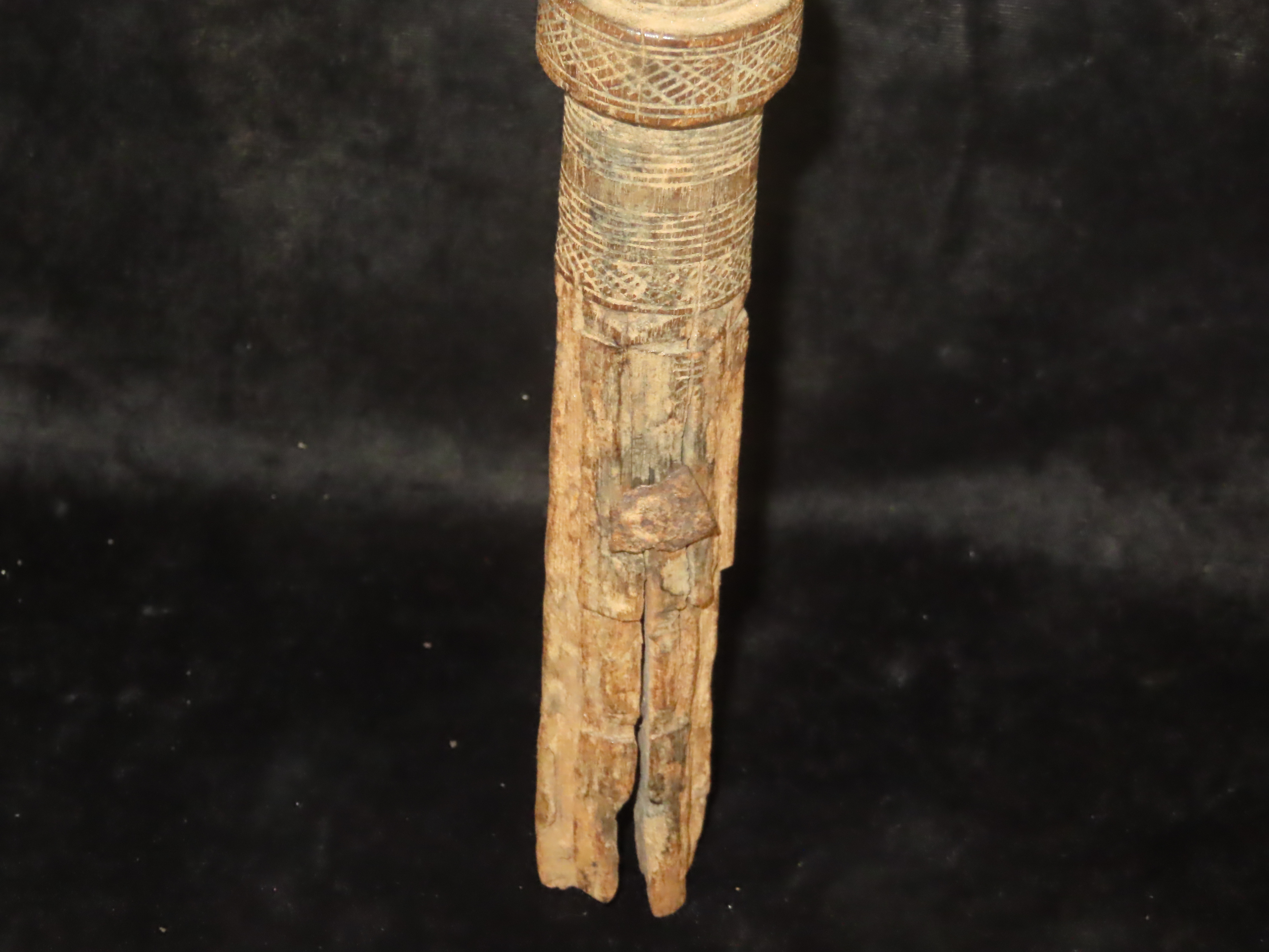 A Tejikant is a traditional, hand-carved wooden bowl support used by the nomadic Tuareg people of the Sahara desert. It holds a food bowl or gourd in place, protecting it from the sand and ensuring it is safely elevated.