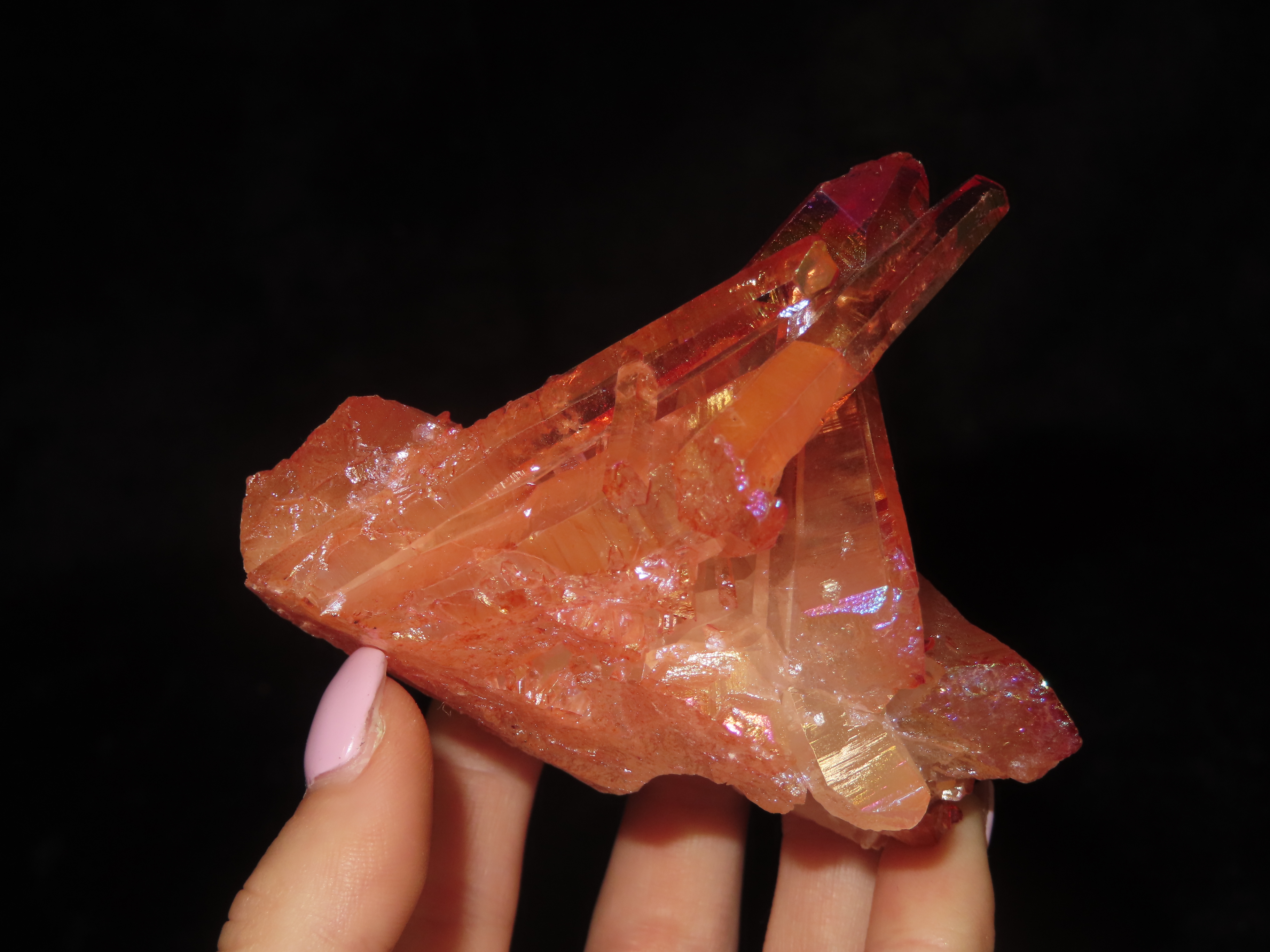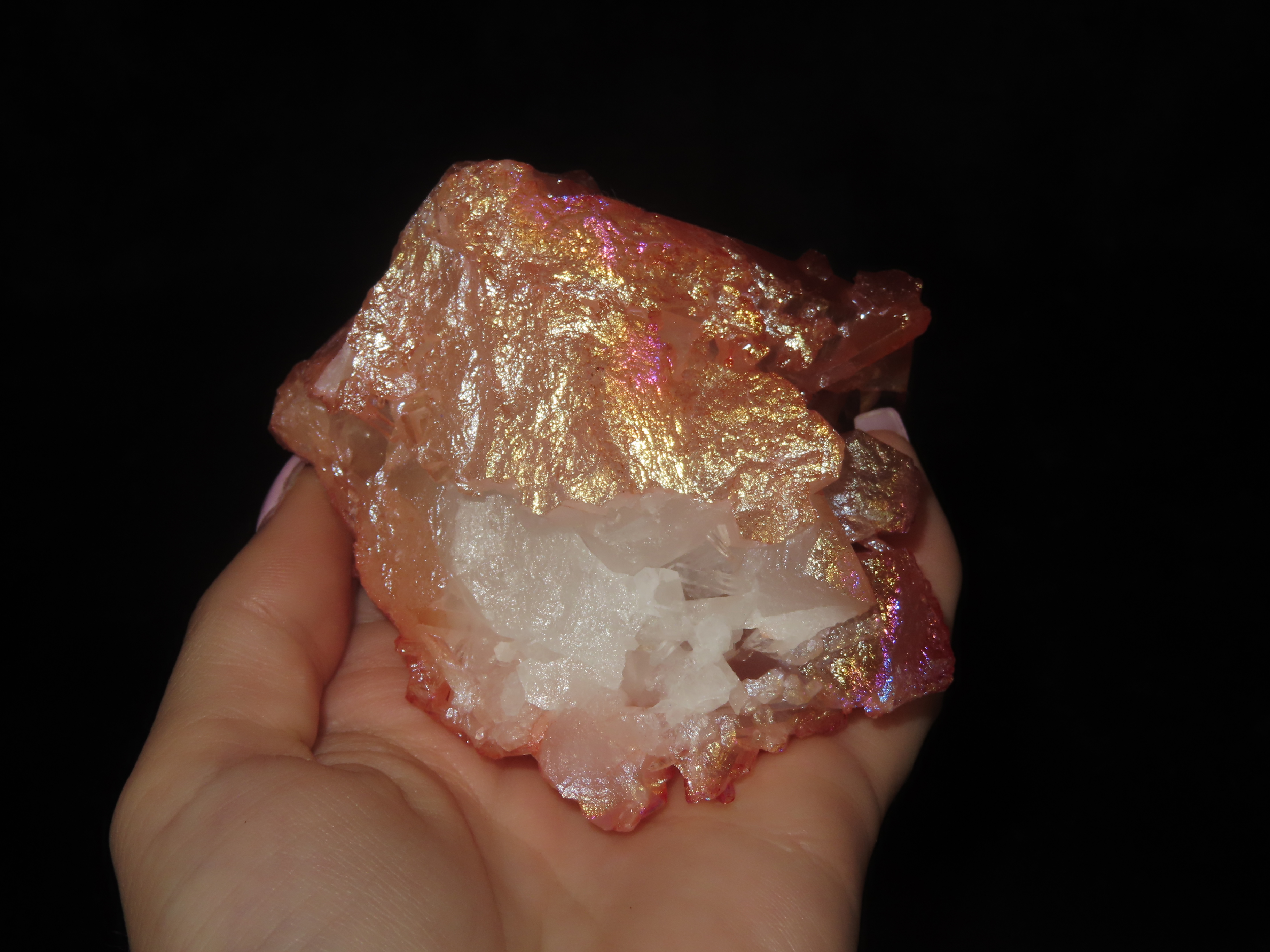 205 Gram, Quartz Crystal Cluster Formation Coated in Titanium Geode Specimen, Pink Color
