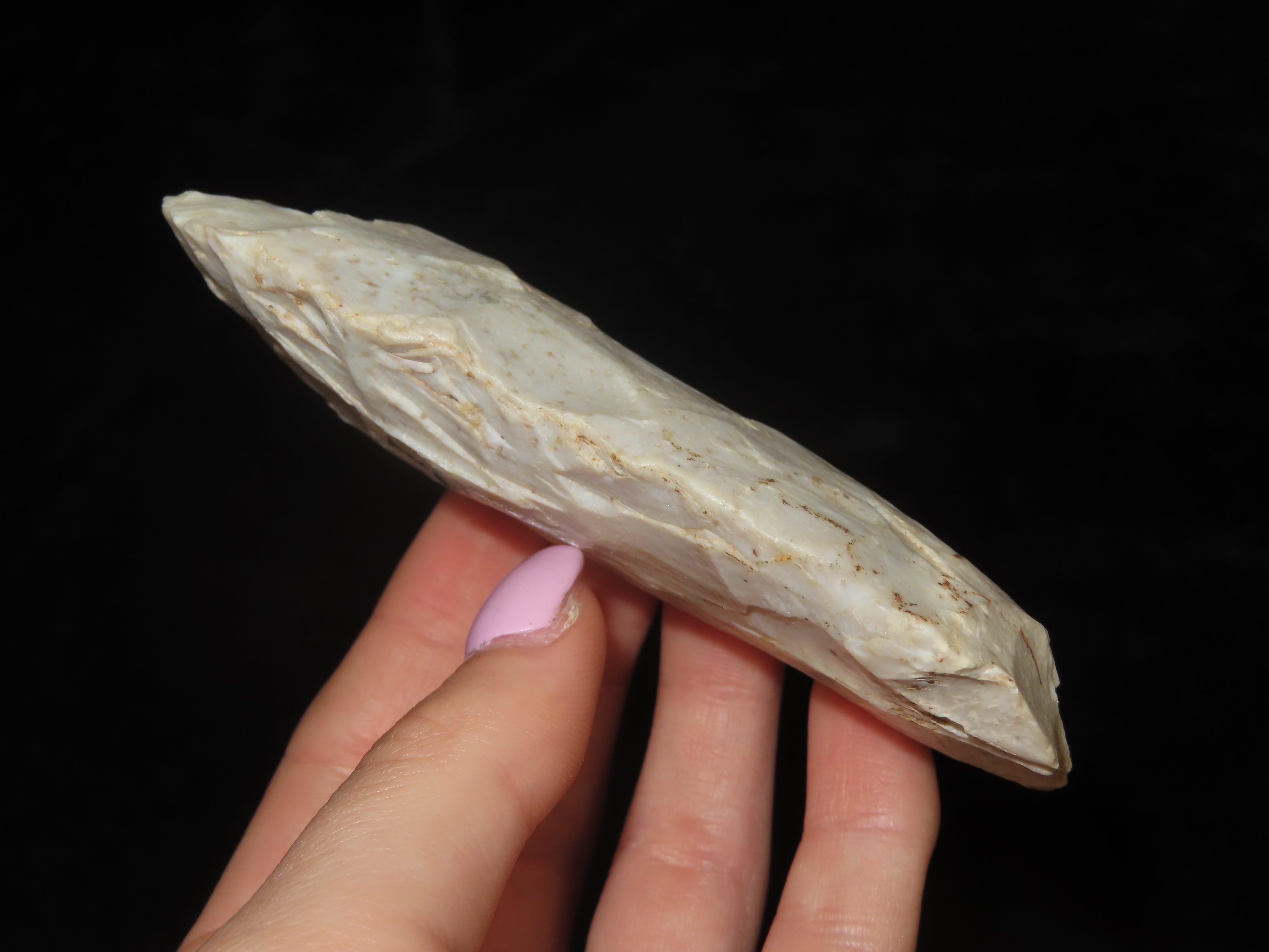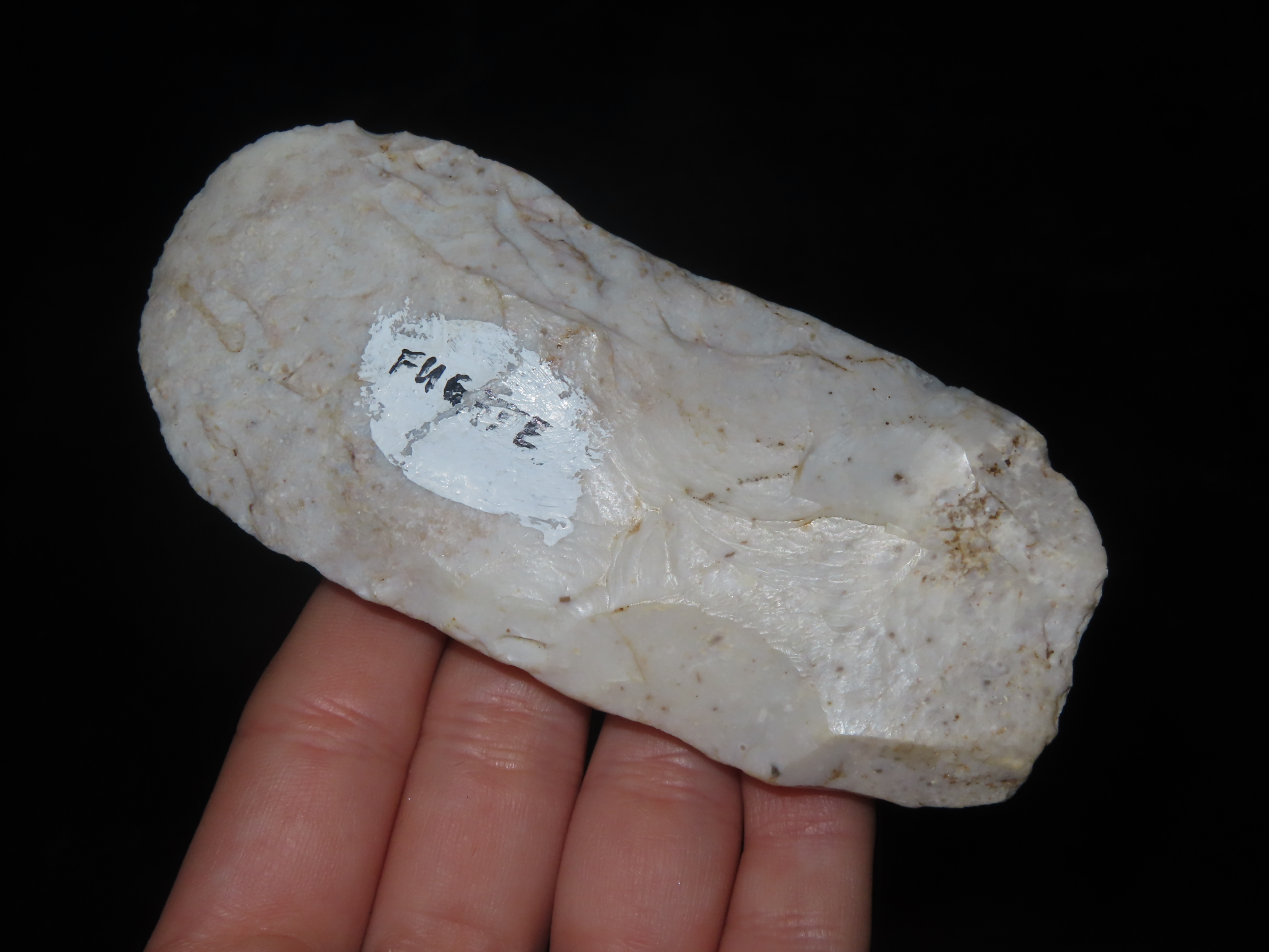 4″ Long Dalton Adze, Sovel Polished Bit, Burlington Chert, Ground Hafting Area, ex Fugate, Found in Adams Co., Illinois