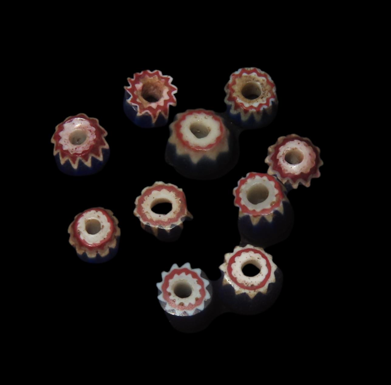 Set of 10 Authentic Miniature Multi-Layer Chevron Beads, ex Greg Perdun, Found in Illinois
