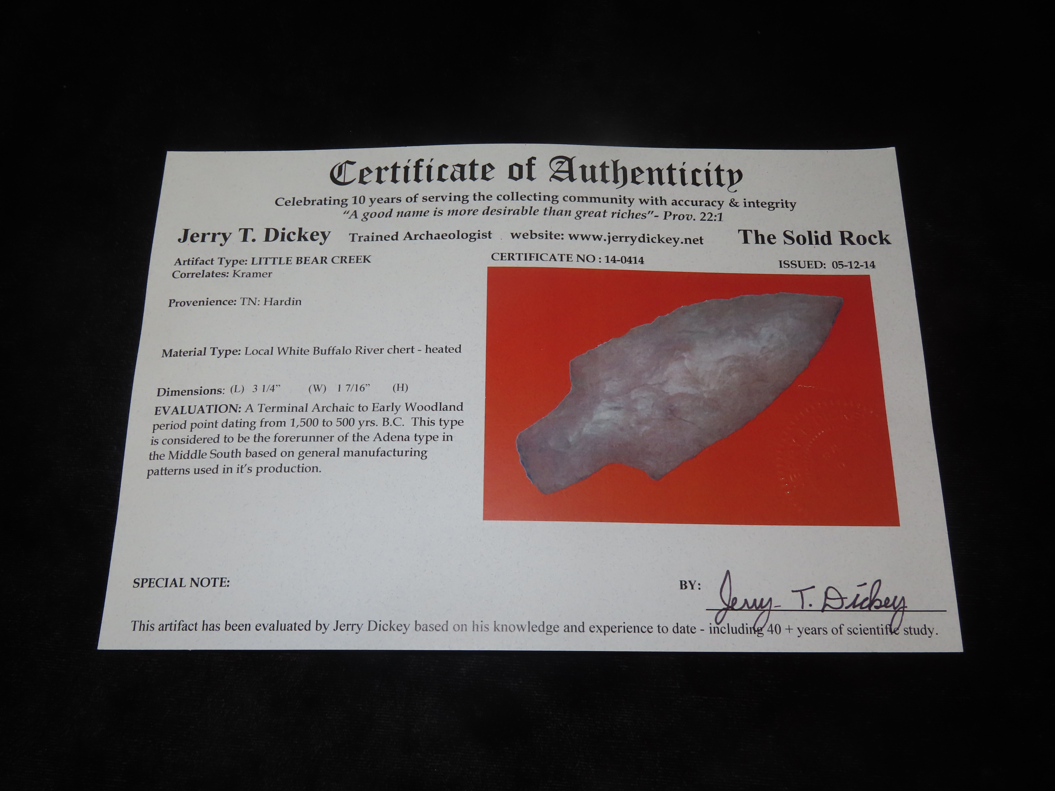 3 1/4” Little Bear Creek,Dickey COA,Found In Tennessee : Hardin