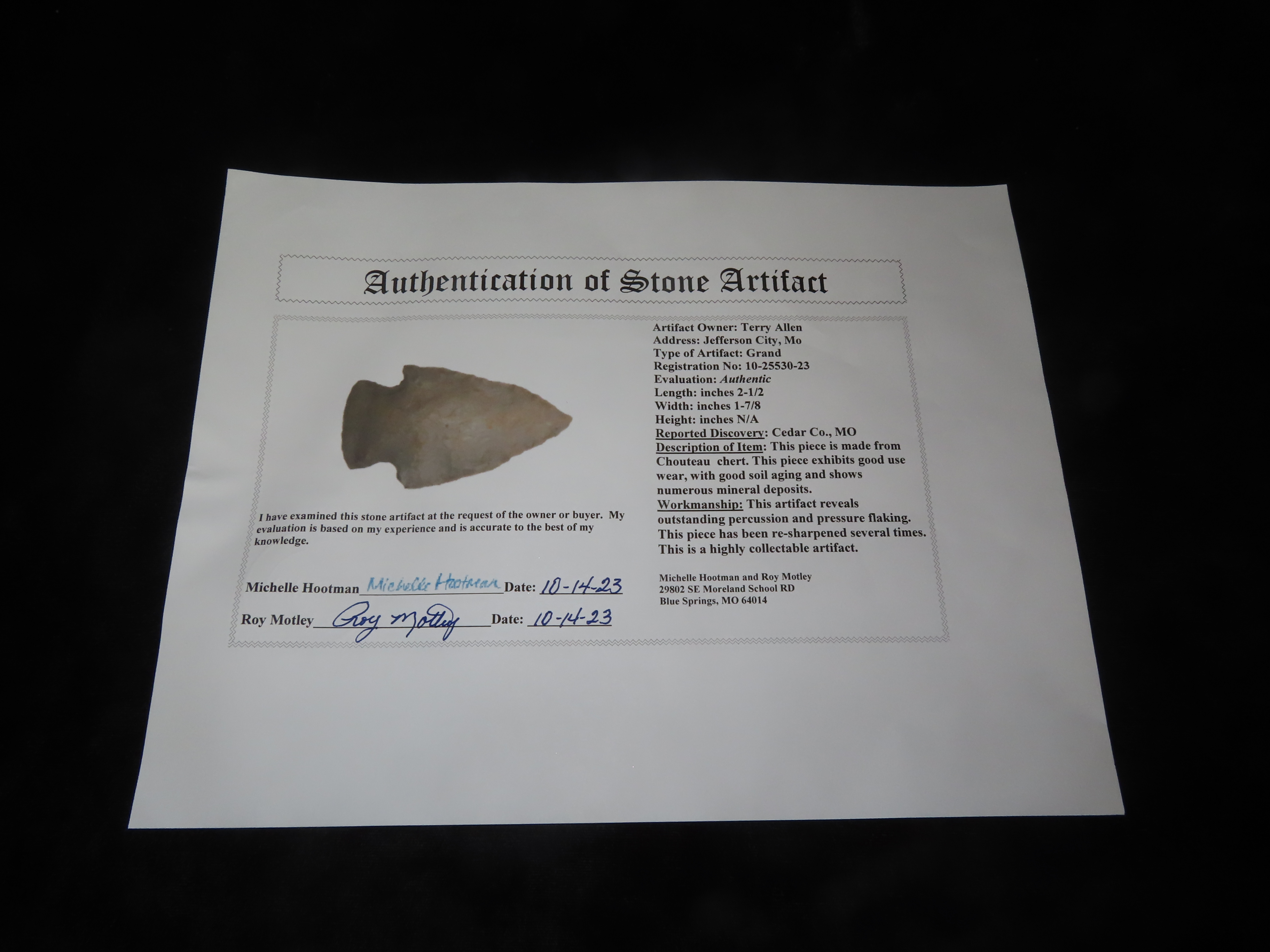 2 1/2” Grand,Motley COA,Found In Cedar Co,Missouri