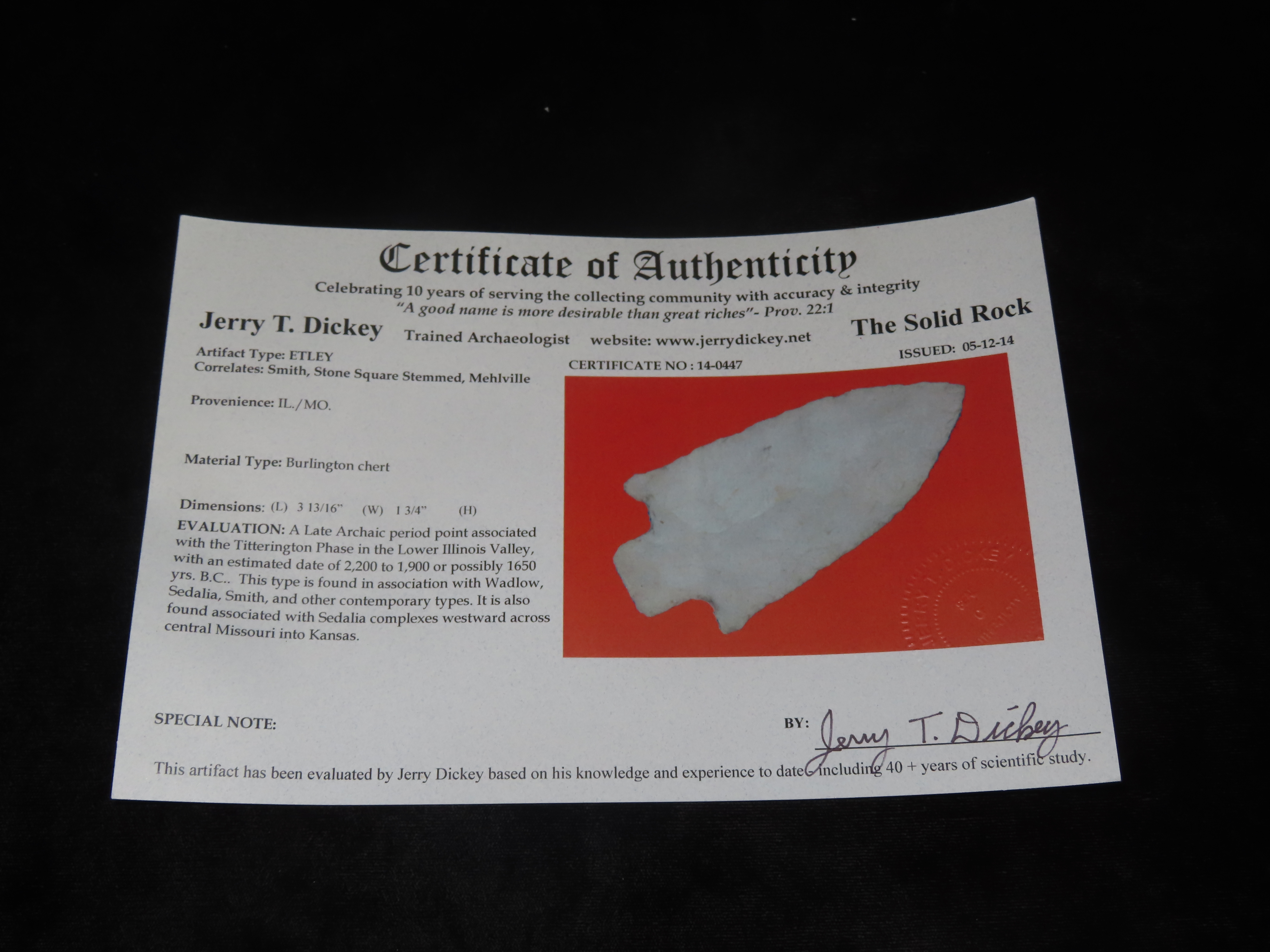 3 13/16″ Etley, Dickey COA, Illinois/Missouri