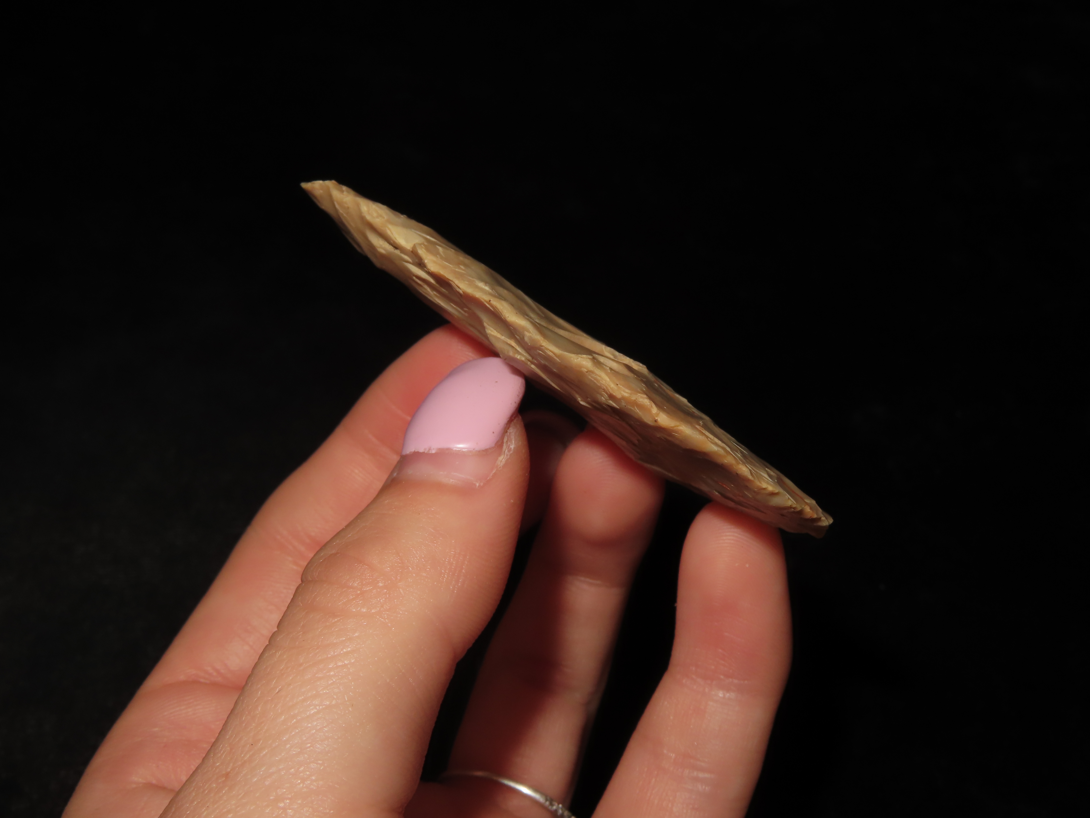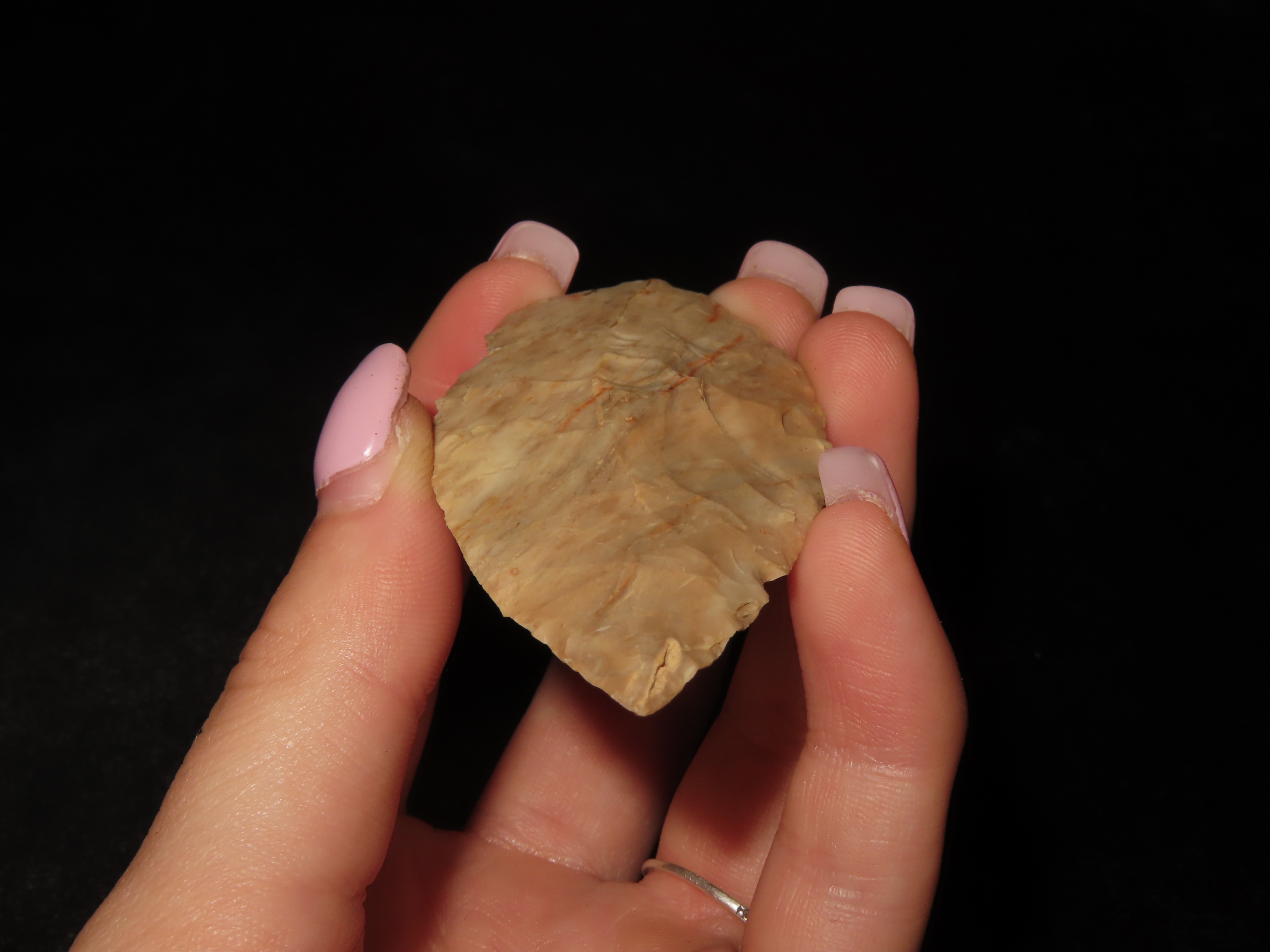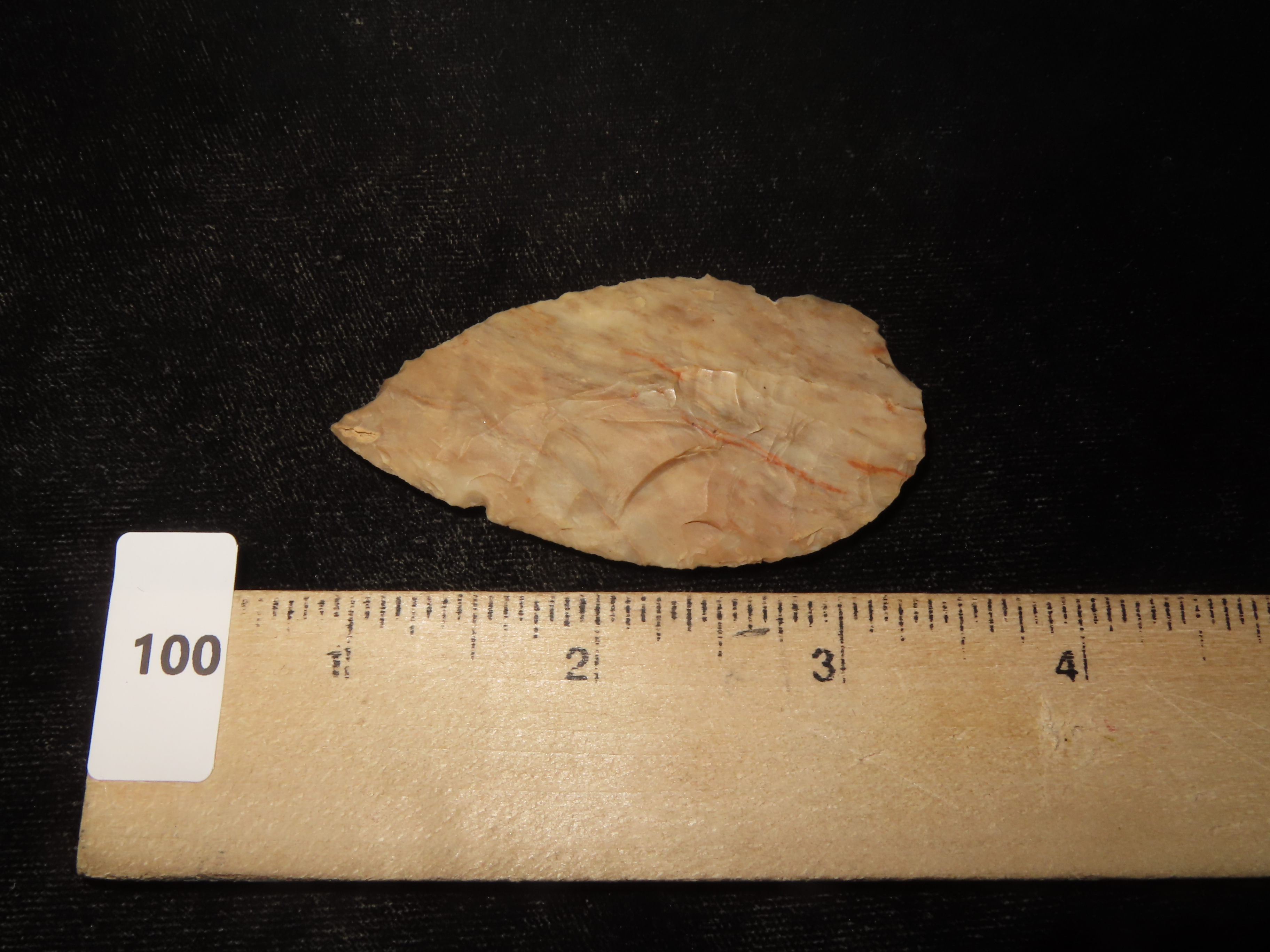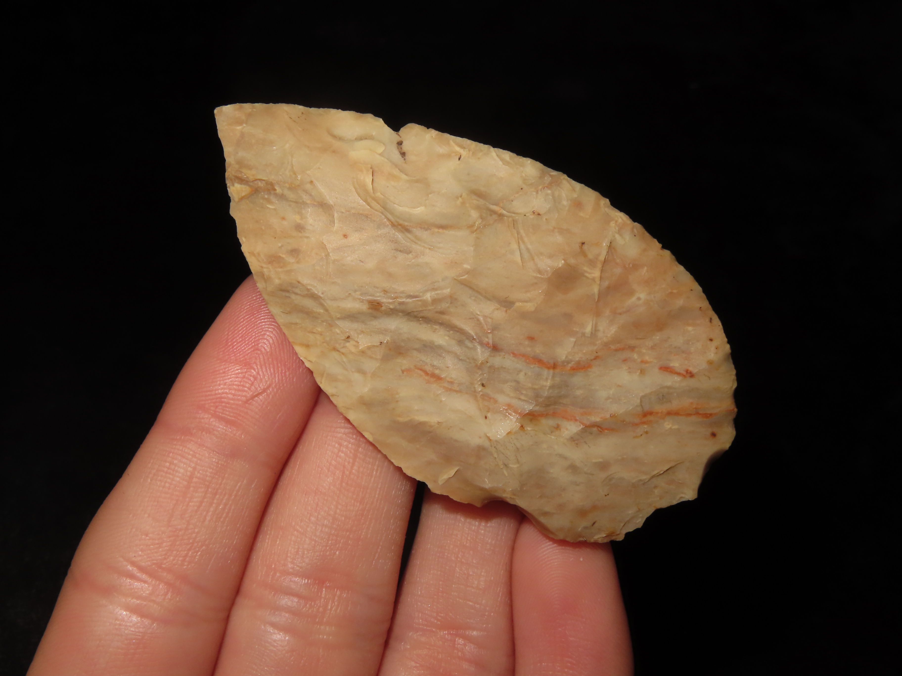 2 9/16″ Nodena Leaf Blade, Gorgeous Color, Minor Edge Dings, Ex David Elwell Collection