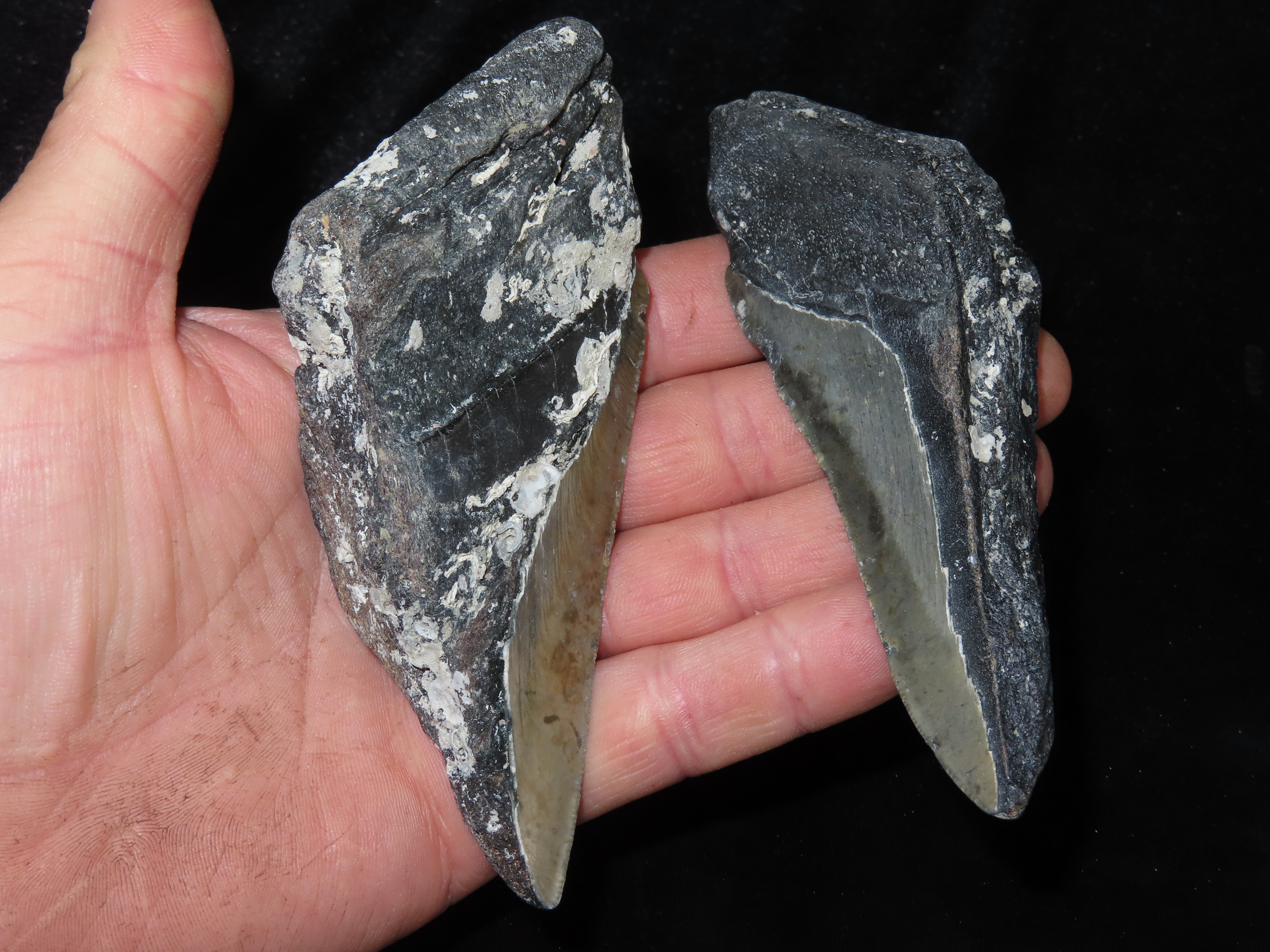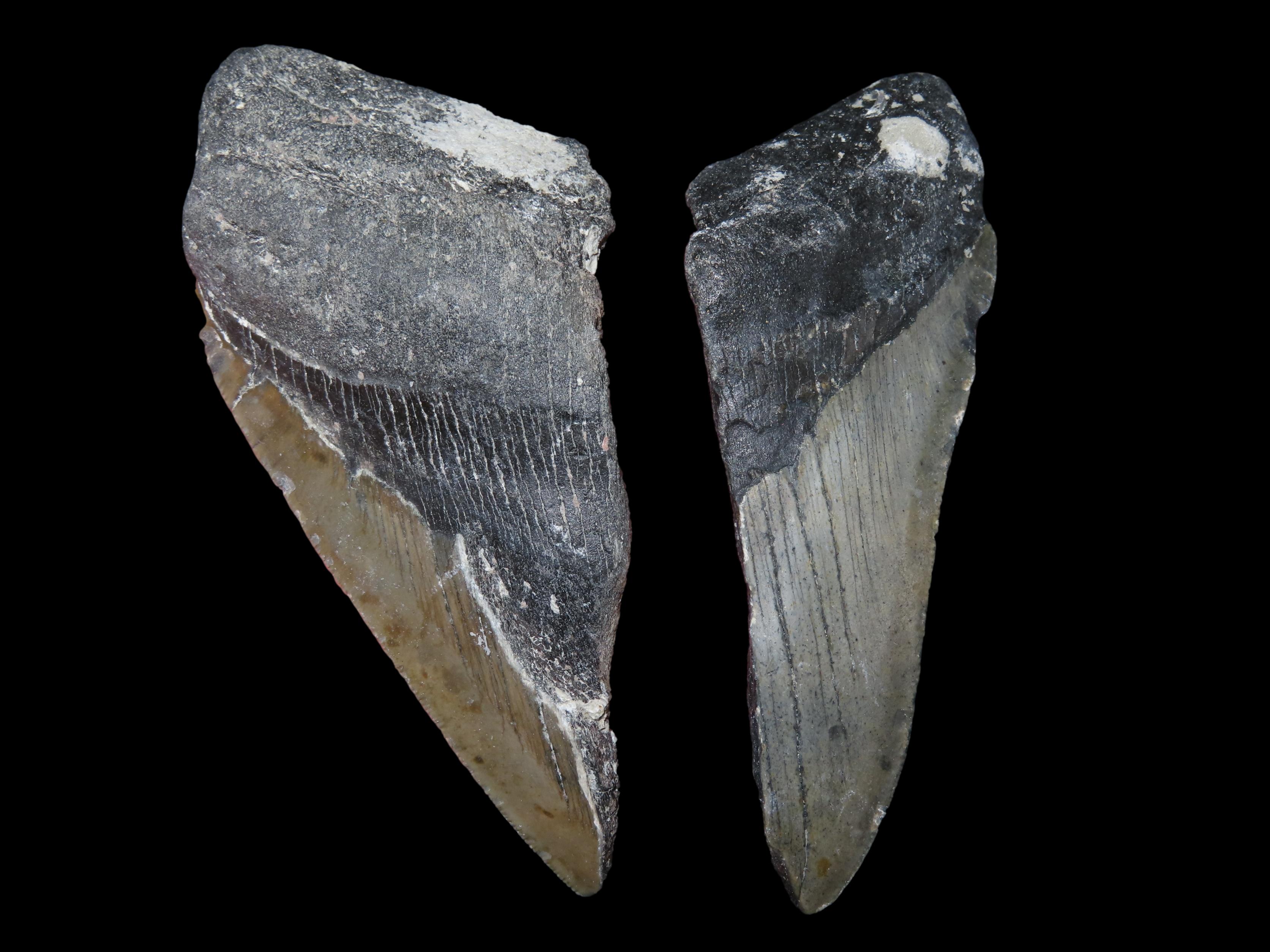 Lot of 2 Fossilized Megalodon Shark Tooth Halves, Florida