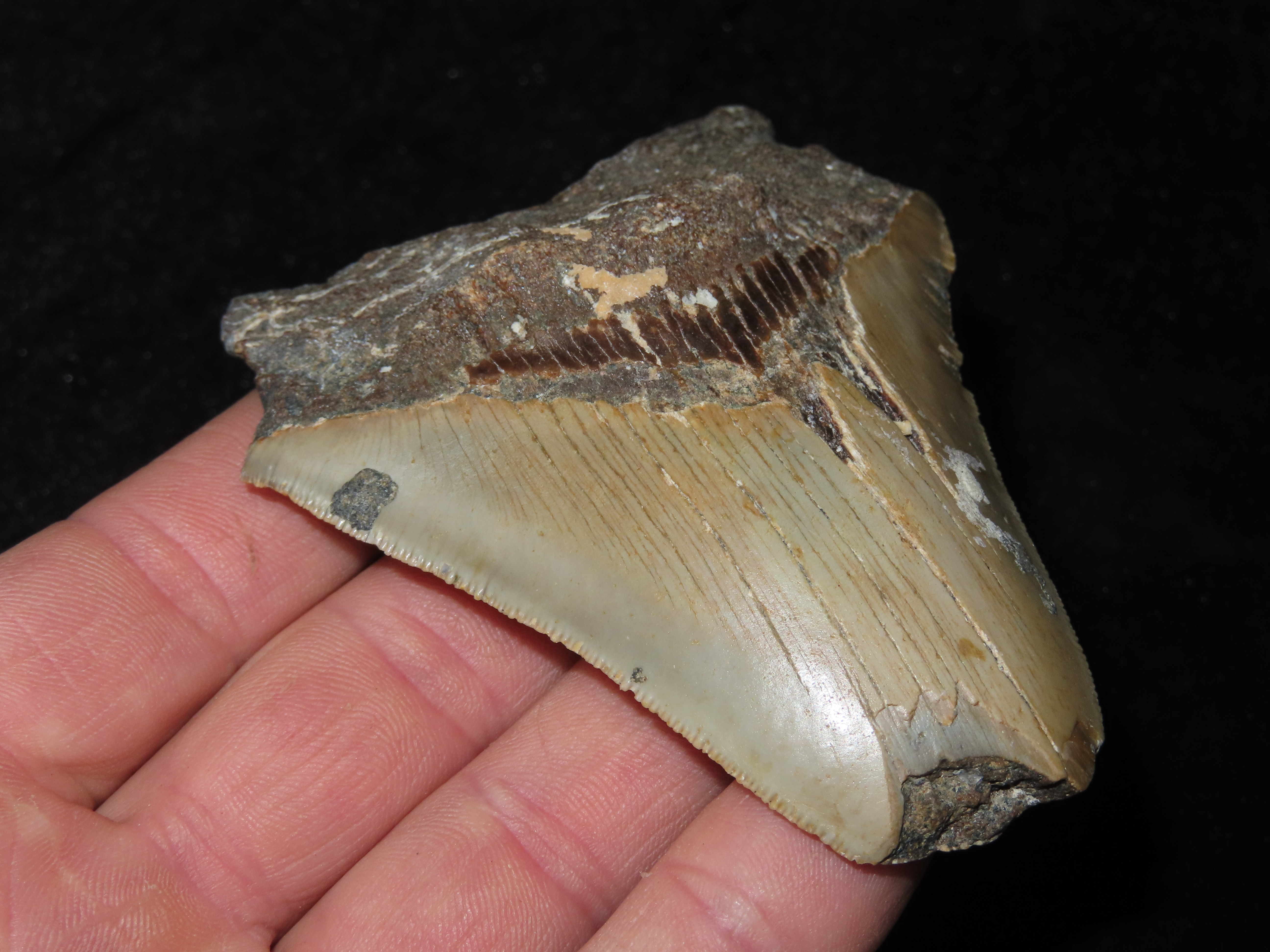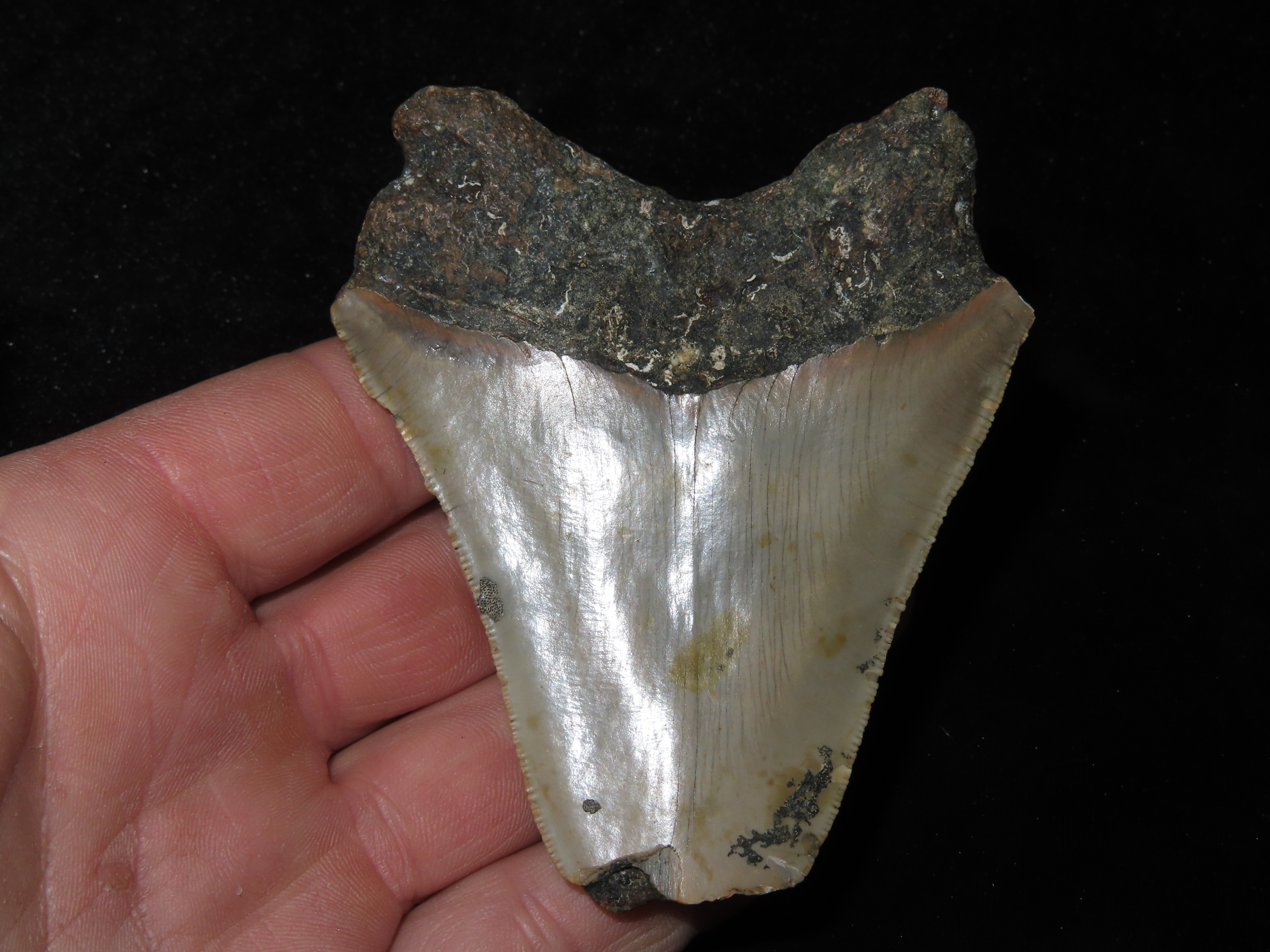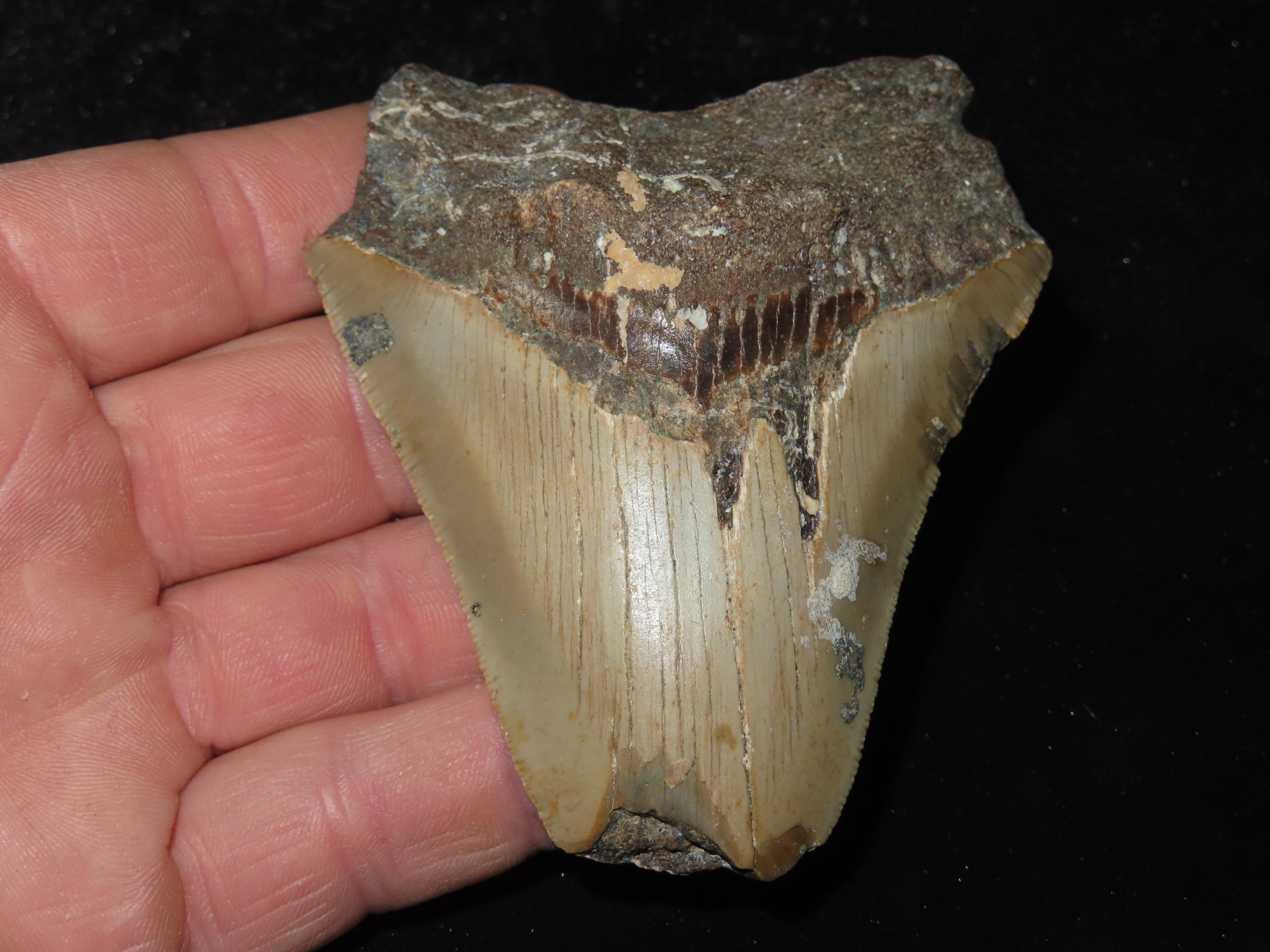 3 5/8″ Fossilized Megalodon Shark Tooth, FL