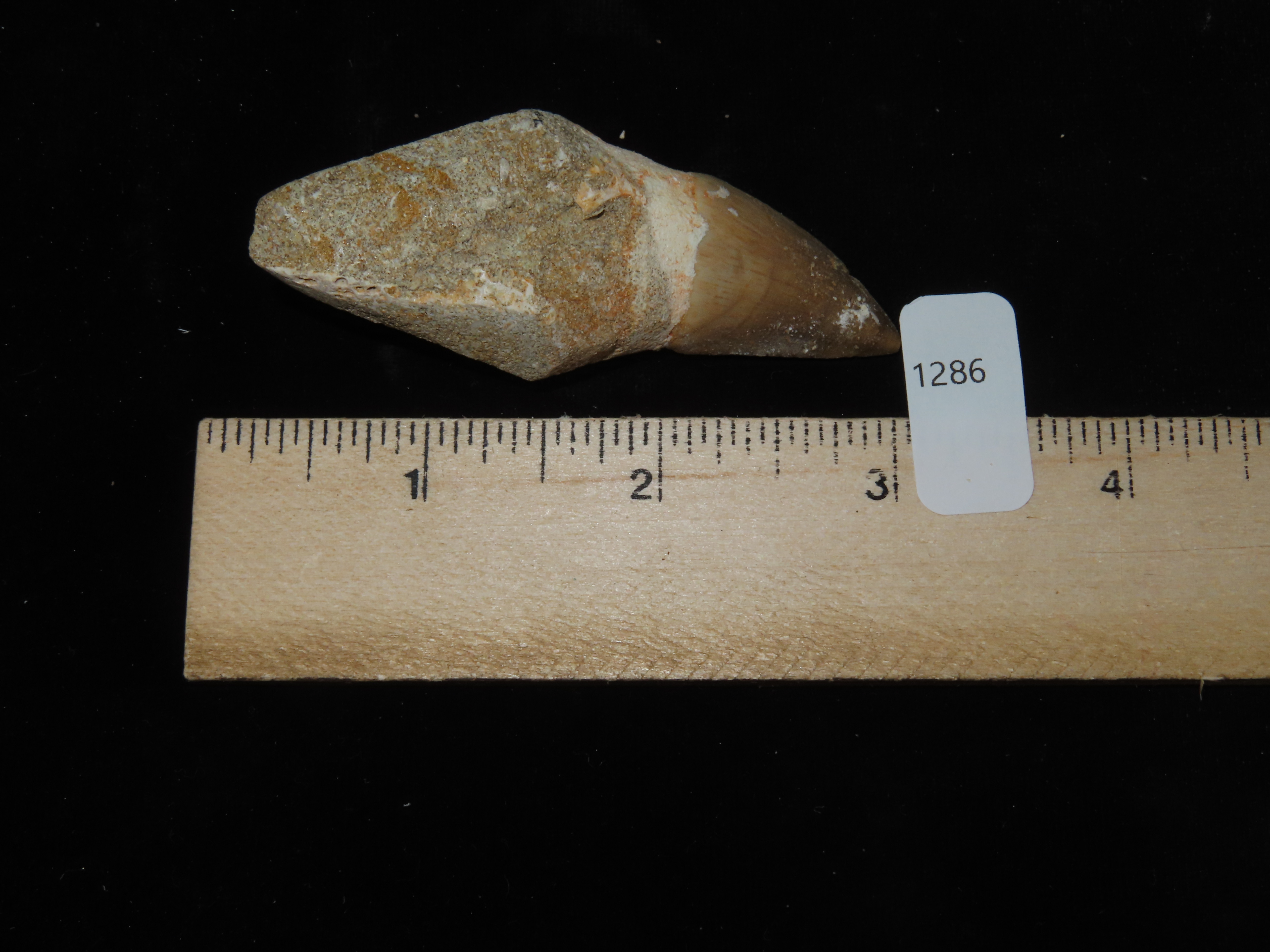 2 3/4″ Mosasaurus Dinosaur Tooth, 66 Million Years Old, Morocco