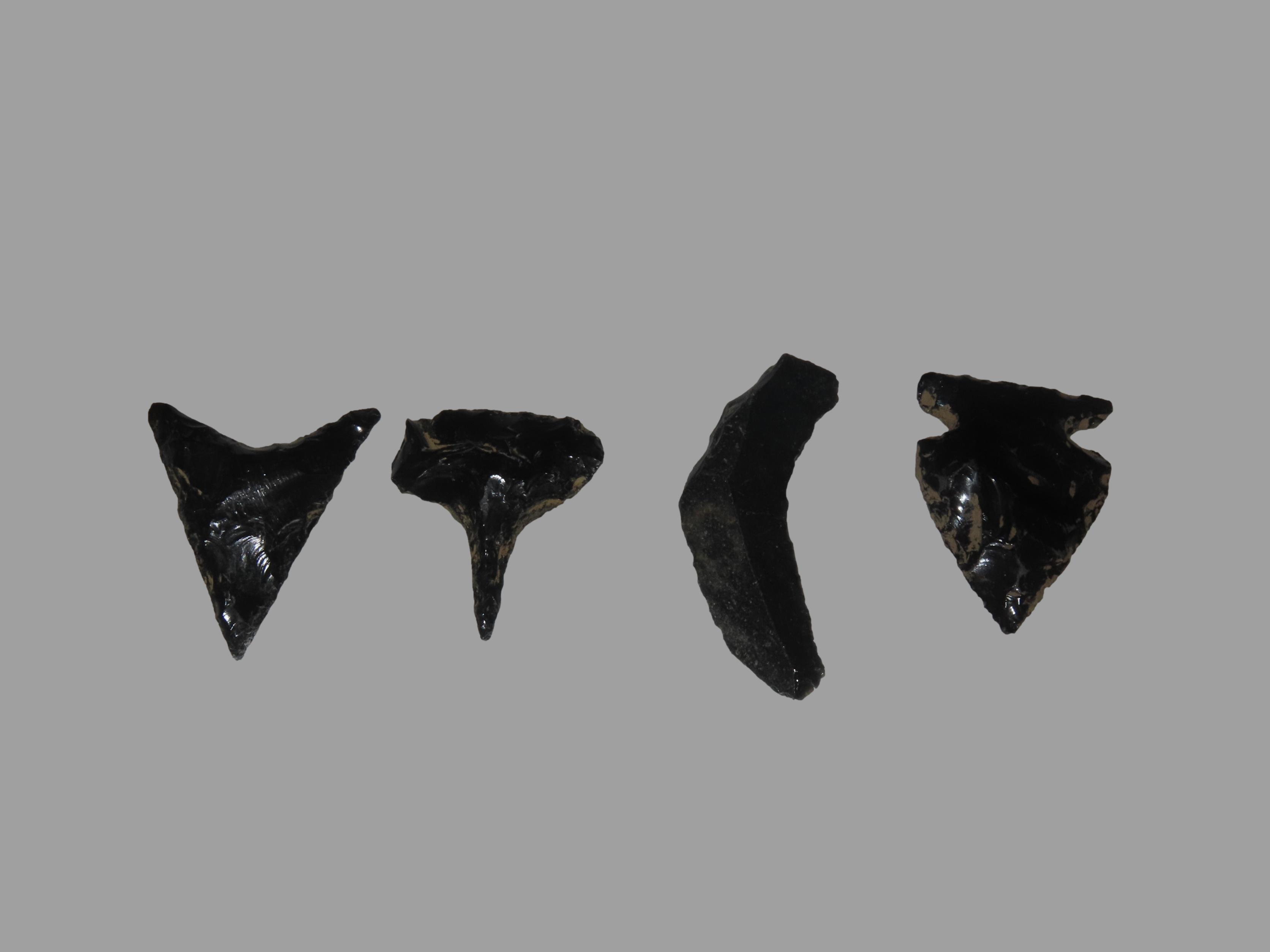 Group of 4 Obsidian Pts., found in Mexico