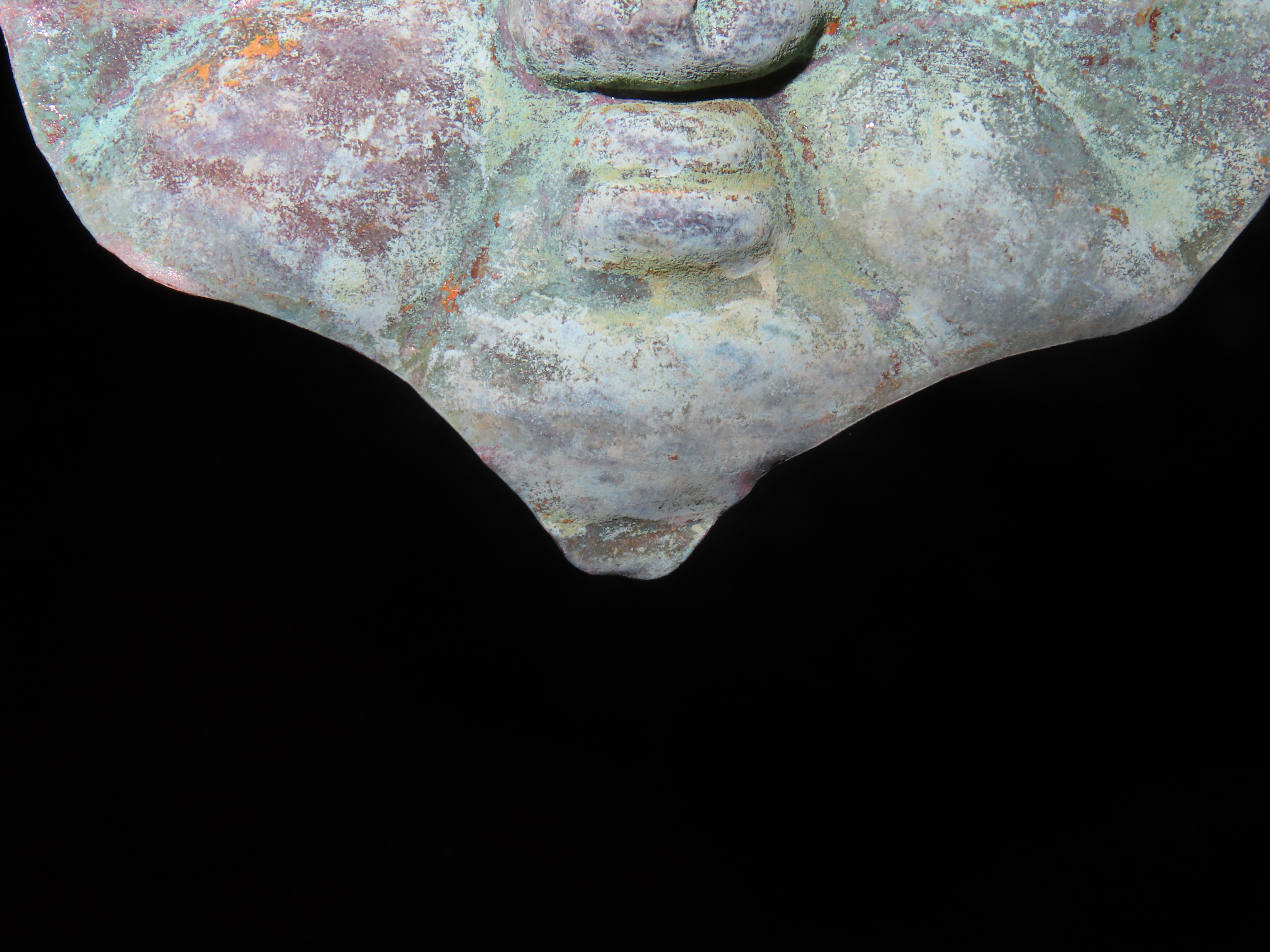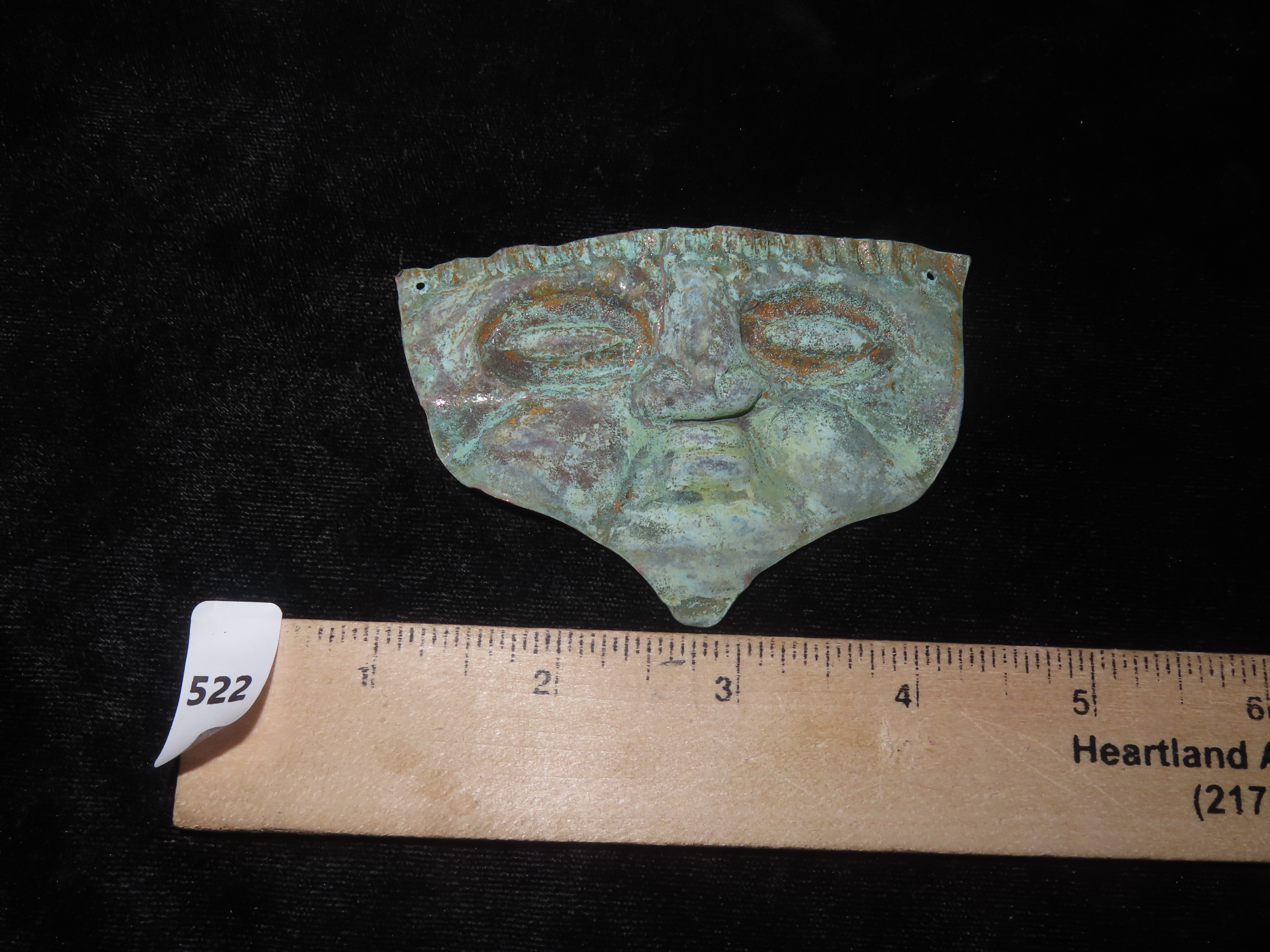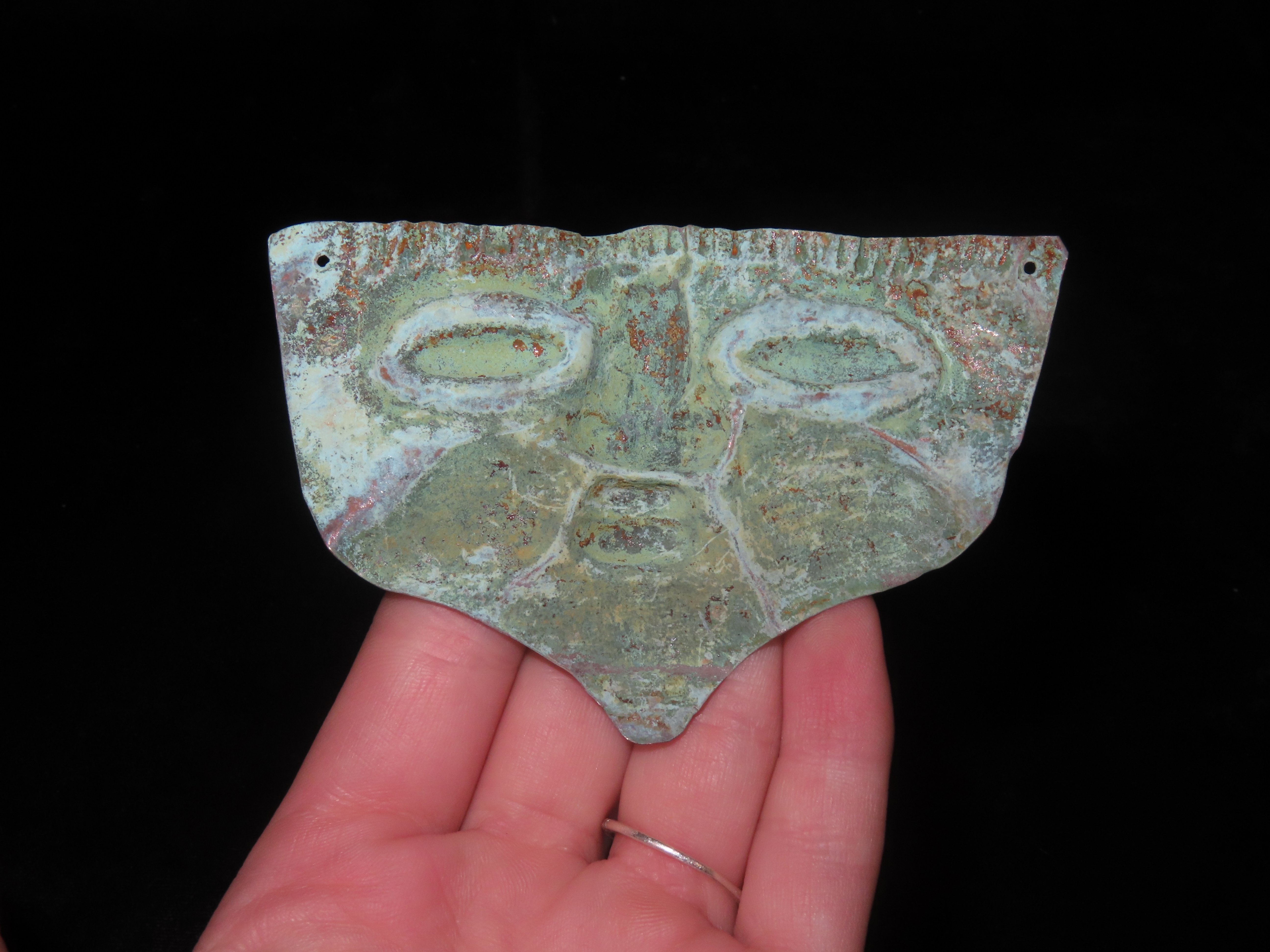 2 1/4″ Pre- Columbian Copper Effigy Pendant, Motley COA, found in South America, Ex Steve Barras Estate