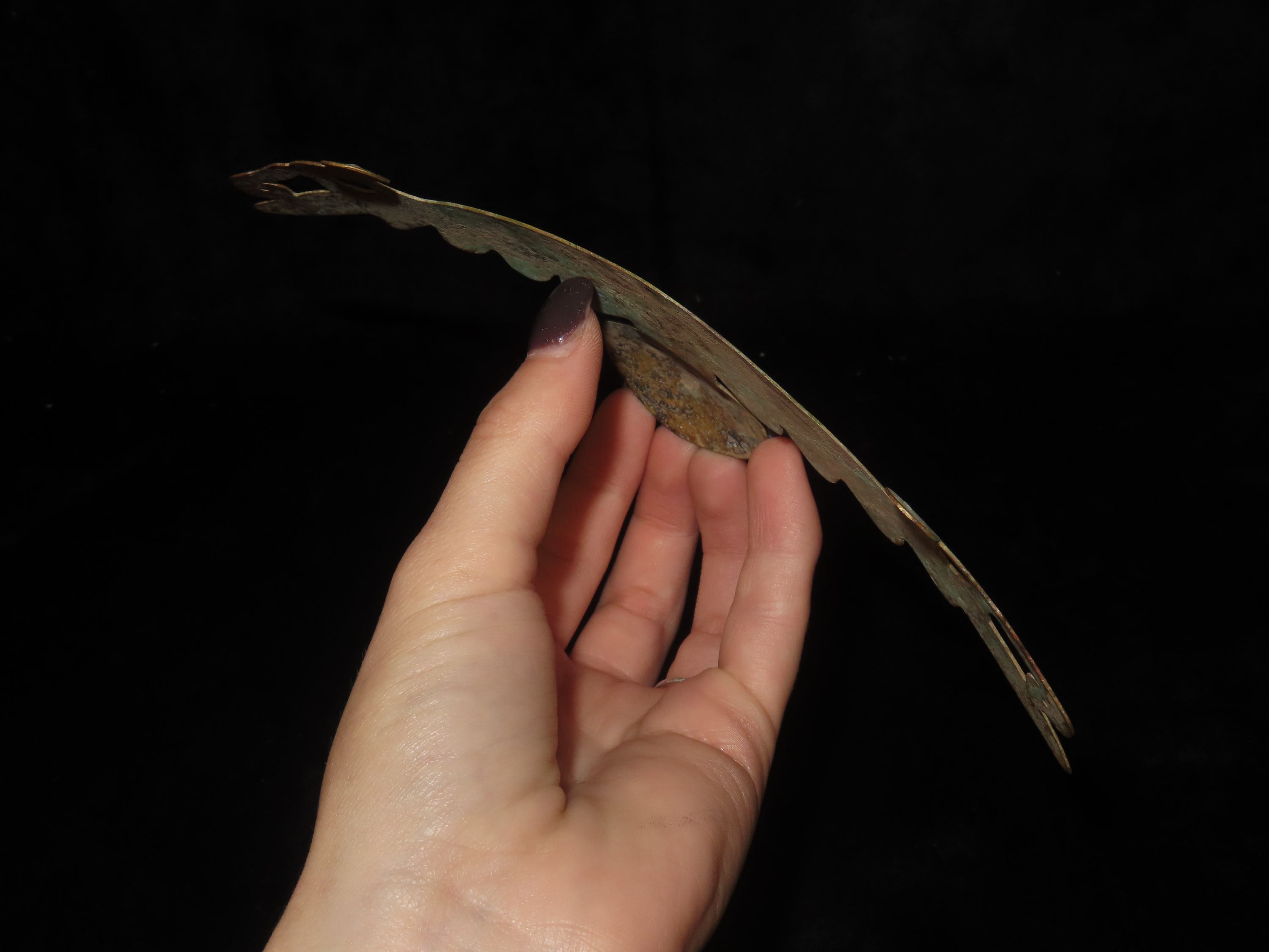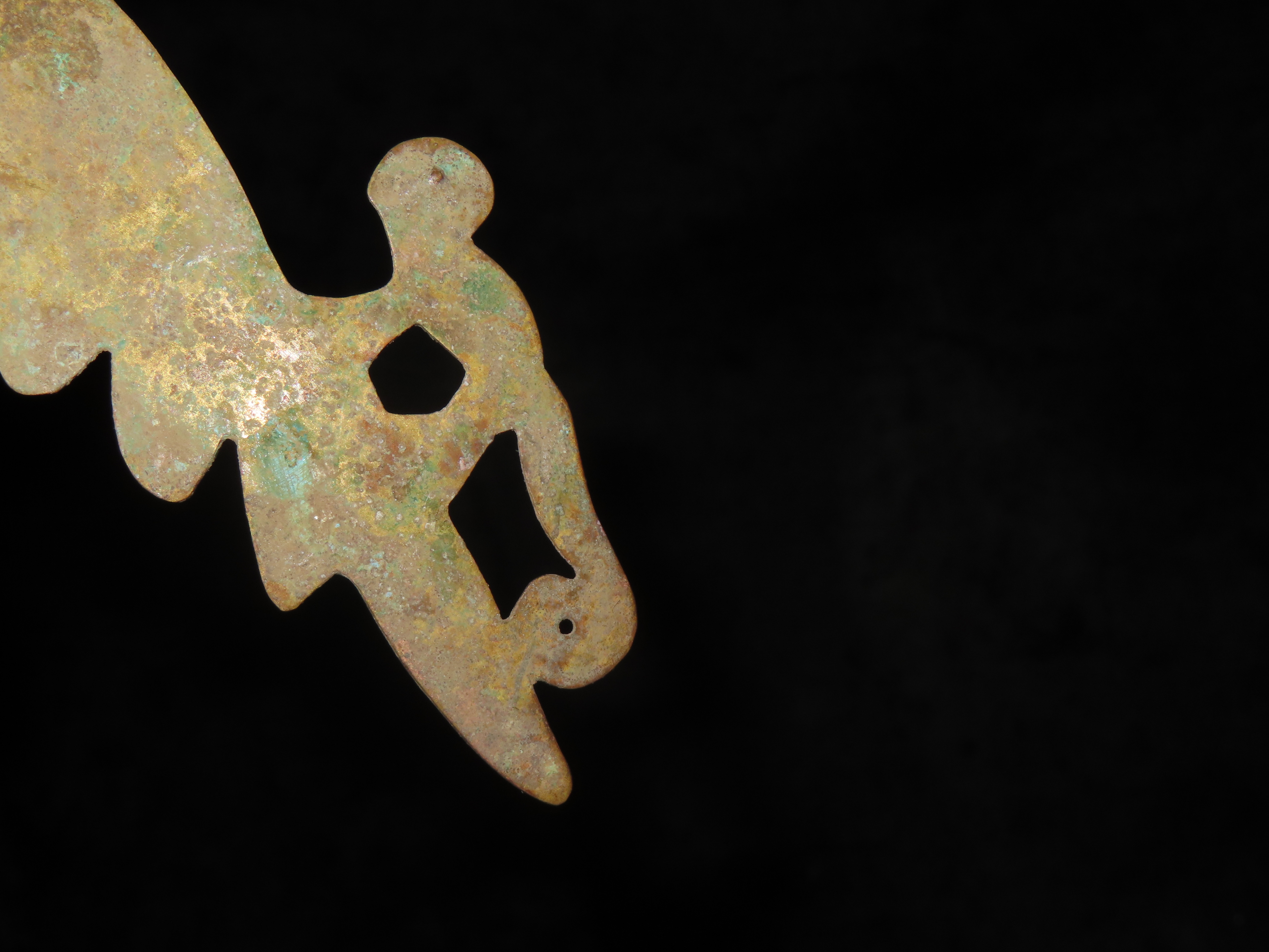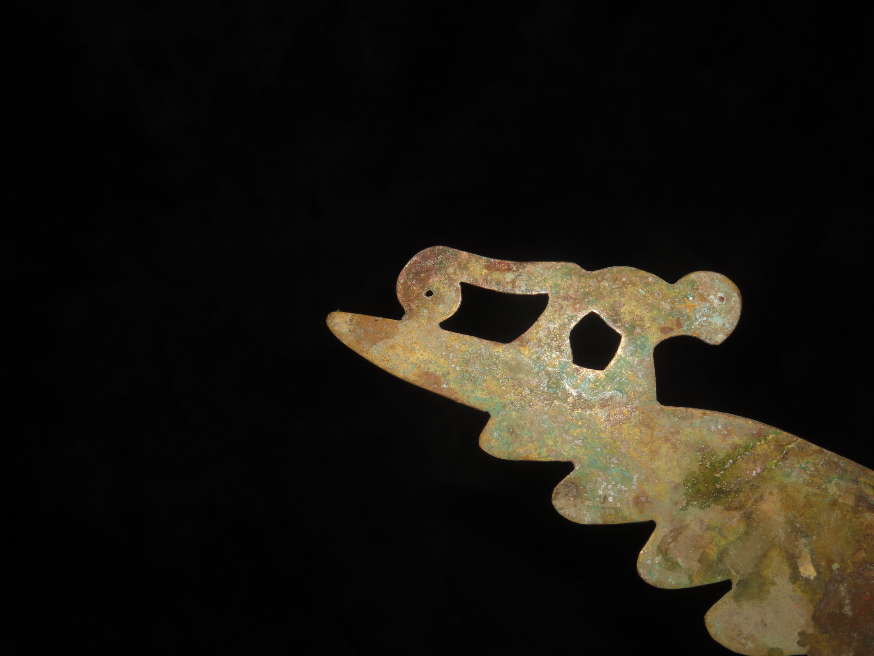 7 3/8″ Pre-Columbian Copper Effigy Pendant/Breast Plate Ornament, Motley COA, found in South America, Ex Steve Barras Estate