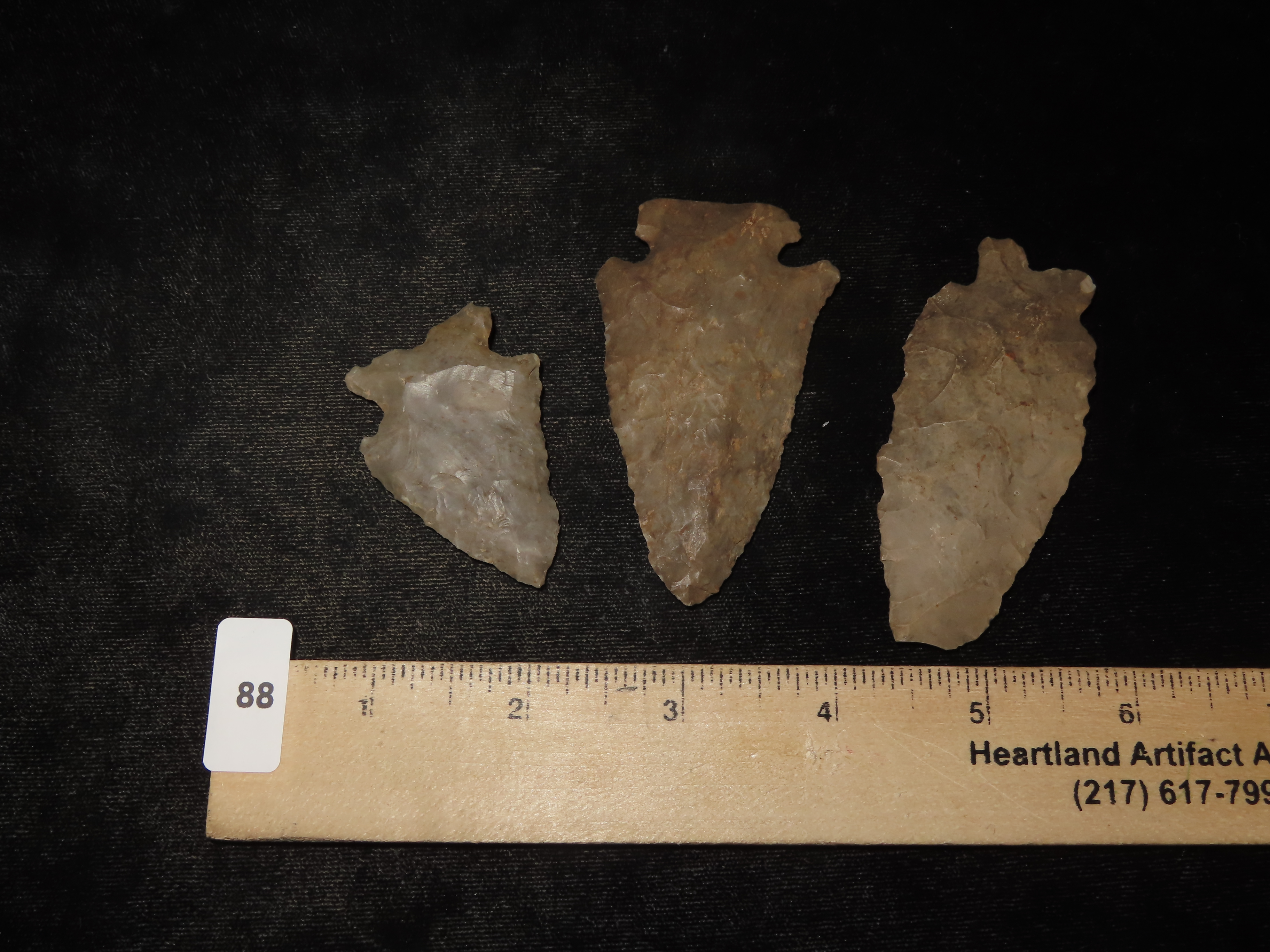 Lot of 3 Arrowheads, Ex David Elwell Collection