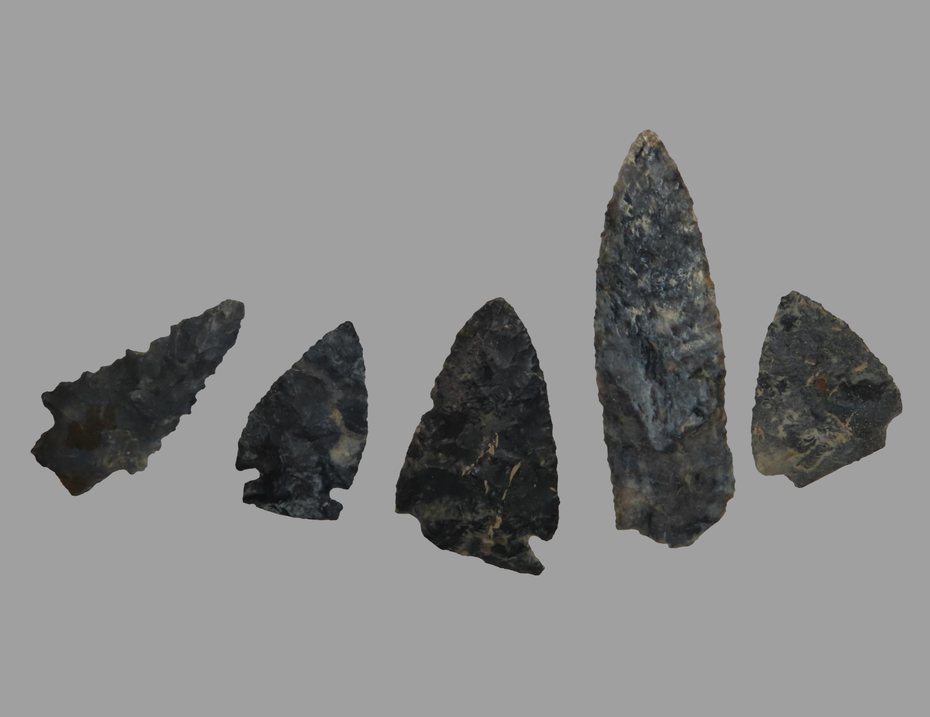 Lot of 5 Common Arrowheads, Ex David Elwell Collection