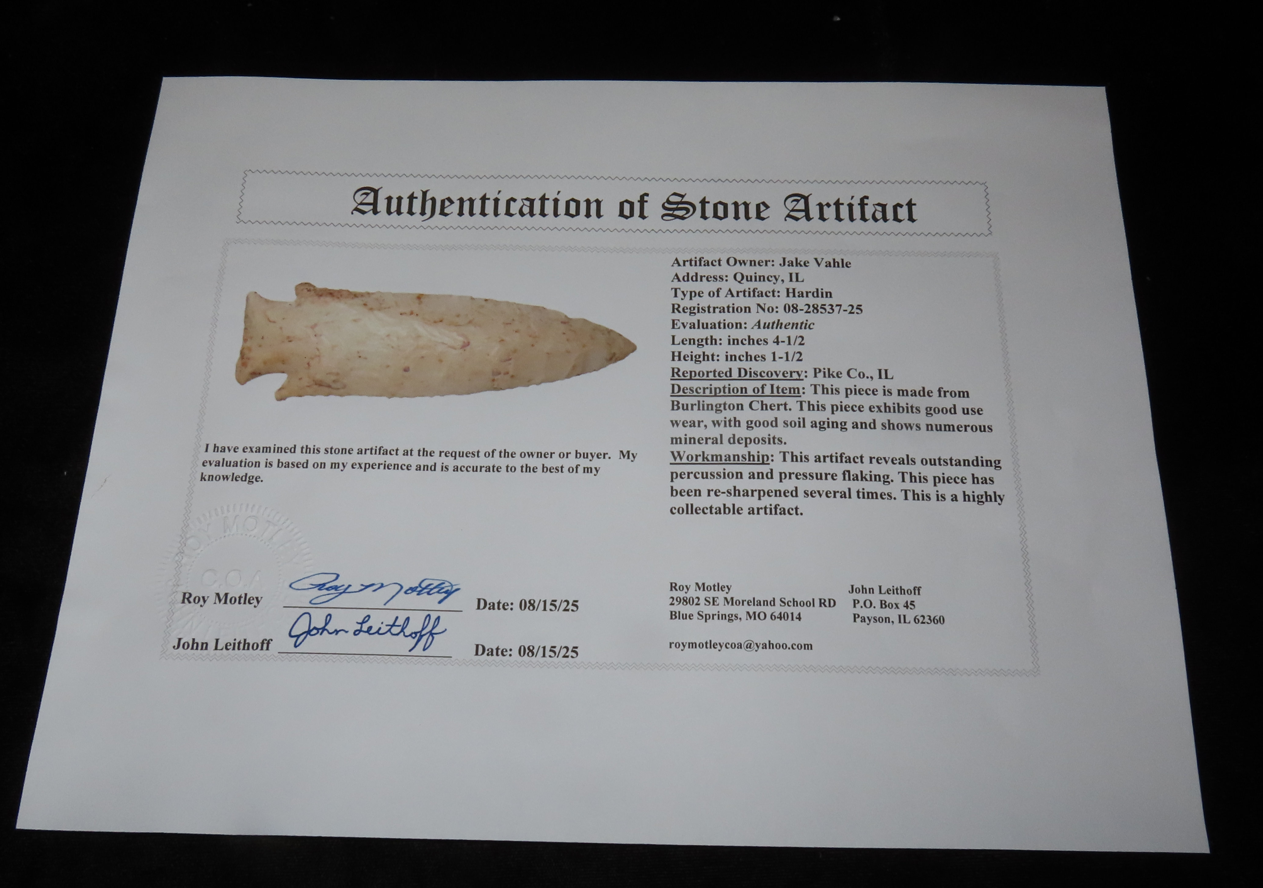 4 1/2″ Hardin, Motley COA, found in Pike Co., Illinois