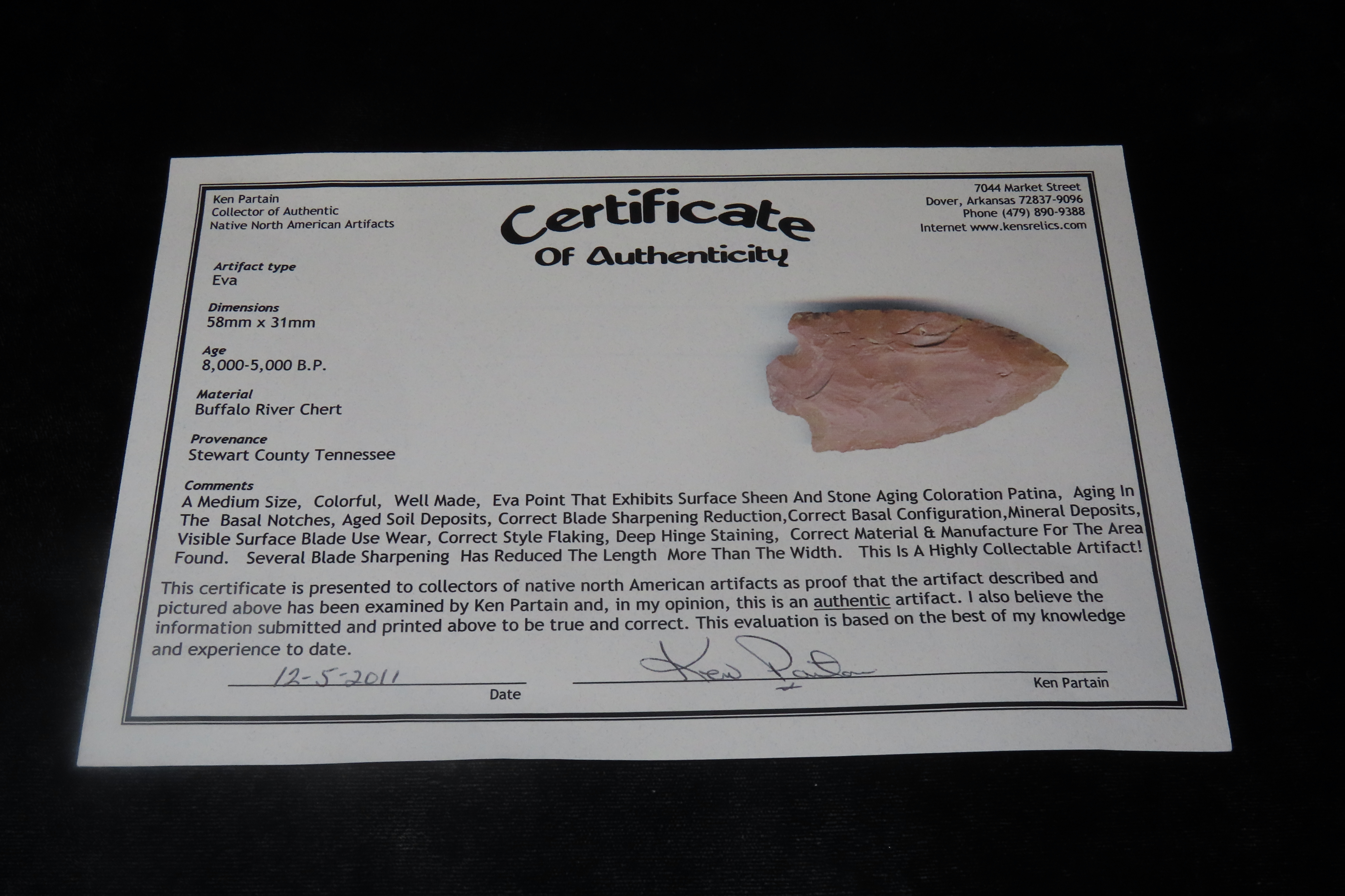 2 5/16" X 1 3/16" Eva, Partain COA, found in Stewart Co., Tennessee, Ex James Hinson Collection