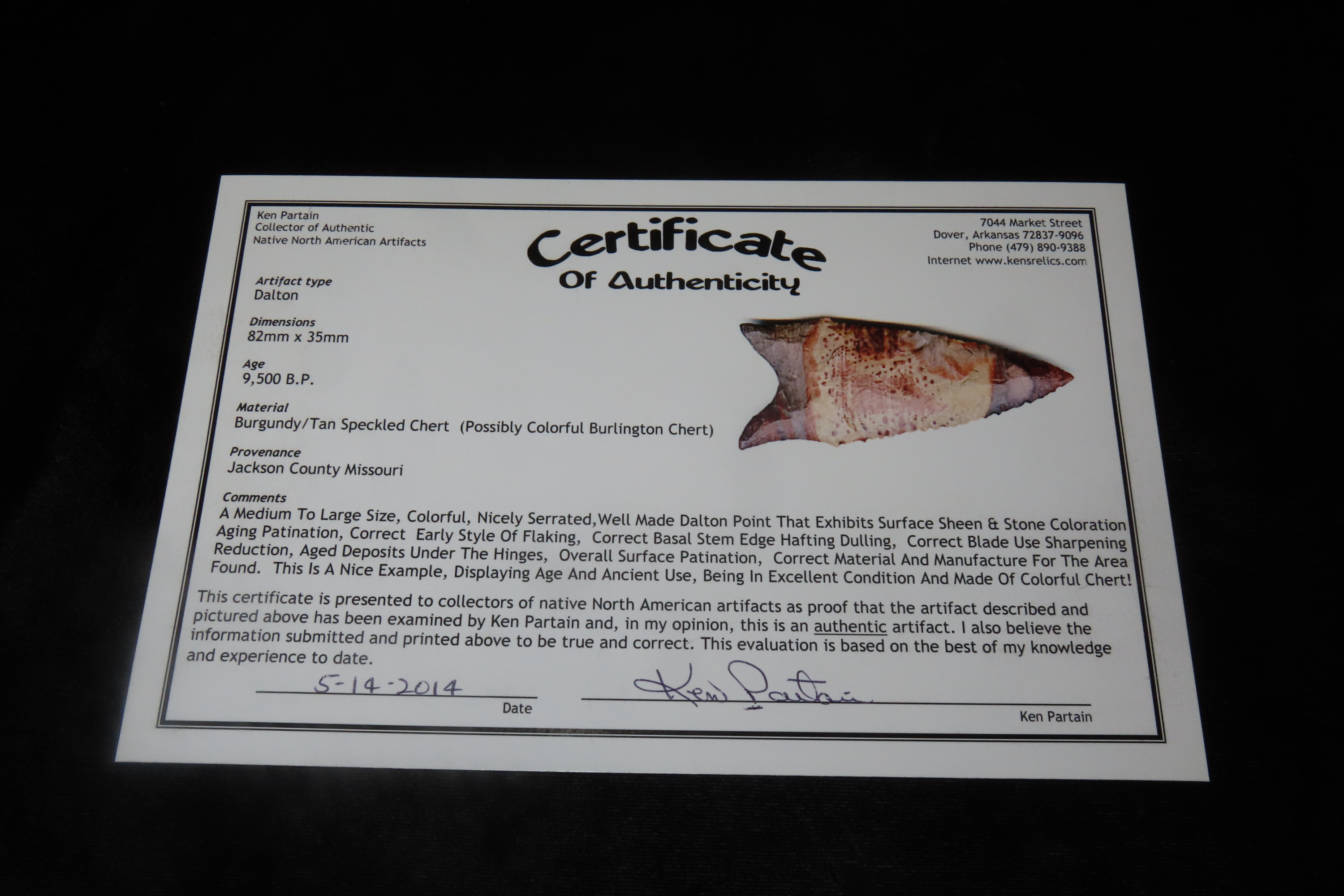 3 1/3″ X 1 3/8″ Dalton, Partain COA, Extremely Colorful, found in Jackson Co., Missouri, Ex James Hinson Collection