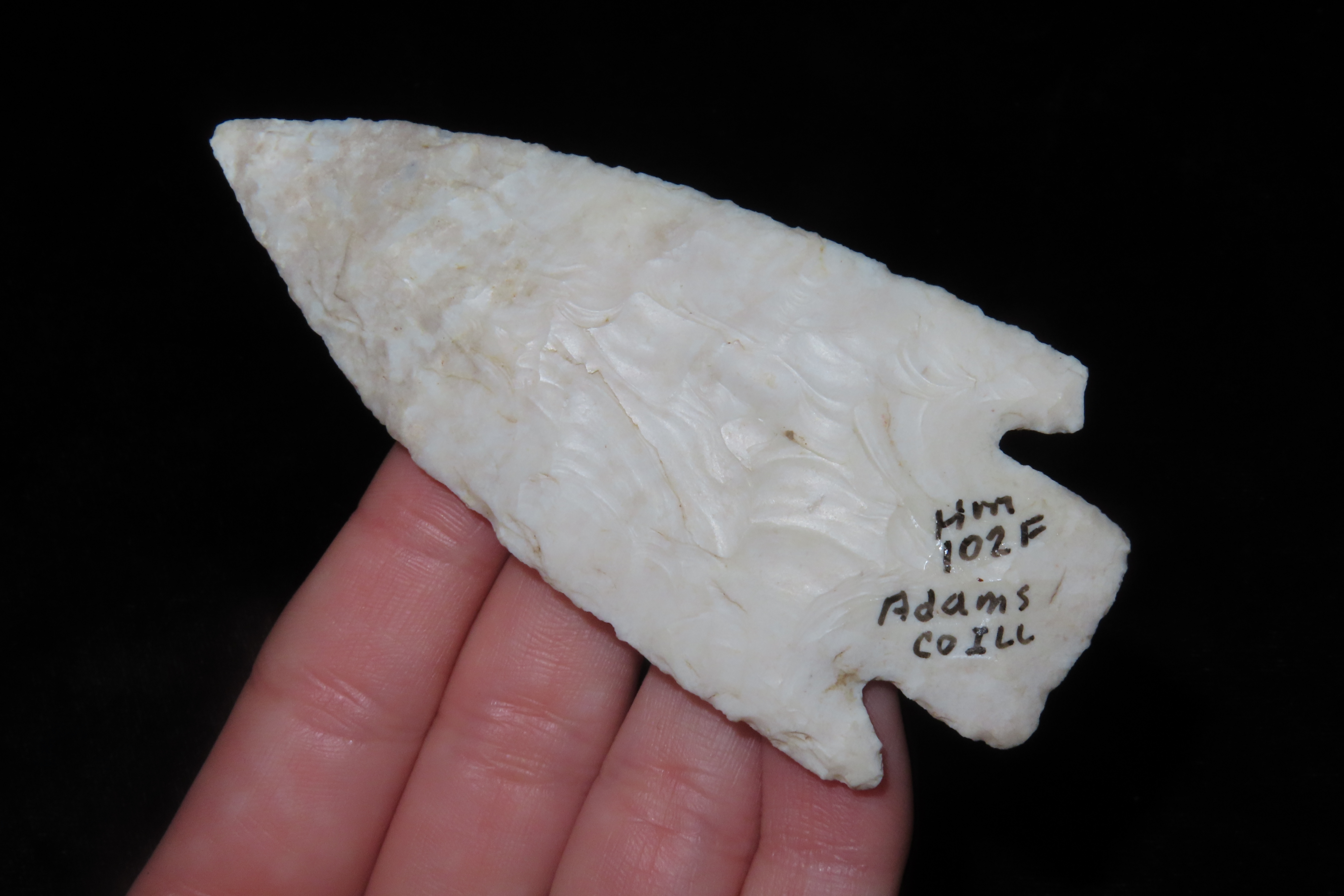 3 1/2″ x 1 5/8″ Kampsville, found in Adams Co., Illinois, Ex Herb Mangold Collection