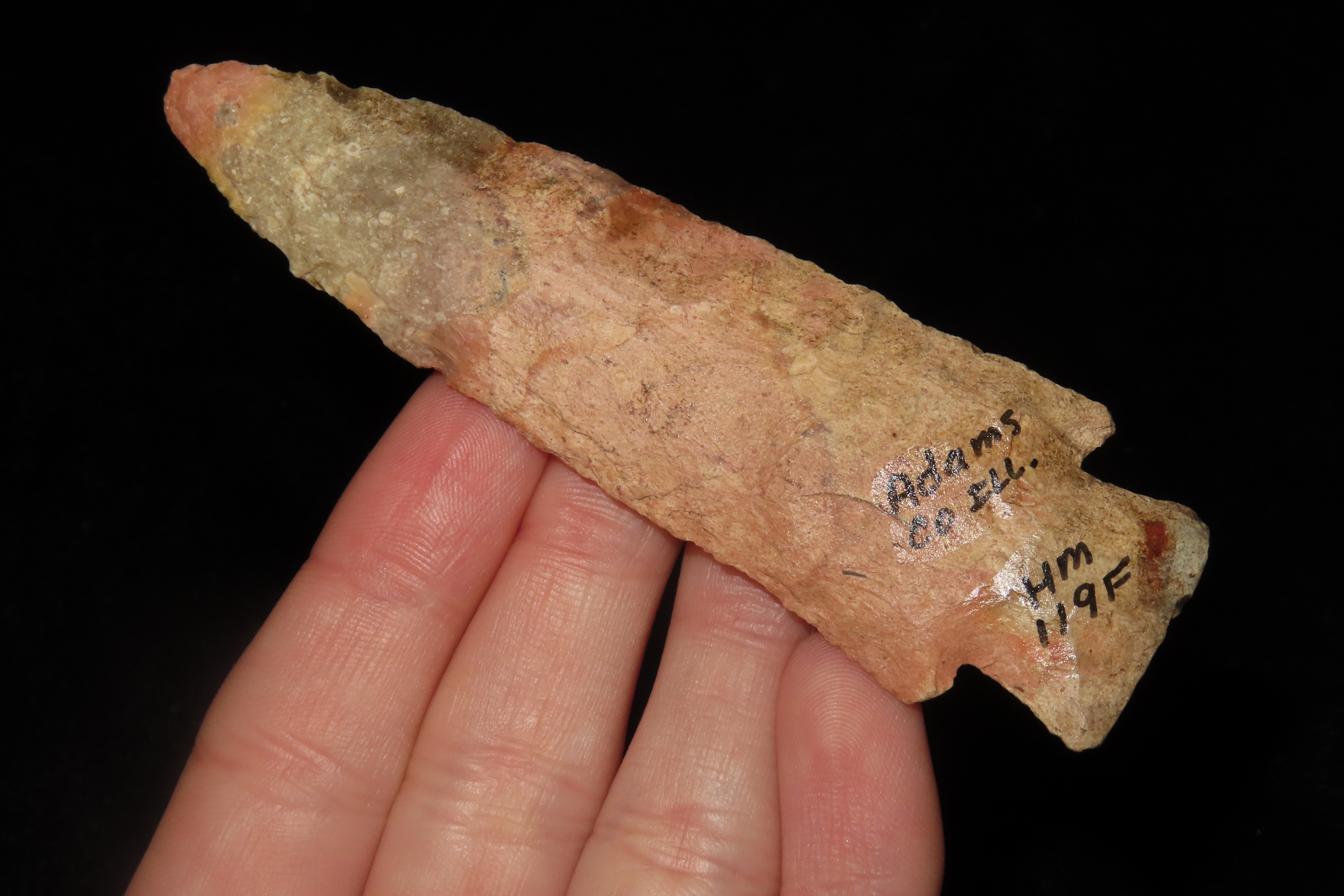 3 3/4″ x 1 1/8″ Hardin, found in Adams Co., Illinois, Ex Herb Mangold Collection