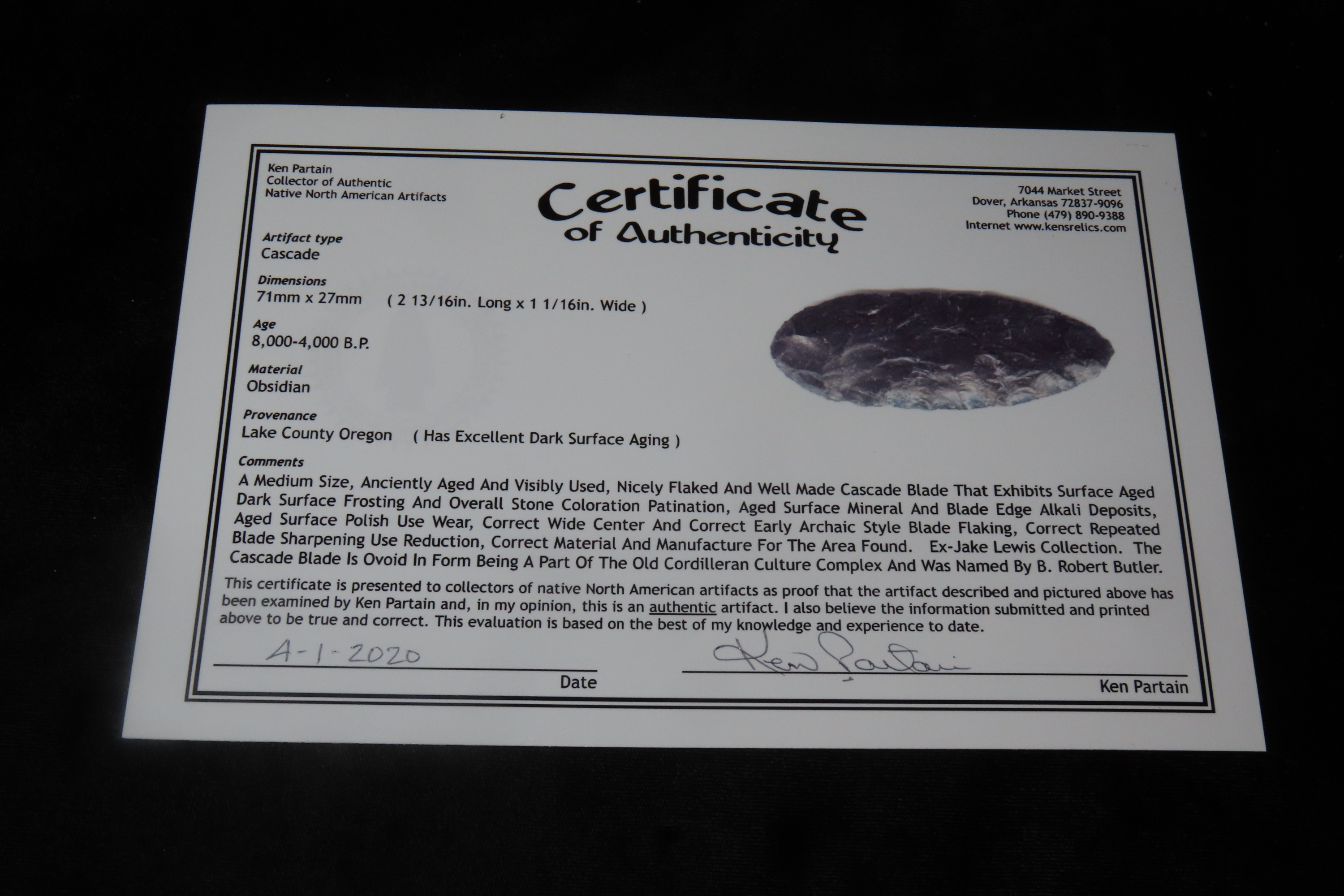 2 13/16″ x 1 1/16″ Cascade, Partain COA, Ex Jake Lewis Collection, Ex James Hinson Collection