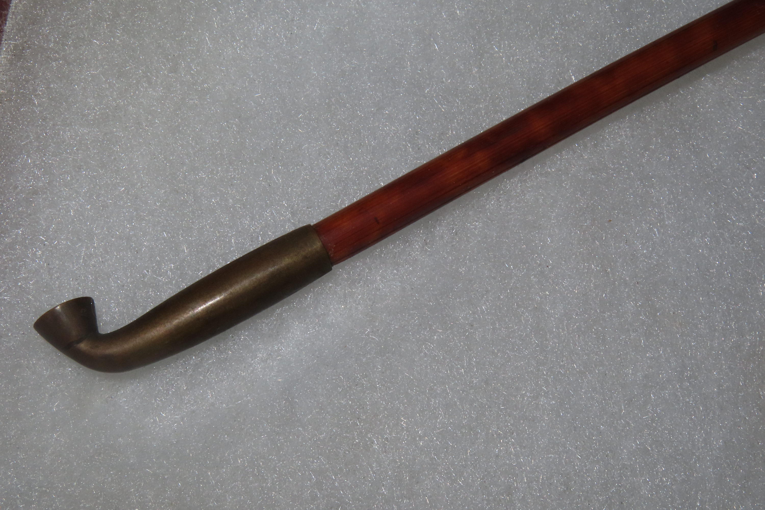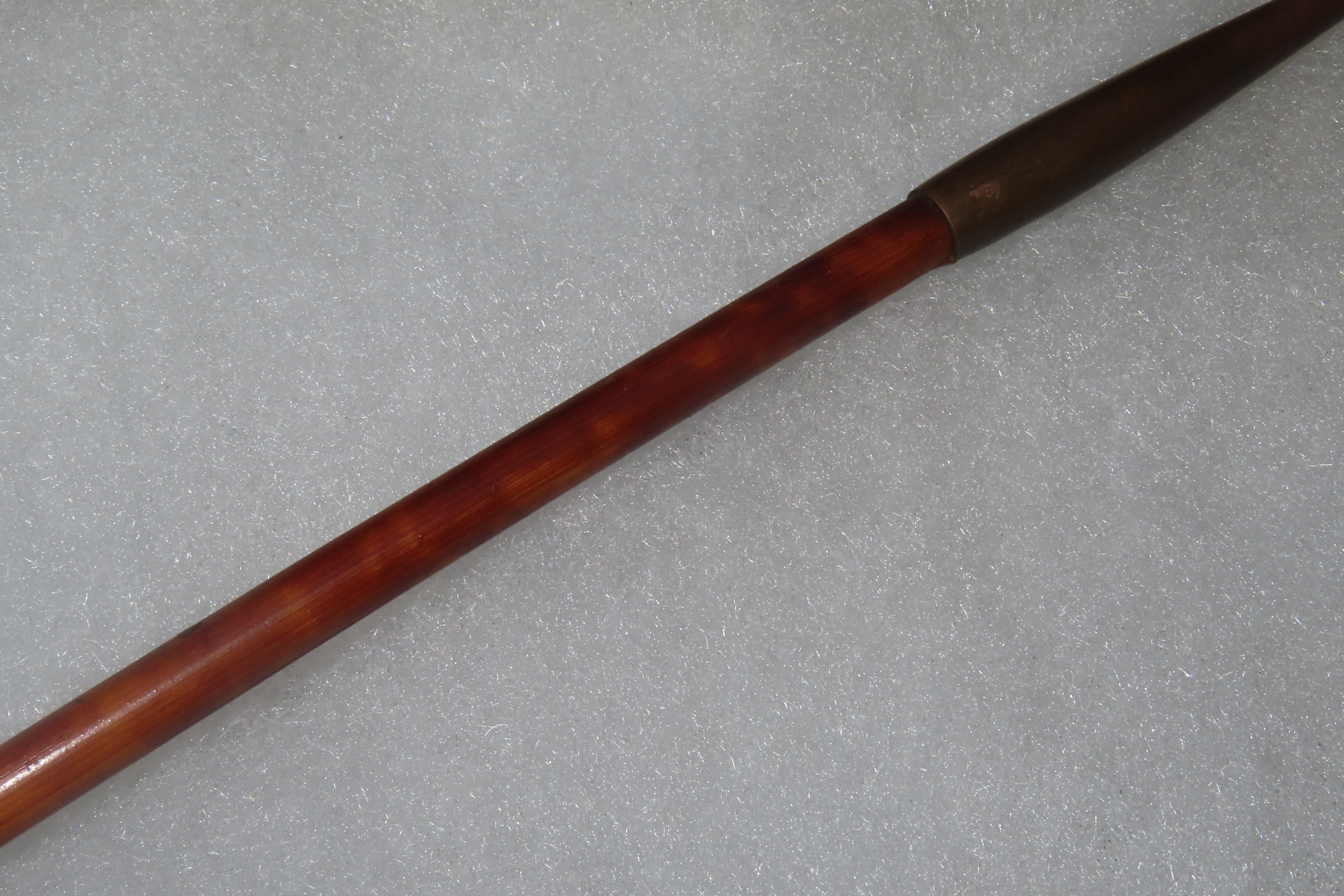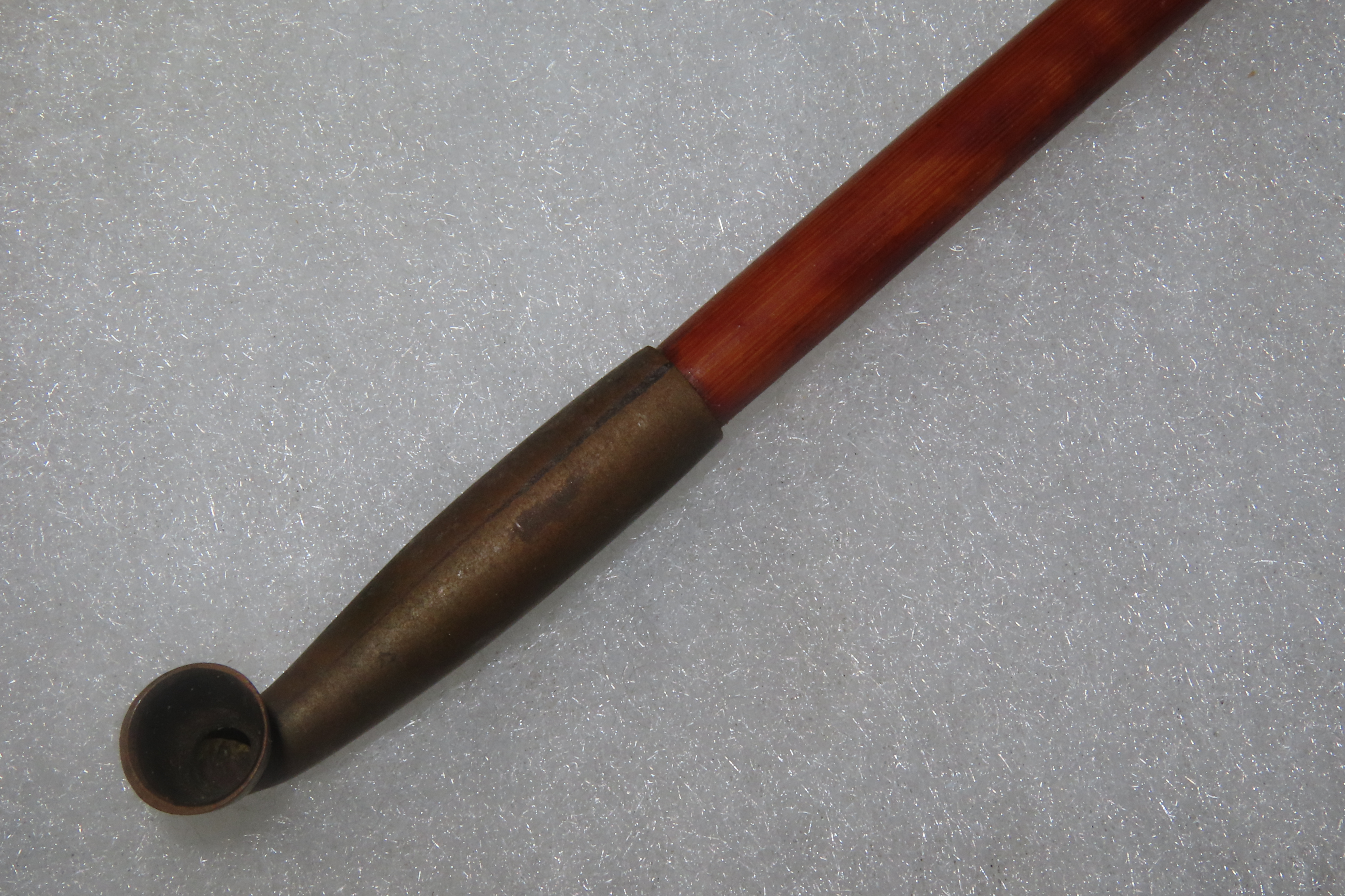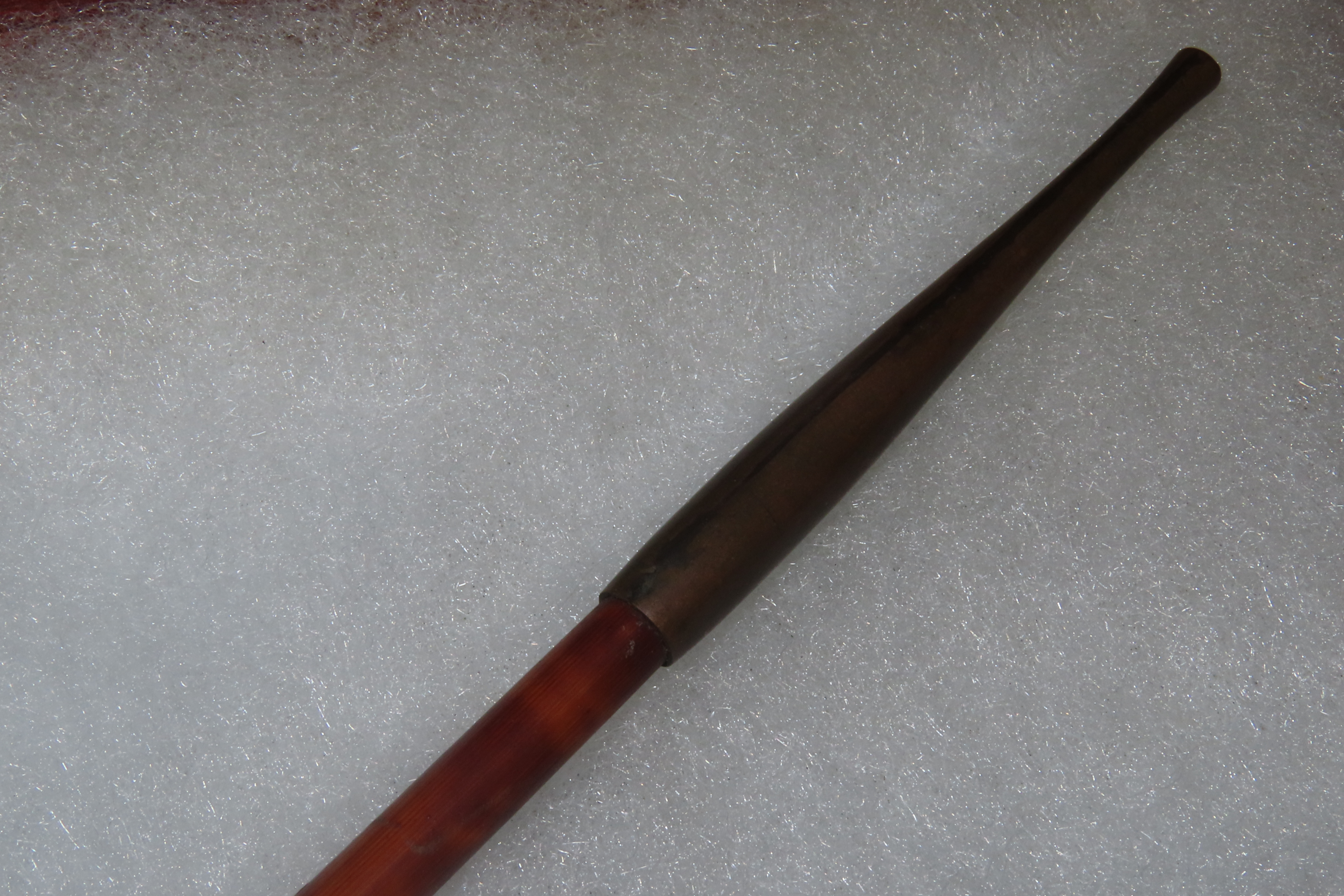 14 3/4″ x 1/4″ Reed-Stemmed Pipe and 2 1/2″ x 3/4″ Arrow Shaft Straightener, Both of these items come from Northern Louisiana. They were found by a judge working with an archeological team and inherited by his daughter, Emmy Lou Hamilton. Emmy later sold the pipe.