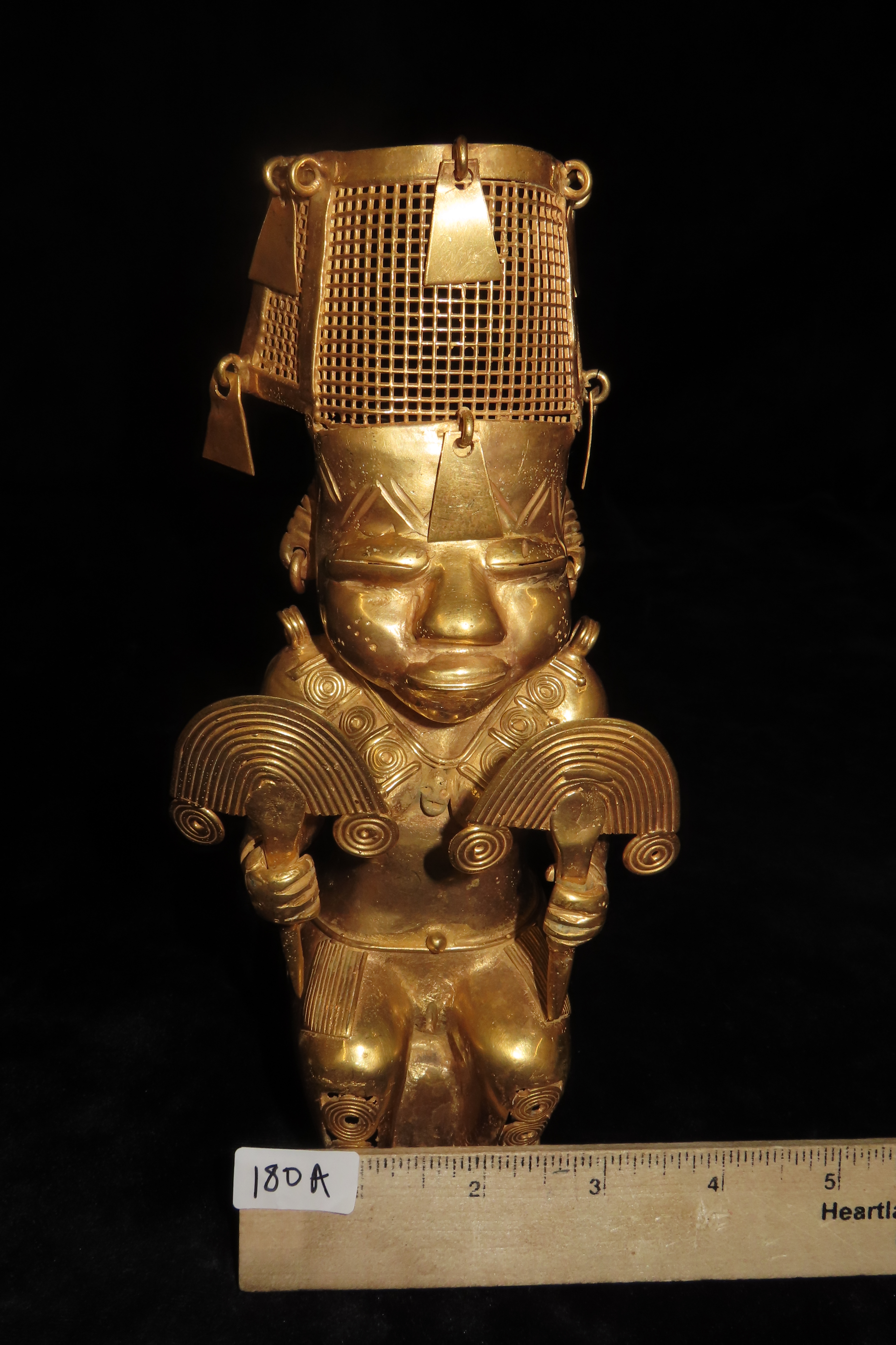 Extremely Rare 8 5/8″ x 4 1/8″ Pre Columbian Lord Tairona Tumbaga Figurine, Costa Rica, Exact Gold Content Unknown